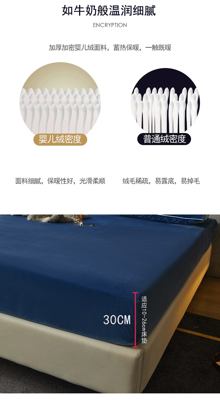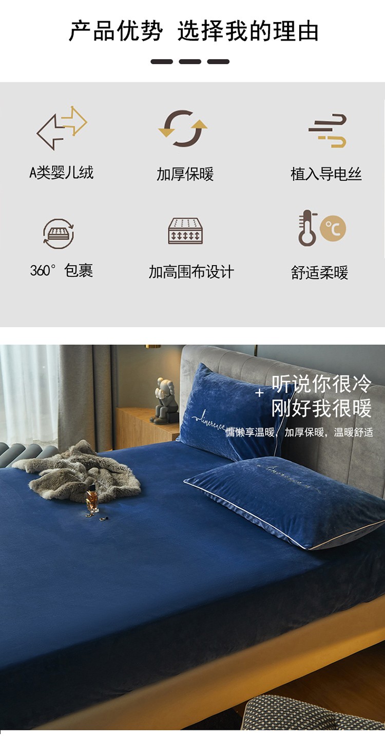 商品名称:瑞驰家纺 2022新款A类婴儿绒保暖单床笠 宾利蓝