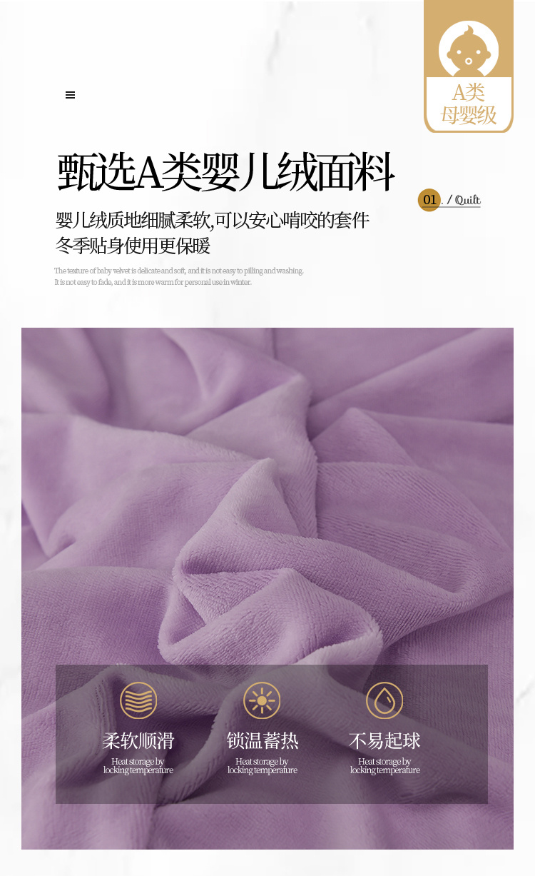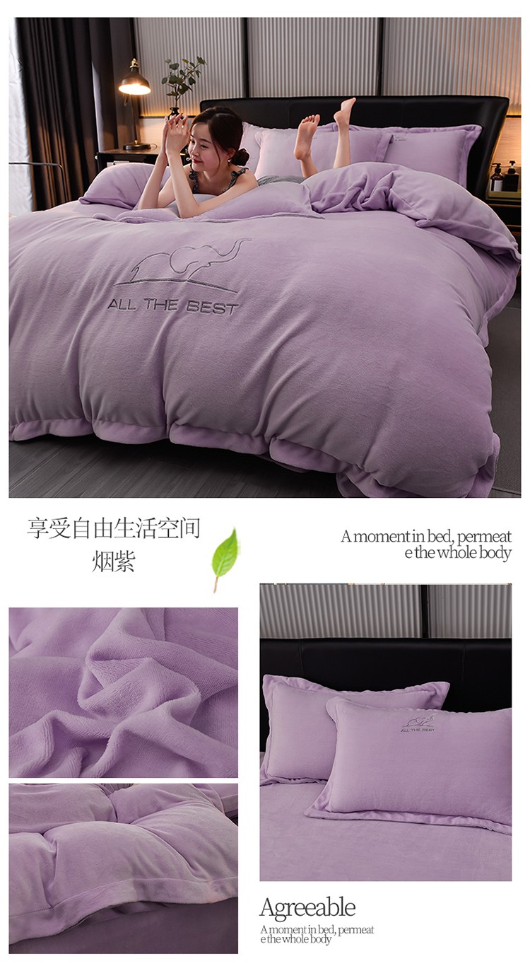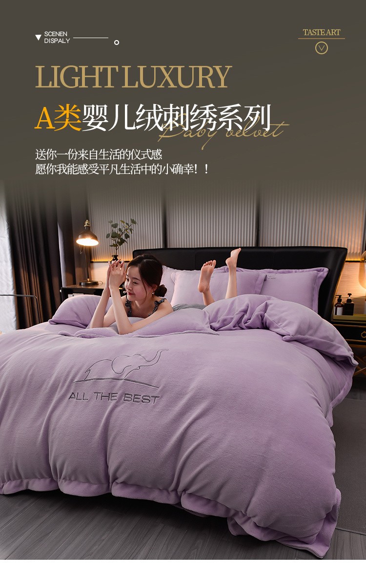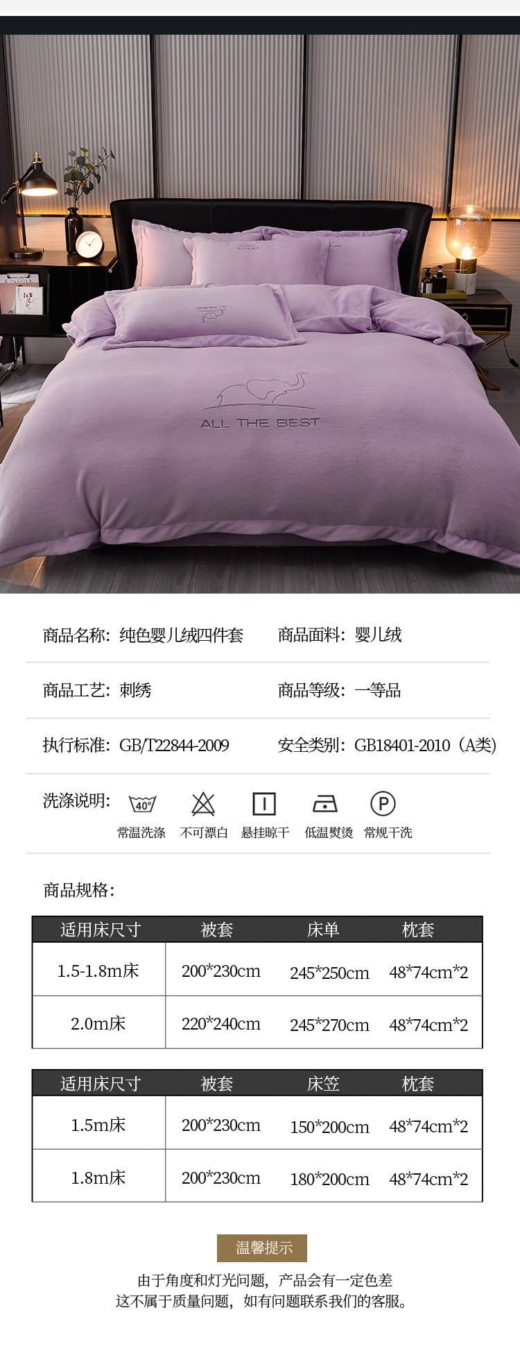 米奈家居 2024新款A类婴儿绒四件套有质检报告小象 烟紫