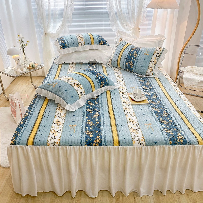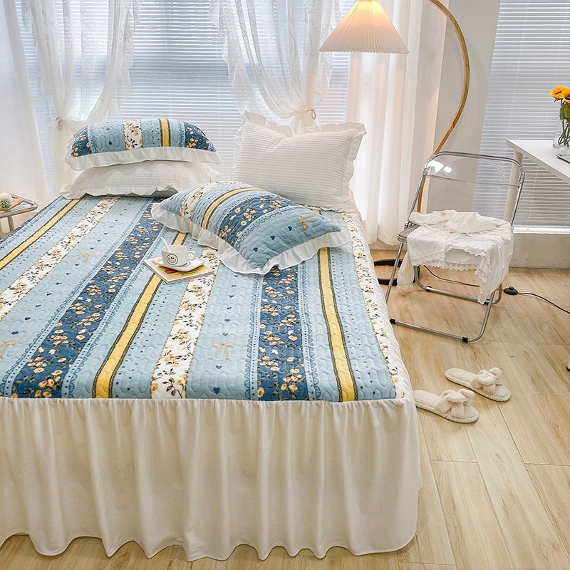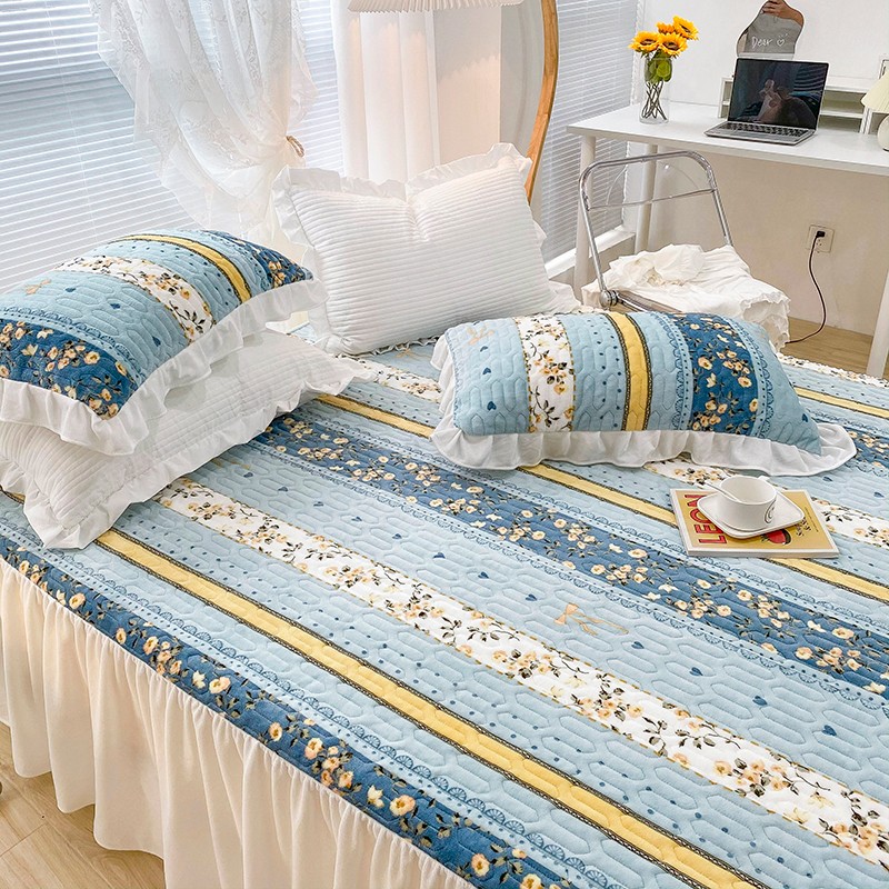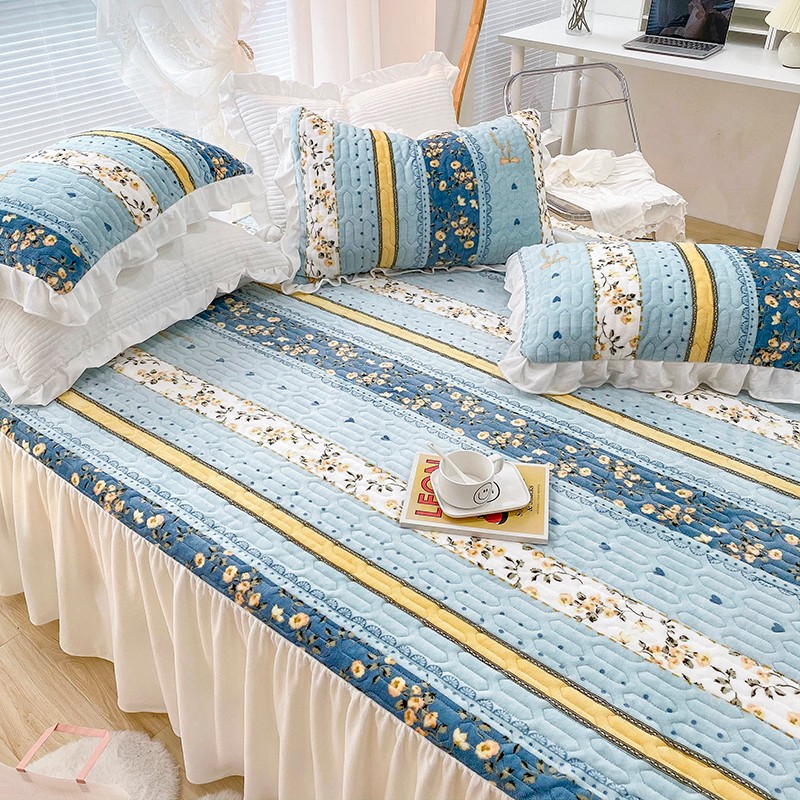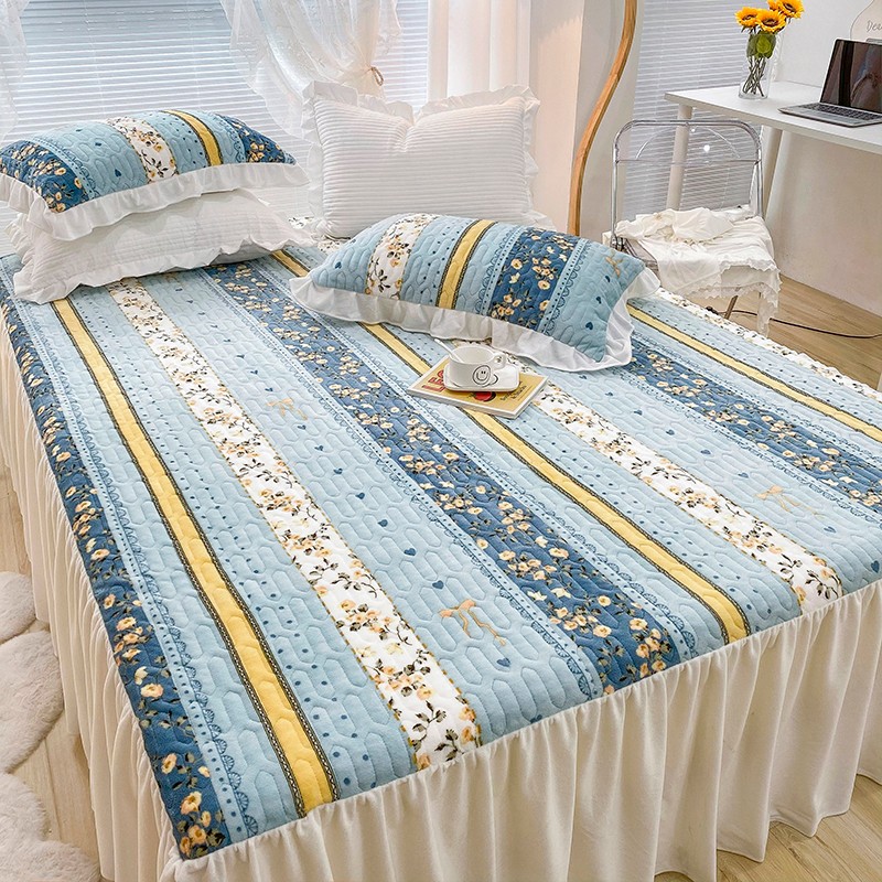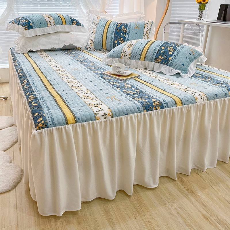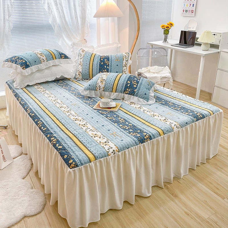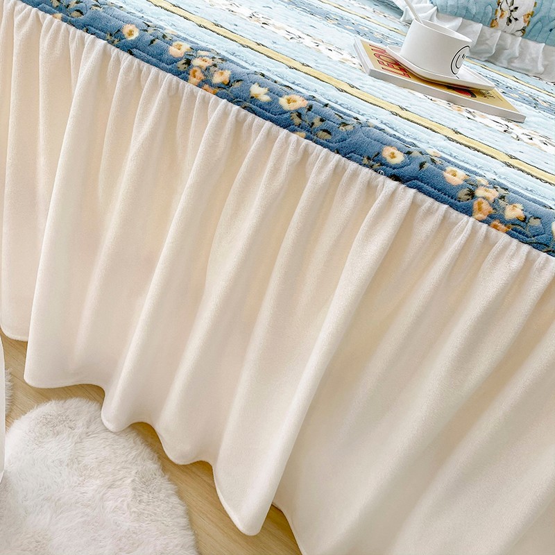 米莱家纺 2021新款牛奶绒夹棉床裙三件套 花穗