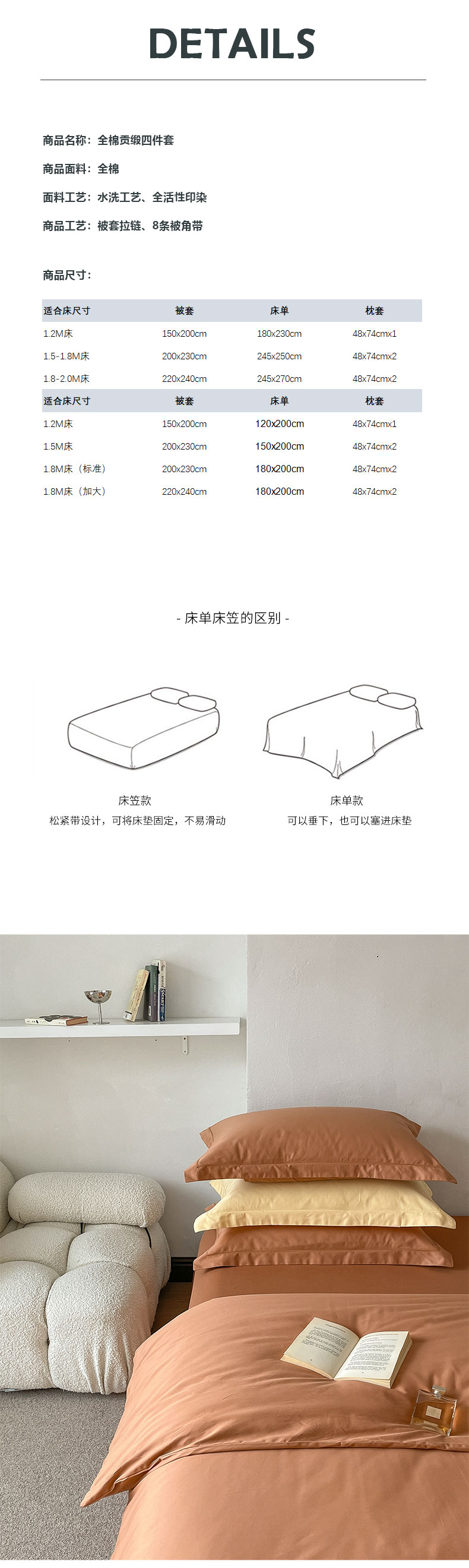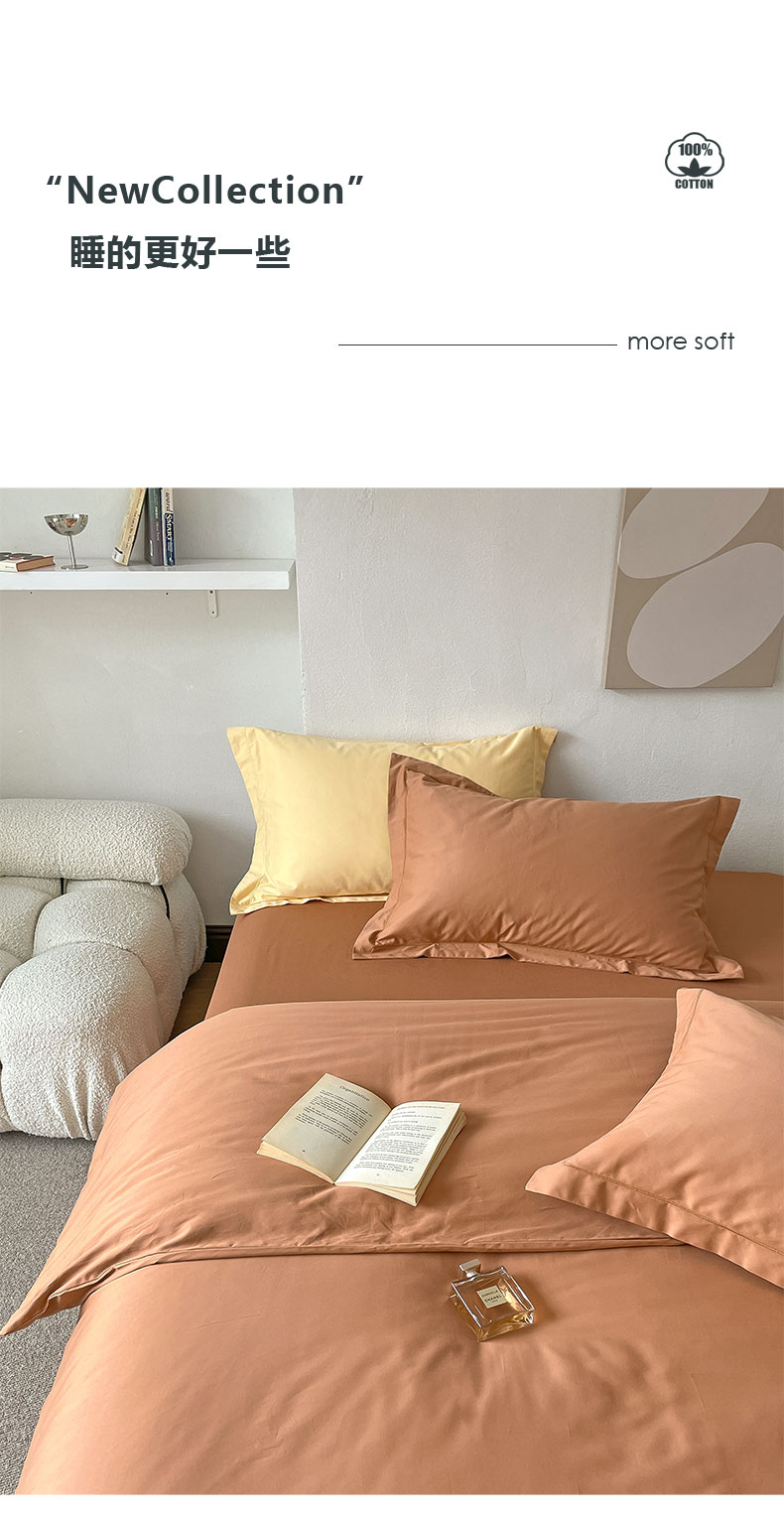 当前位置: 91家纺网 > 商品网购 > 床品套件 > 四件套 > 长绒棉四件套 > 蕊姿超柔水洗春夏新款50s双股新疆长绒棉纯色四件套焦糖橙