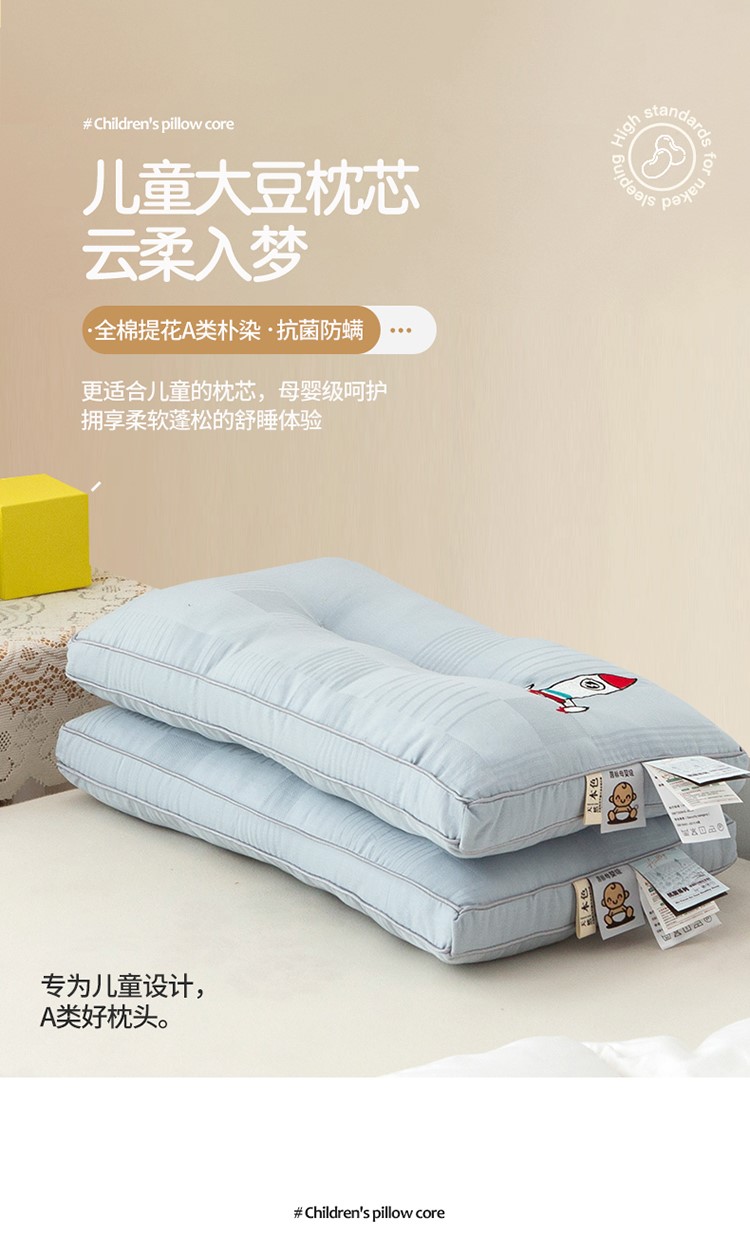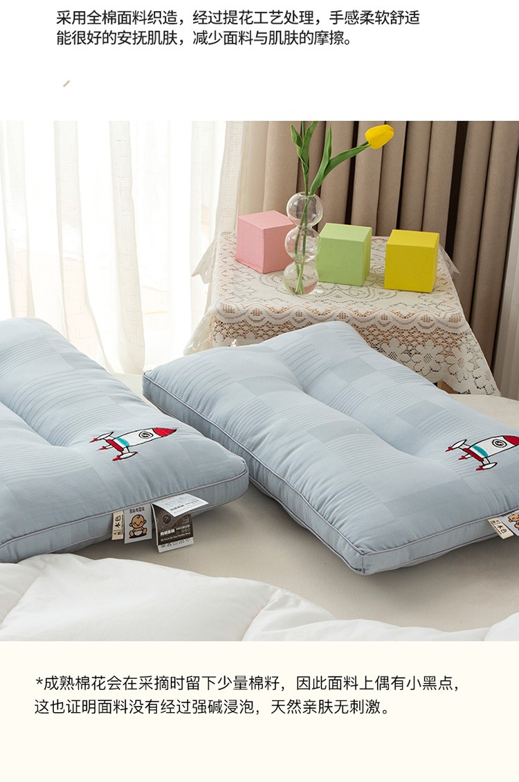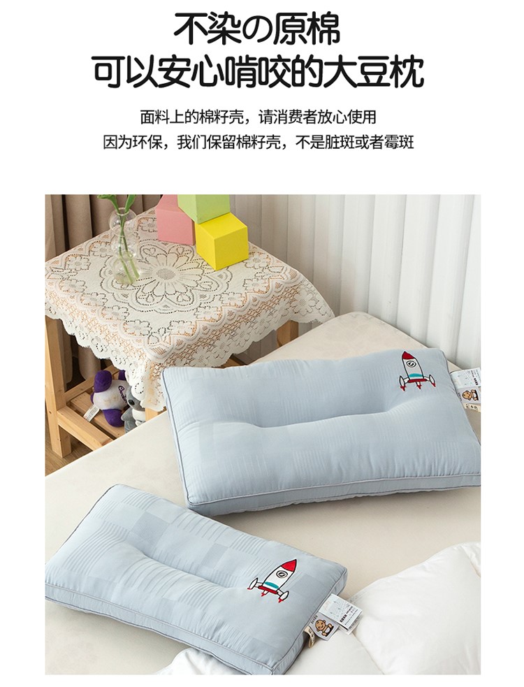 头等舱 2022原棉朴染A类儿童大豆抗菌防螨枕芯火箭(蓝)