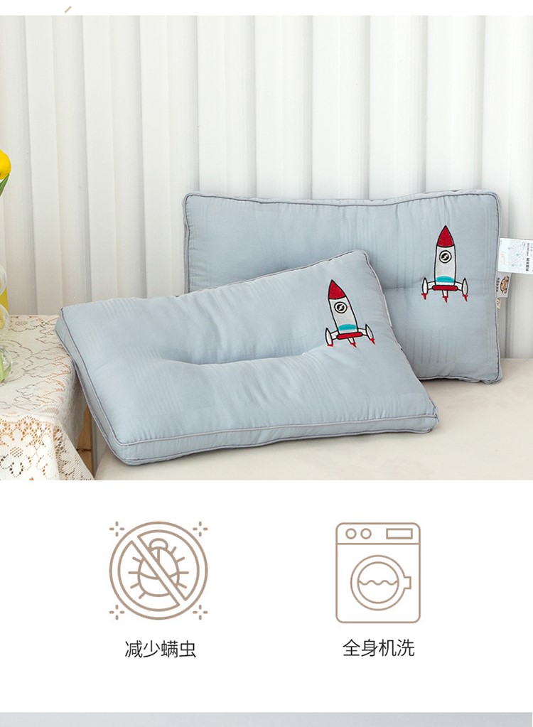 商品名称:头等舱 2022原棉朴染A类儿童大豆抗菌防螨枕芯火箭(蓝)
