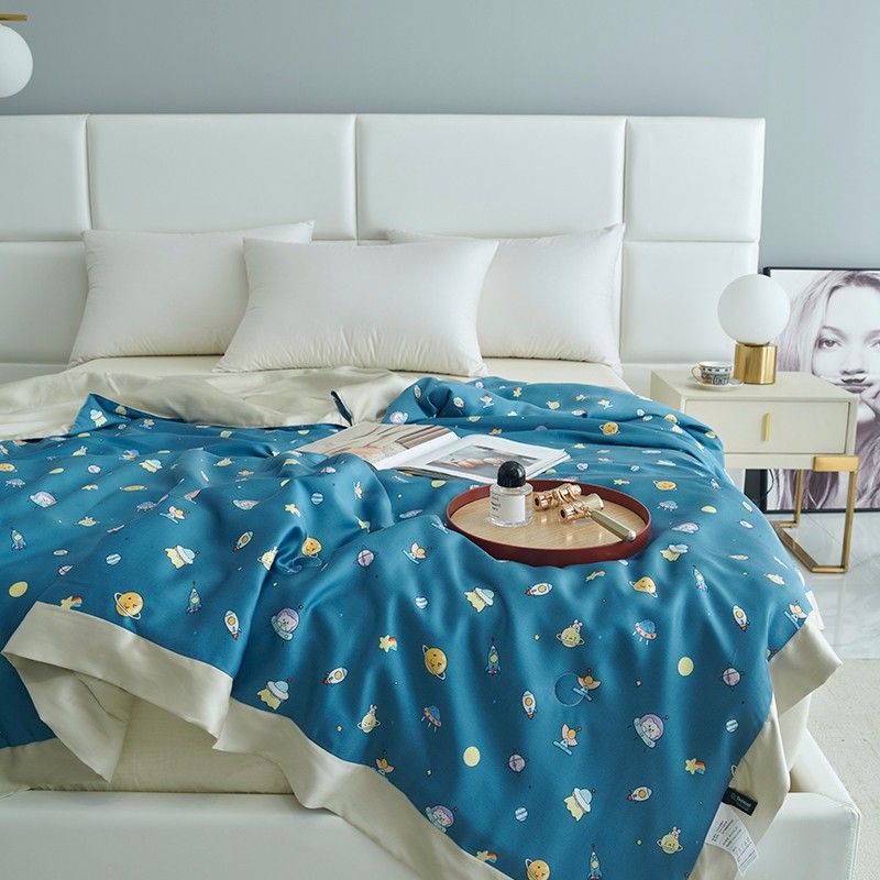 时亿 2022新款80支天丝印花单夏被夏凉被空调被直播款 太空人-蓝