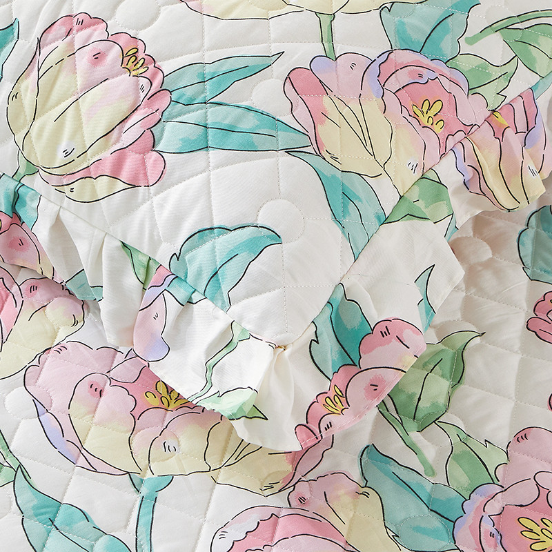 十个点 2022新款全棉夹棉印花单枕套一对 花影
