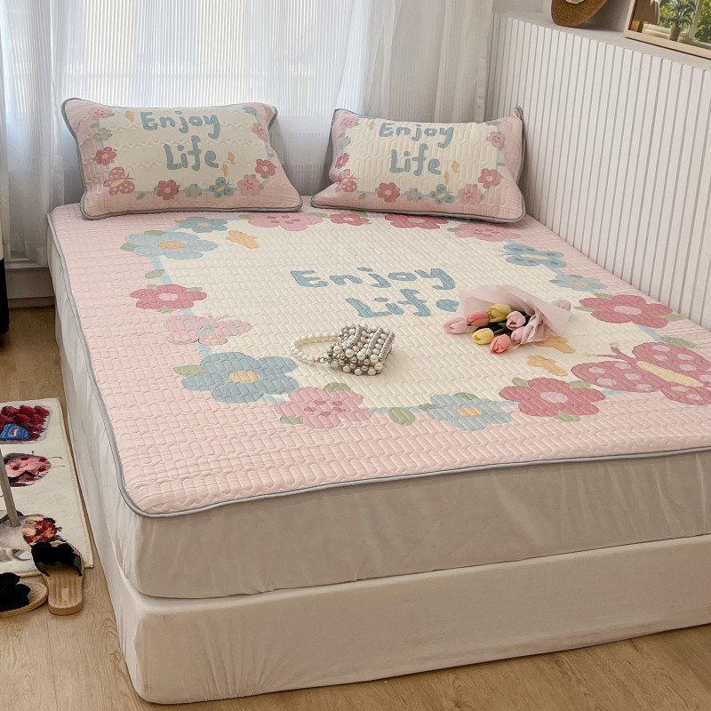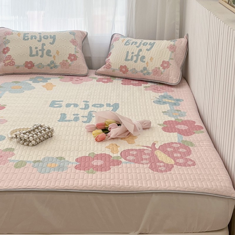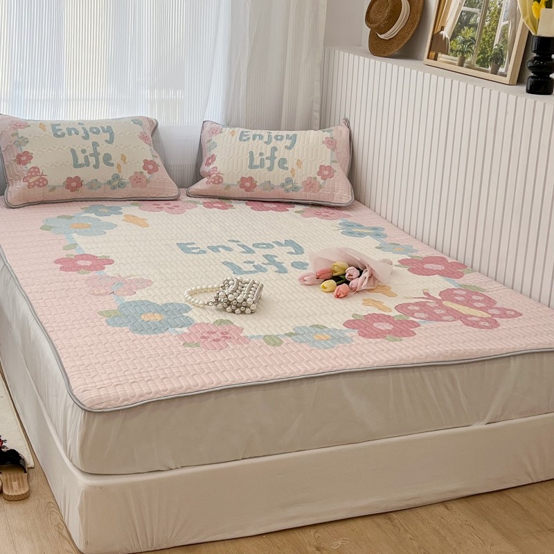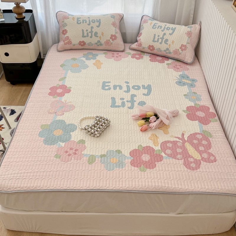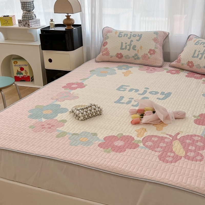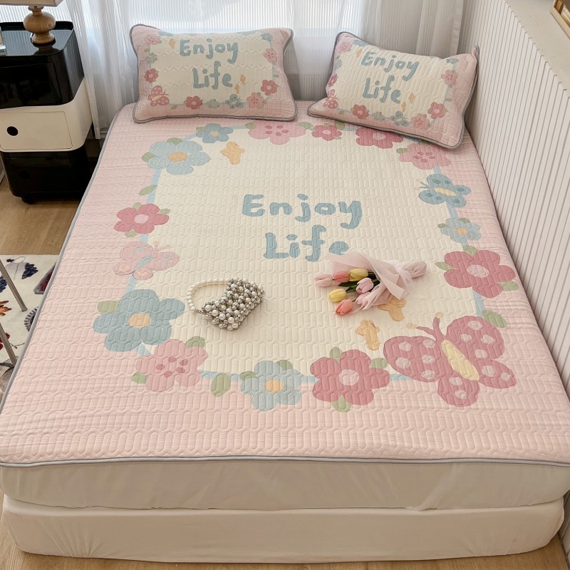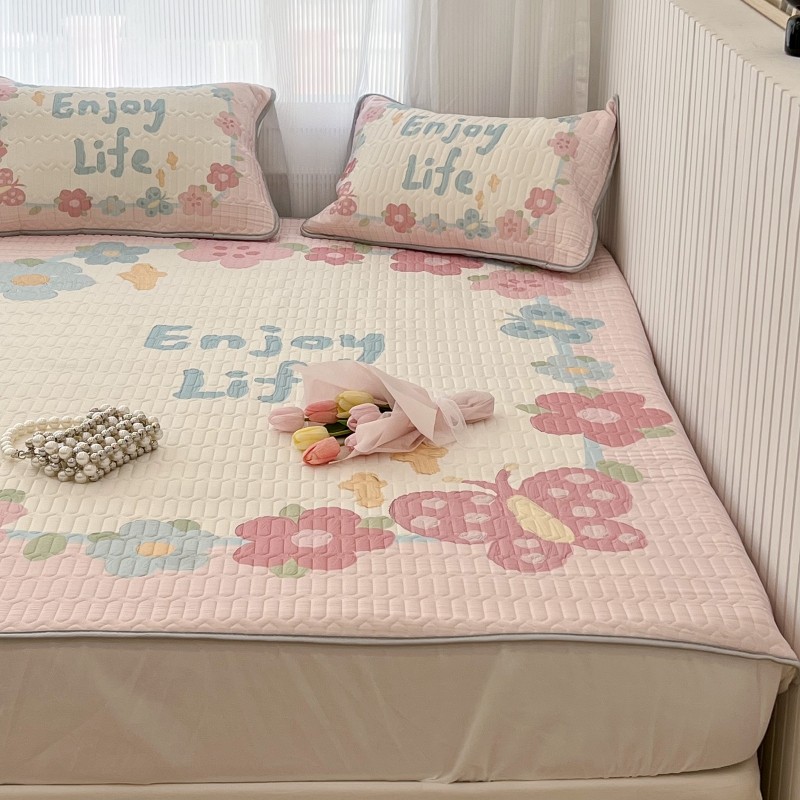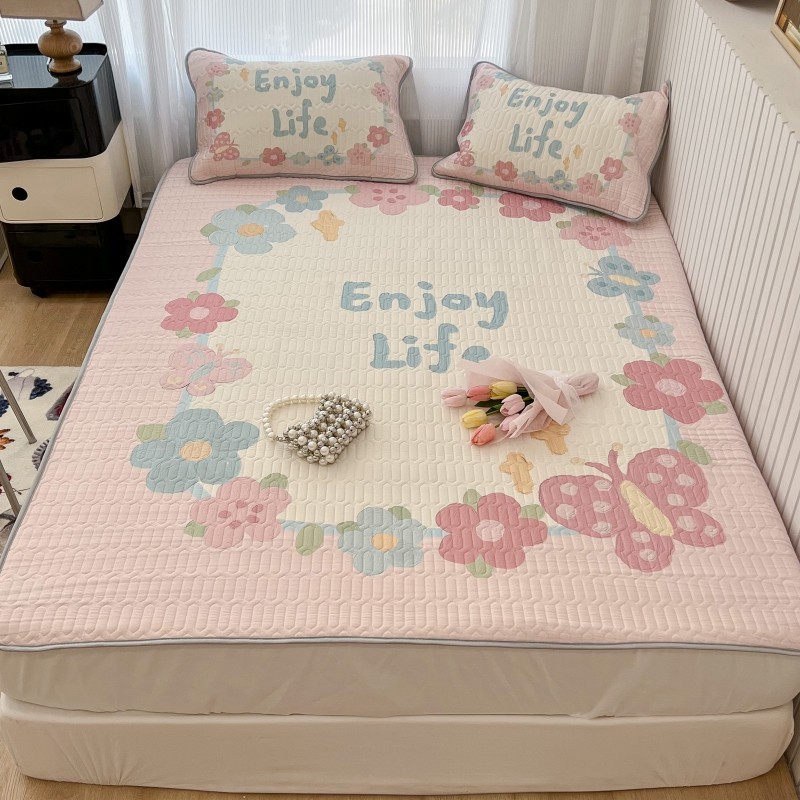 昔可 2022新款ins风小清新床笠款乳胶凉席三件套 床笠款-蝴蝶画框