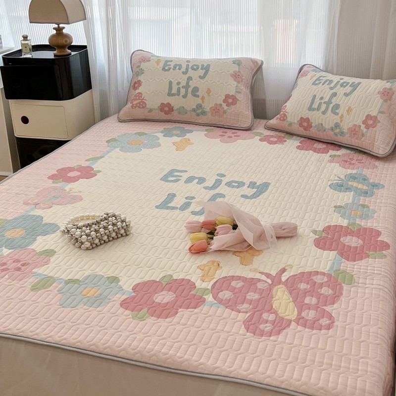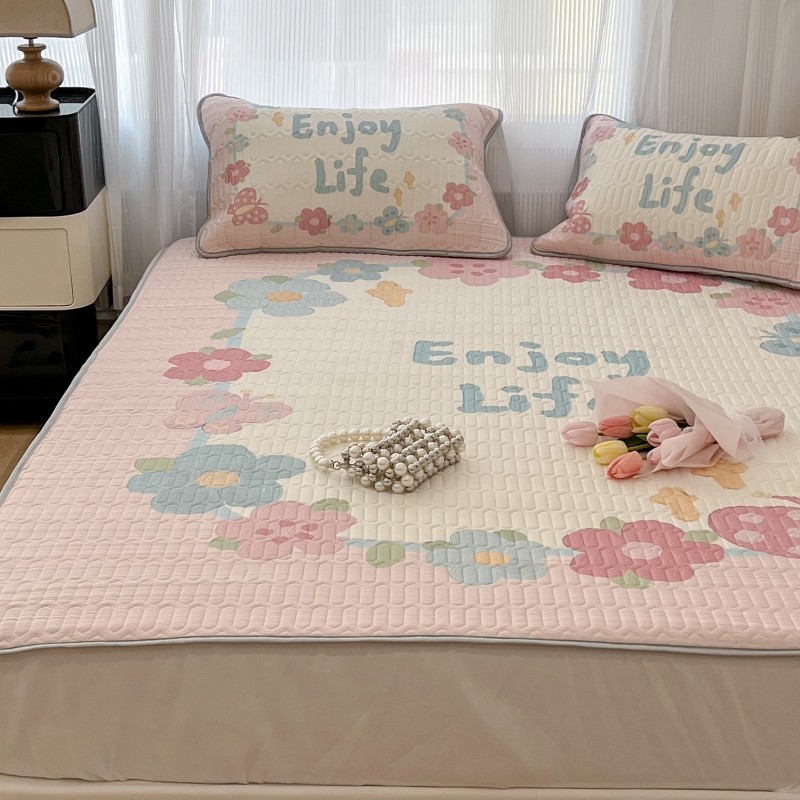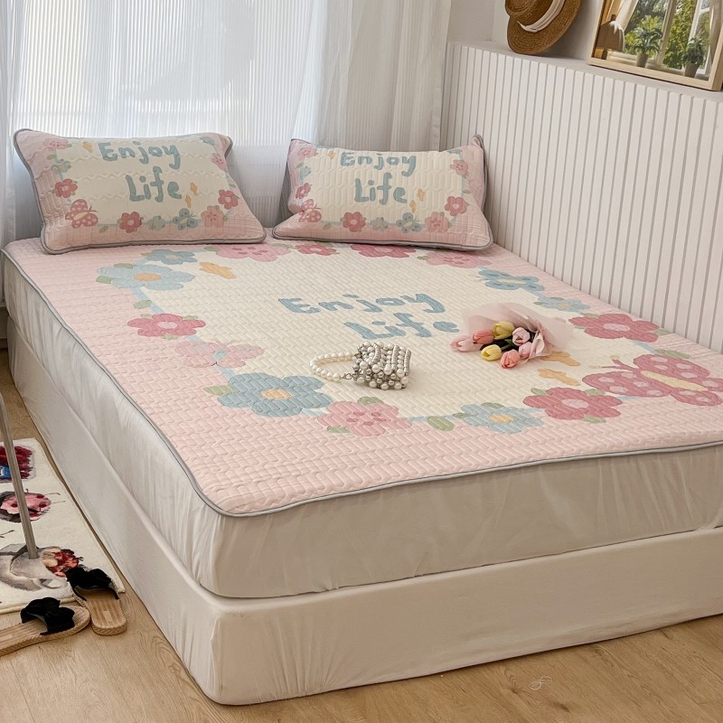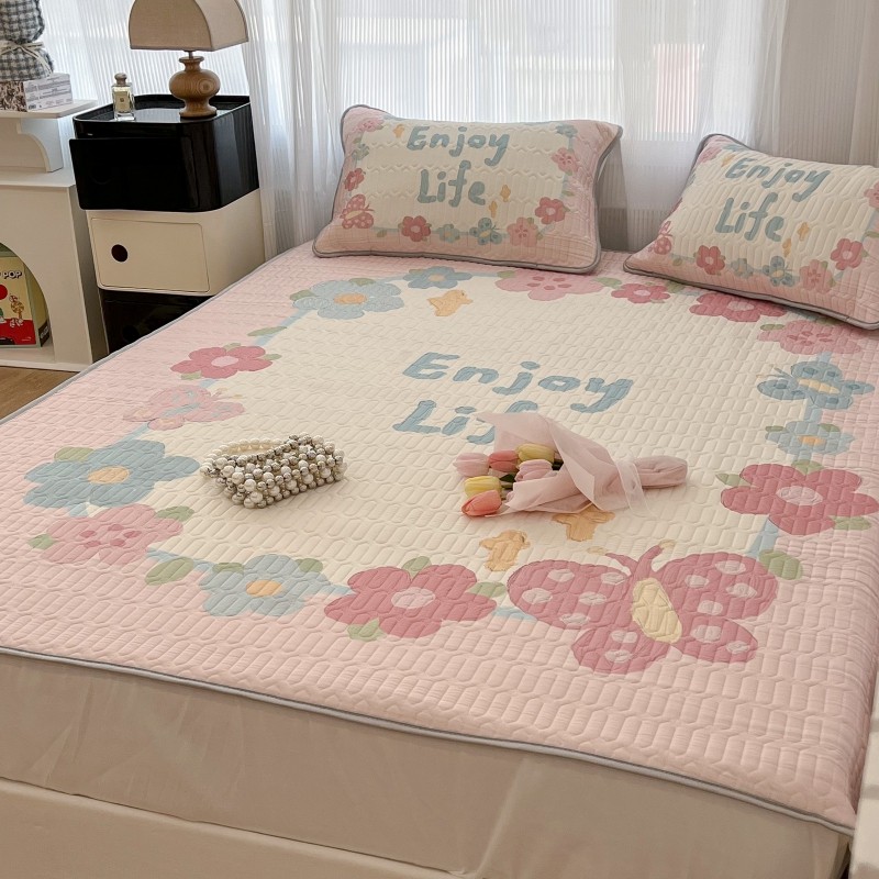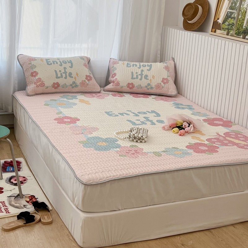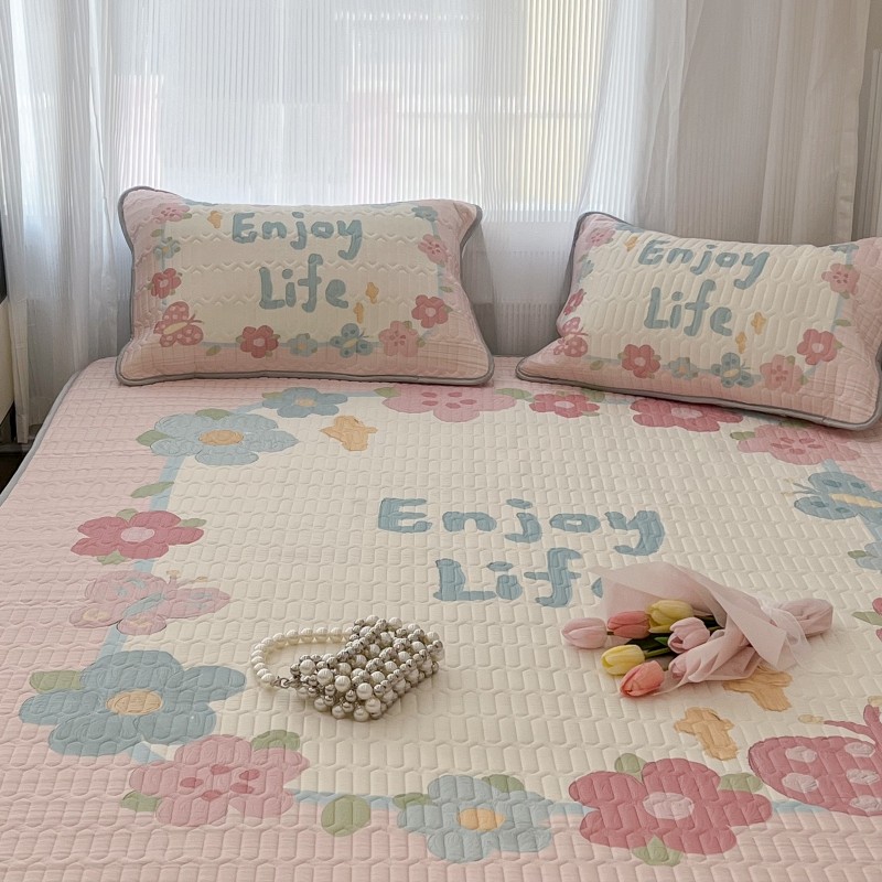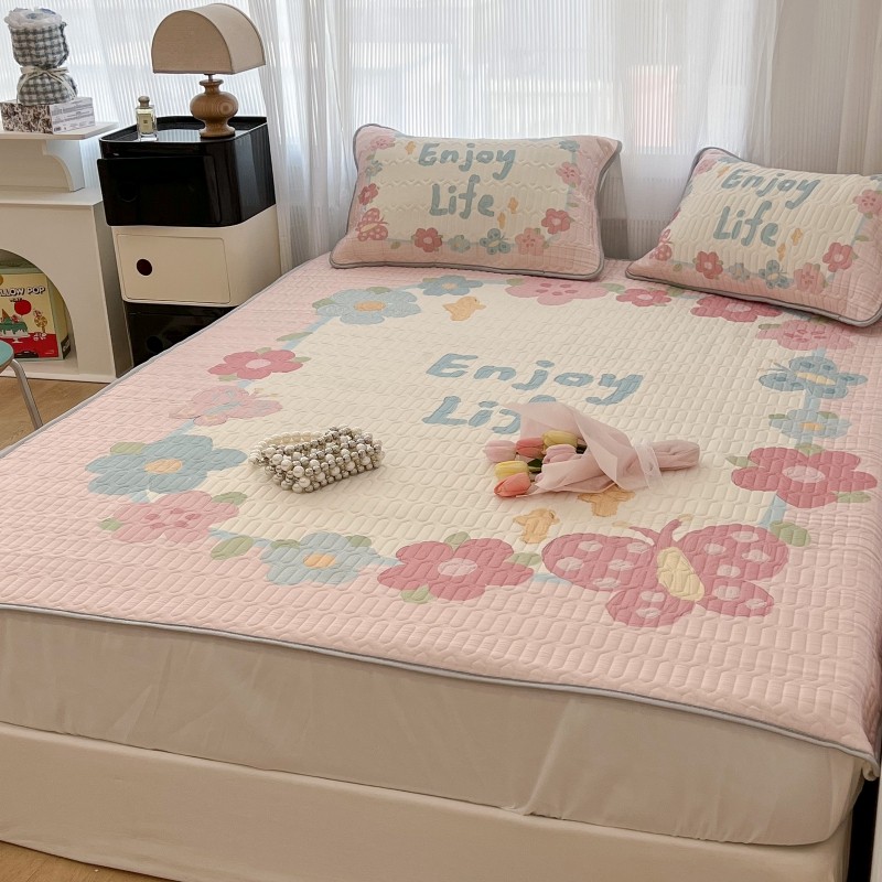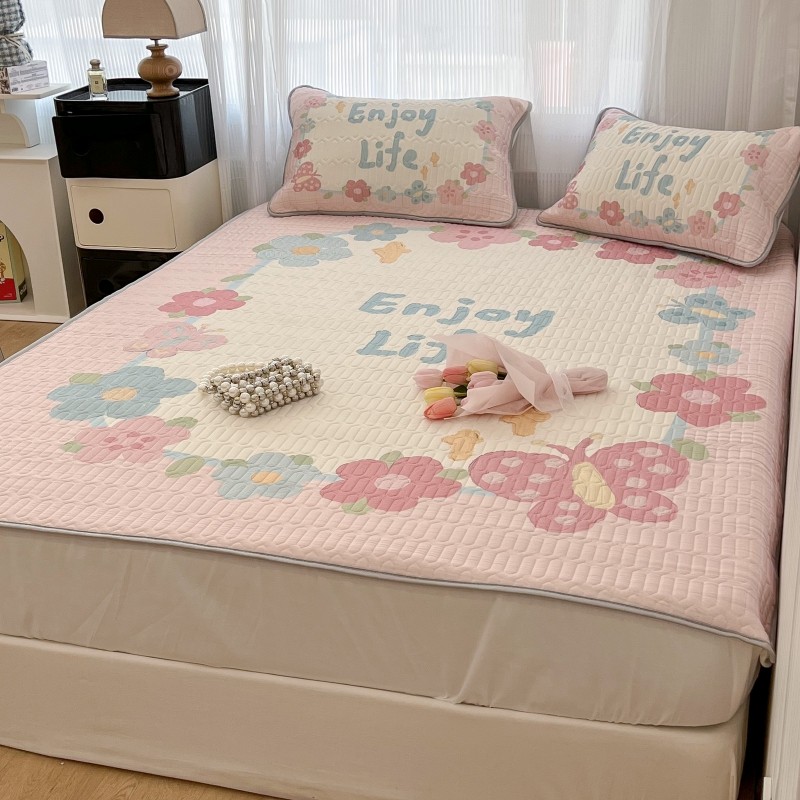 昔可 2022新款ins风小清新床笠款乳胶凉席三件套 床笠款-蝴蝶画框