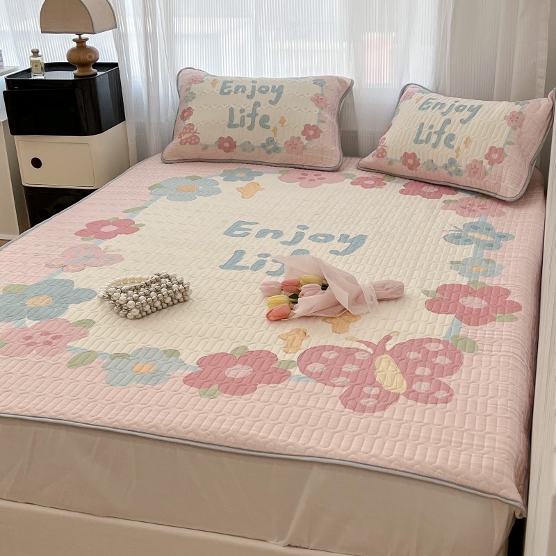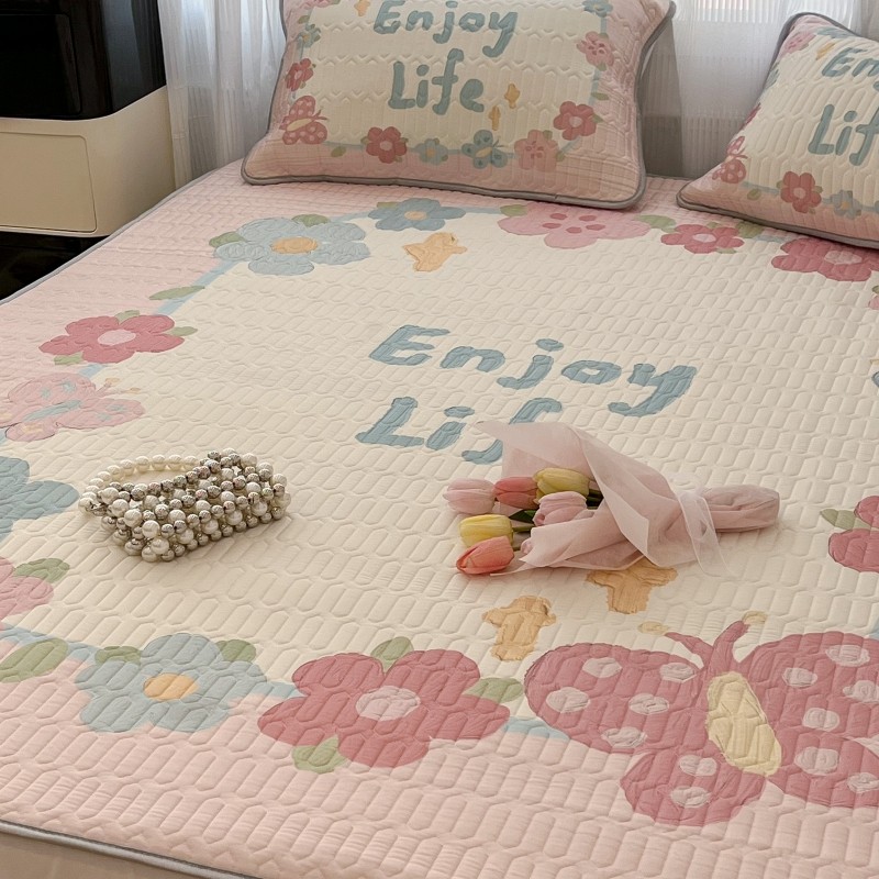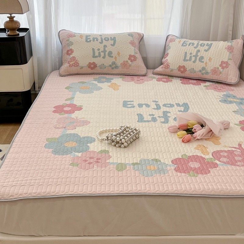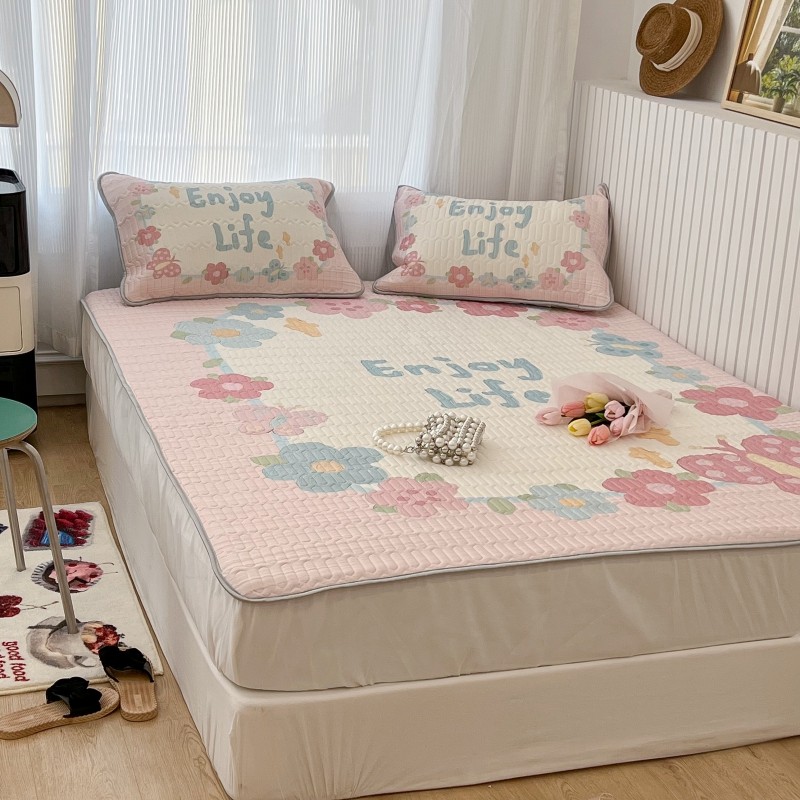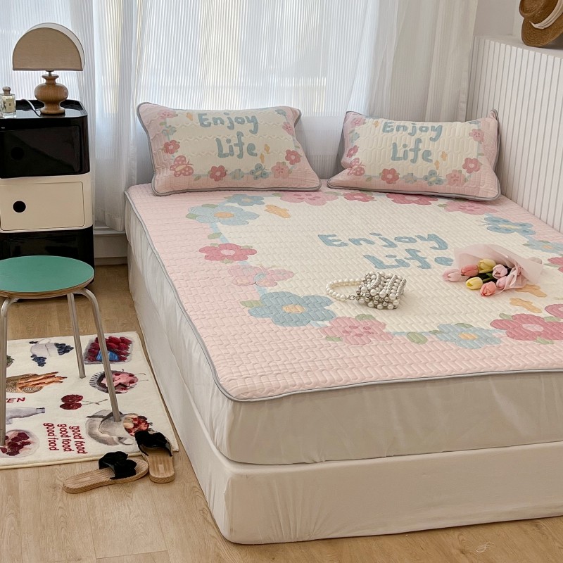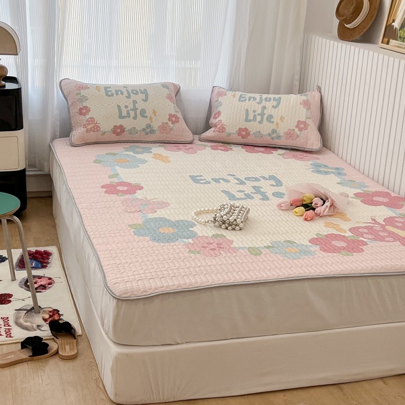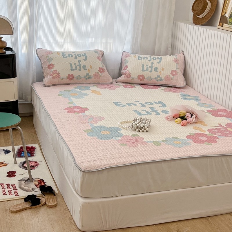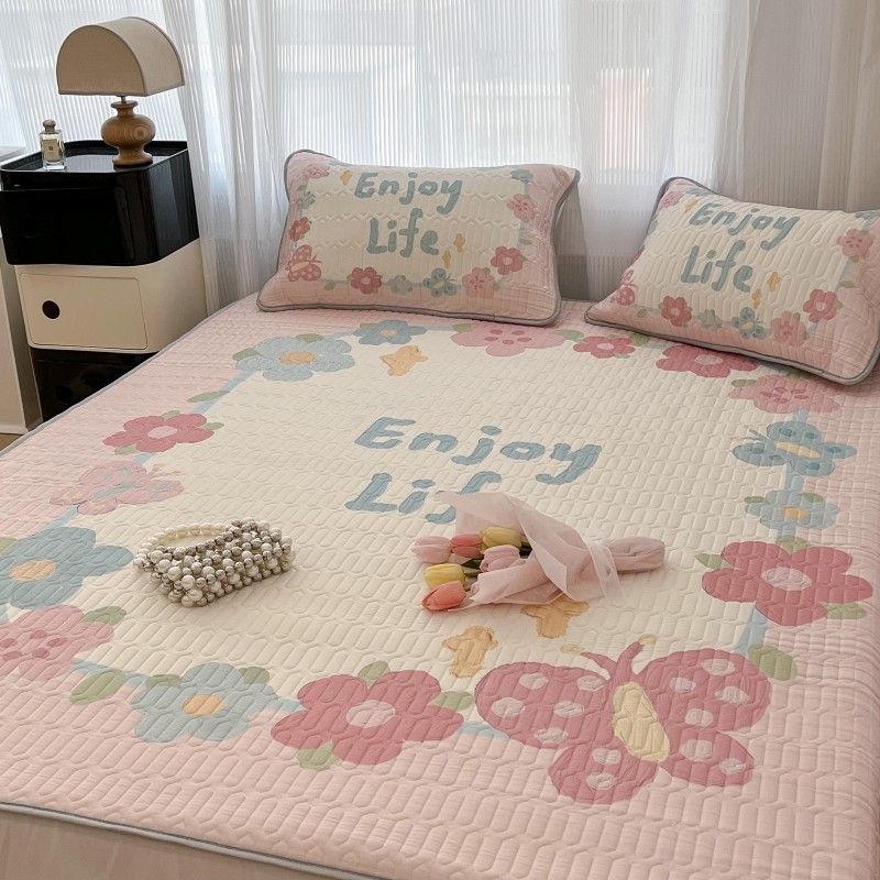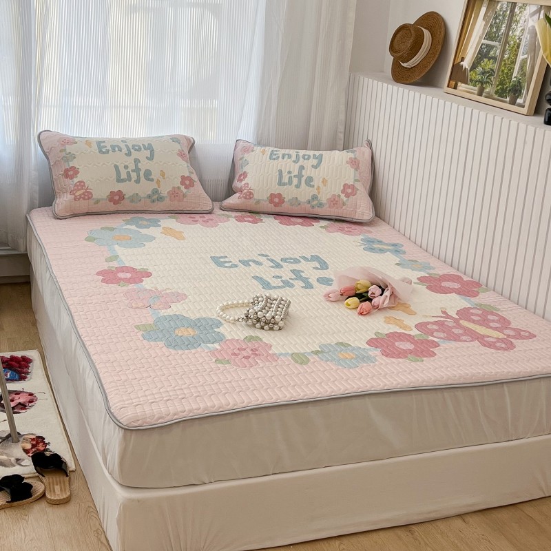 昔可 2022新款ins风小清新床笠款乳胶凉席三件套 床笠款-蝴蝶画框