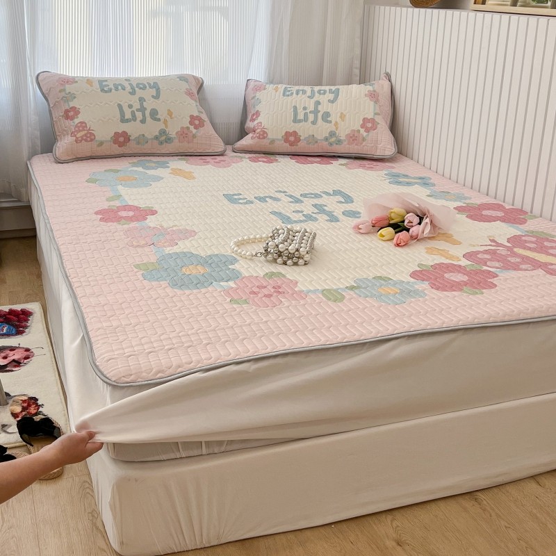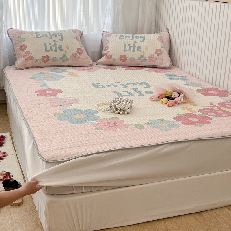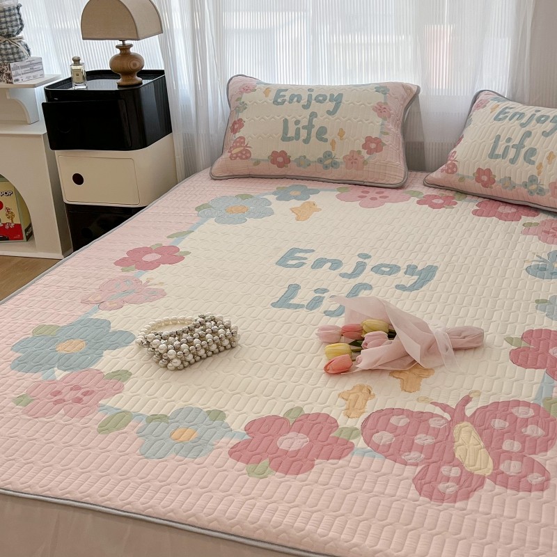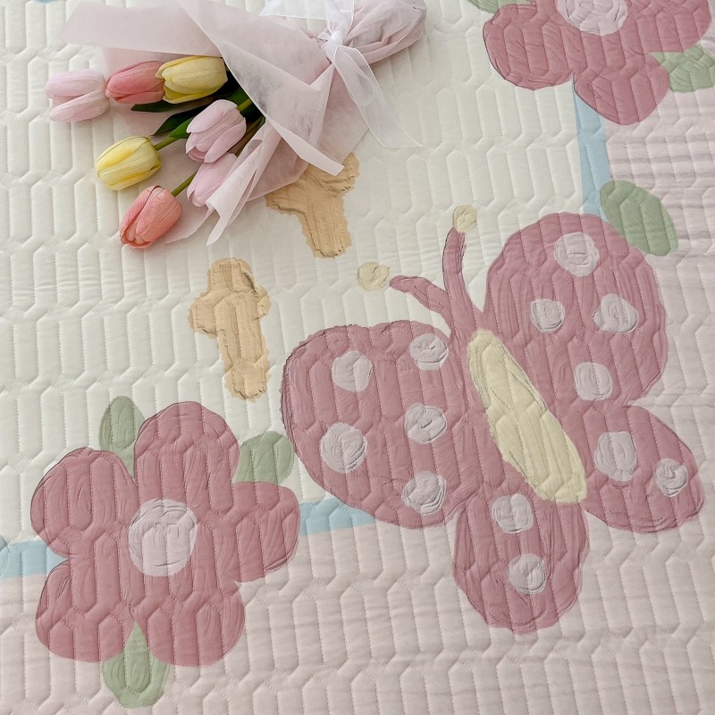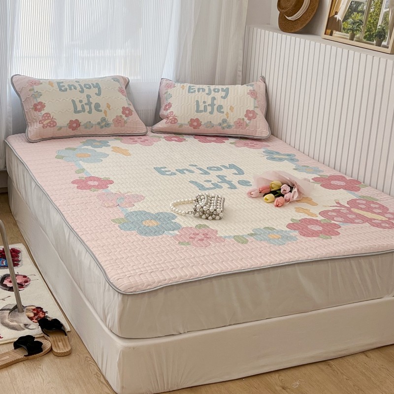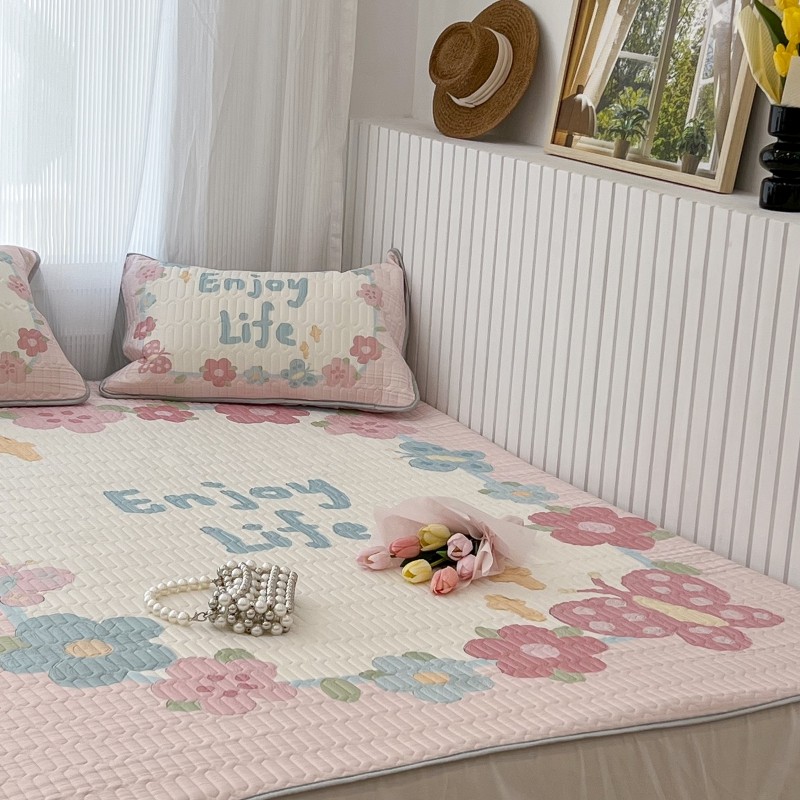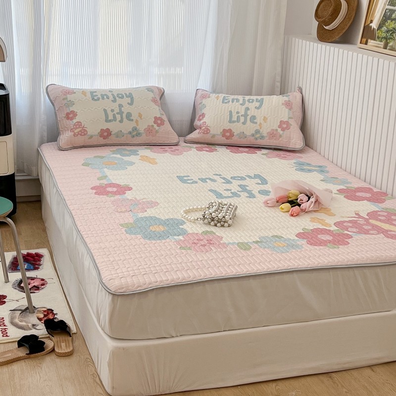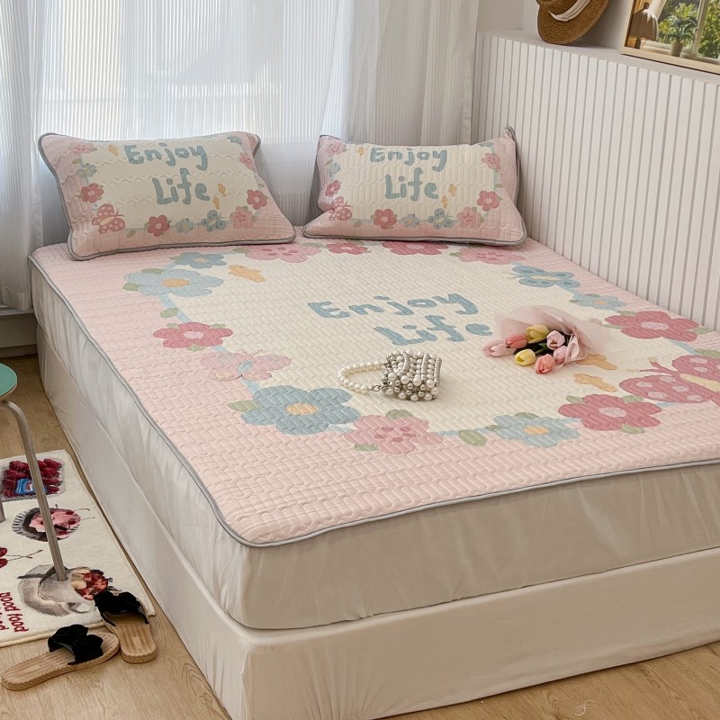 昔可 2022新款ins风小清新床笠款乳胶凉席三件套 床笠款-蝴蝶画框