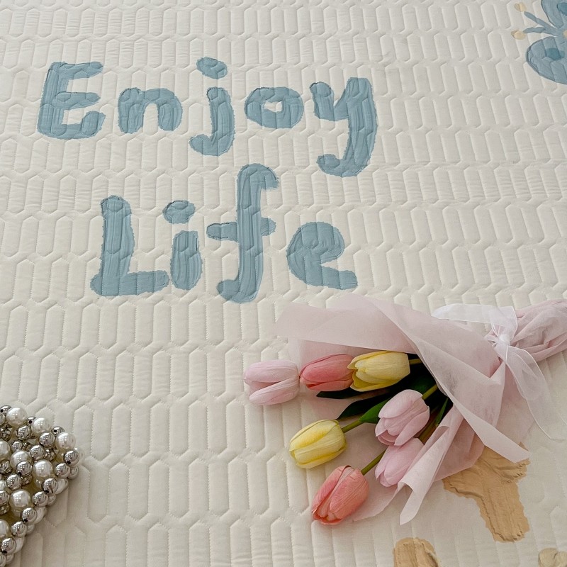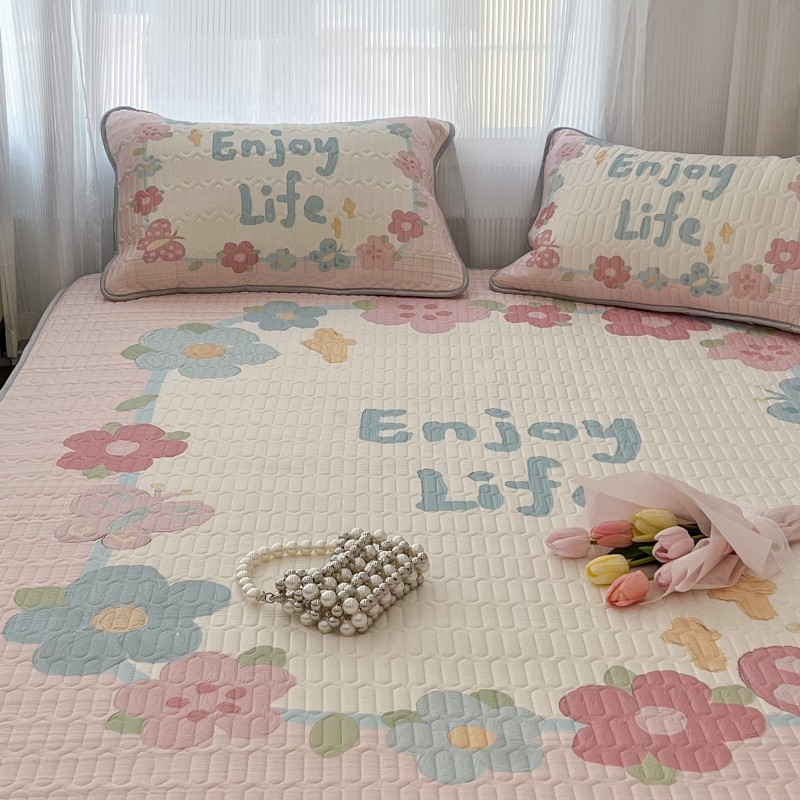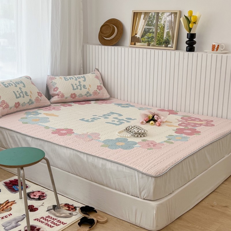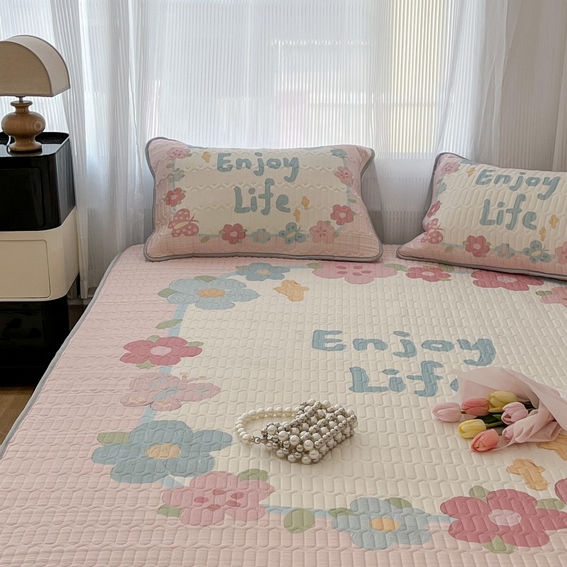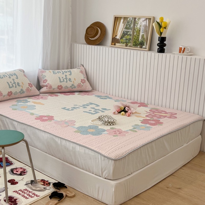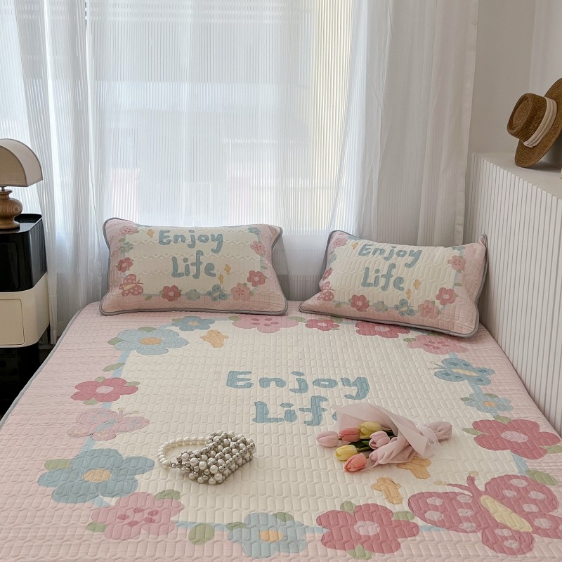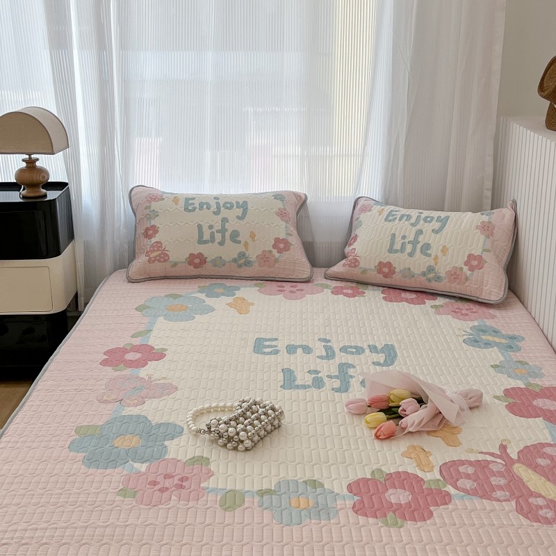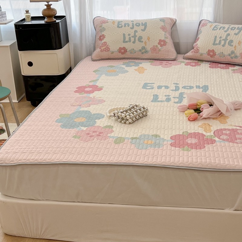 昔可 2022新款ins风小清新床笠款乳胶凉席三件套 床笠款-蝴蝶画框