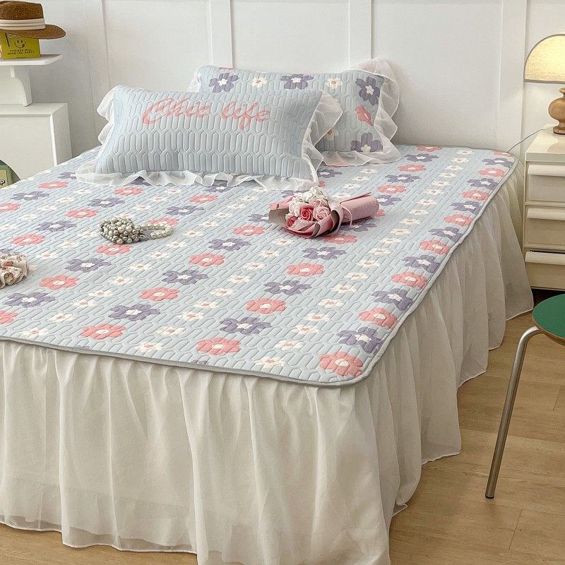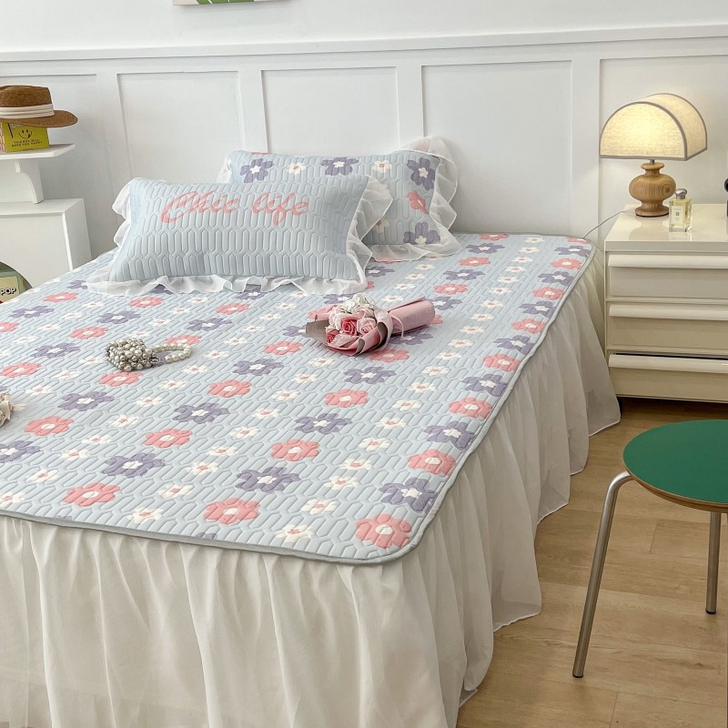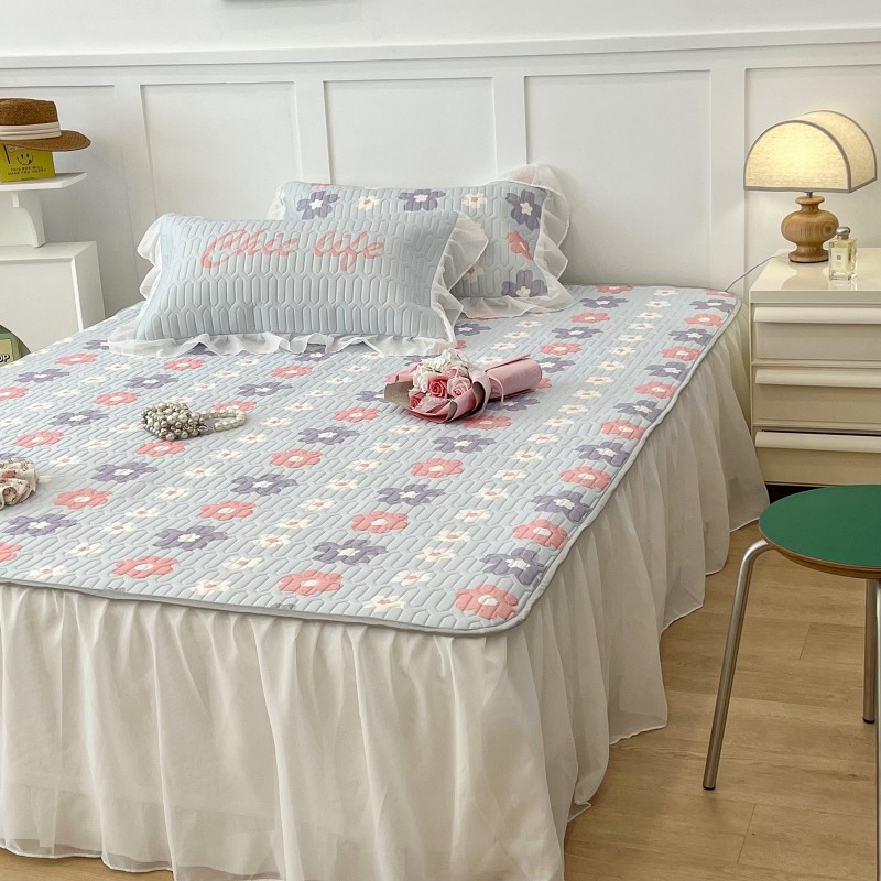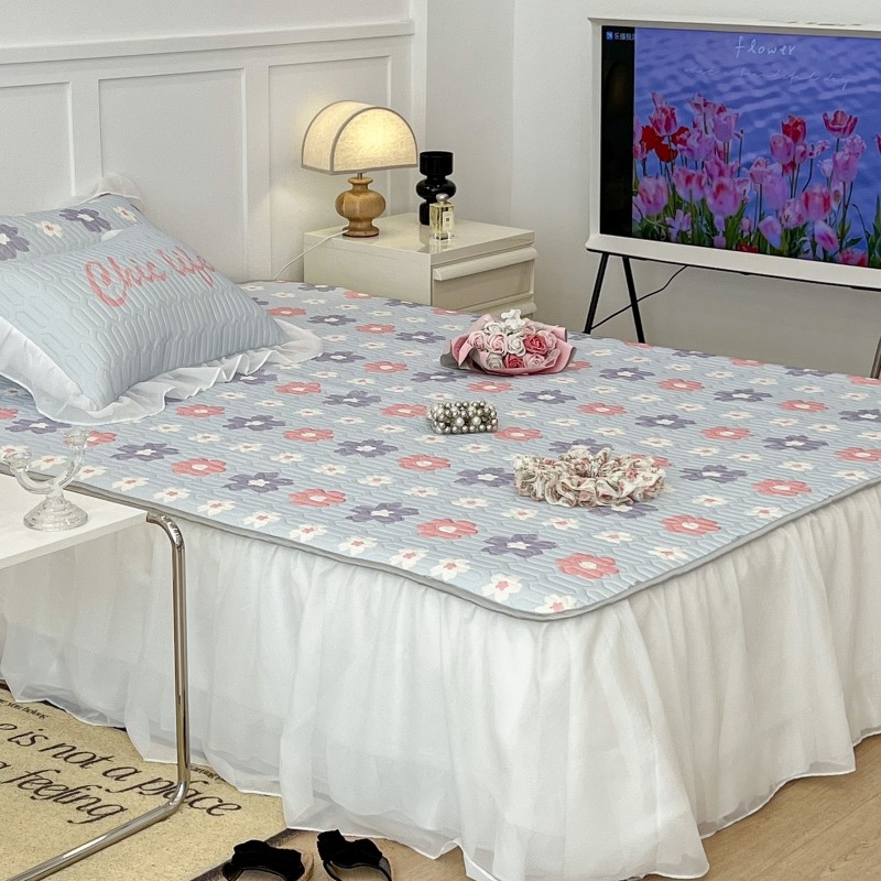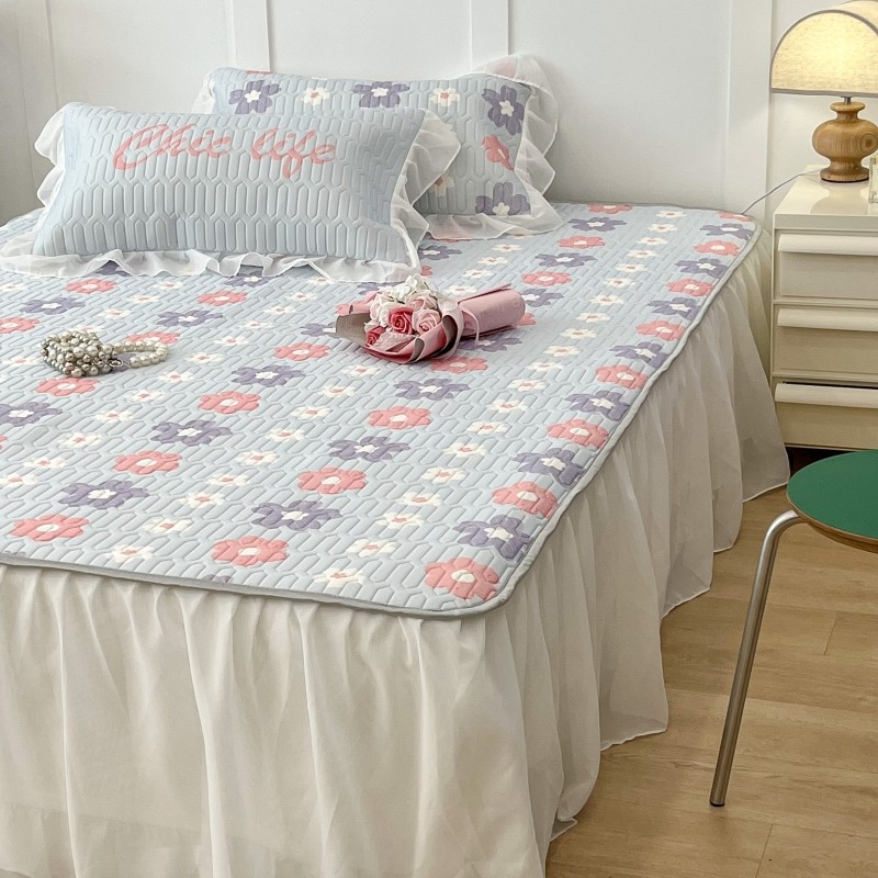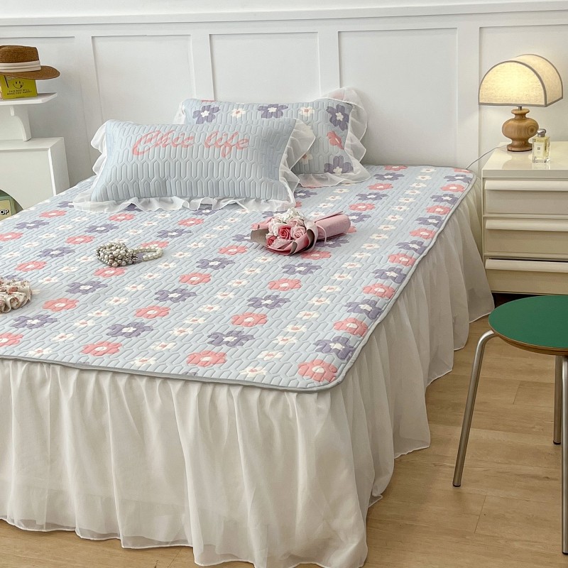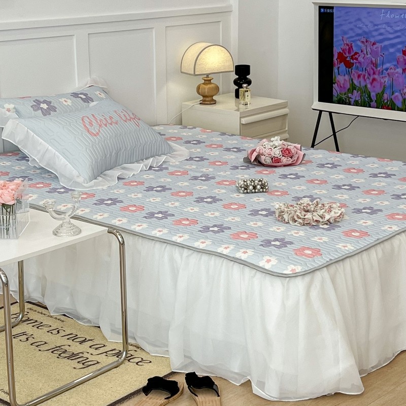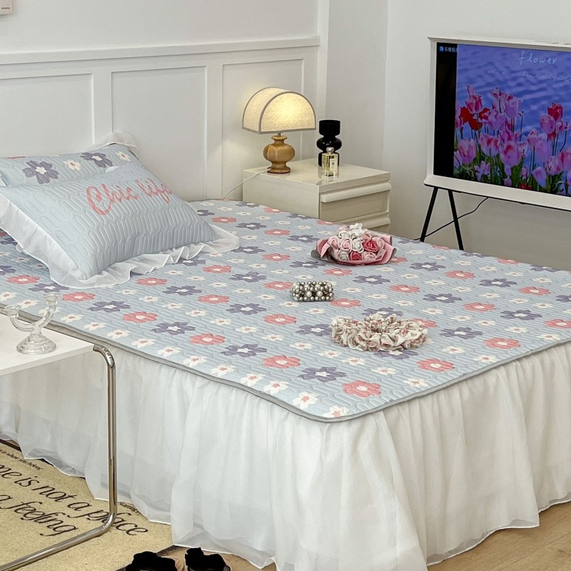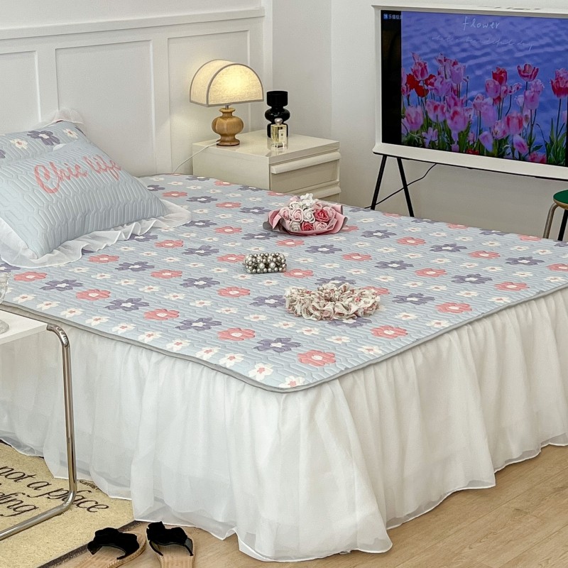 昔可 2022新款ins风小清新床裙款乳胶凉席三件套 床裙款-浪漫仲夏