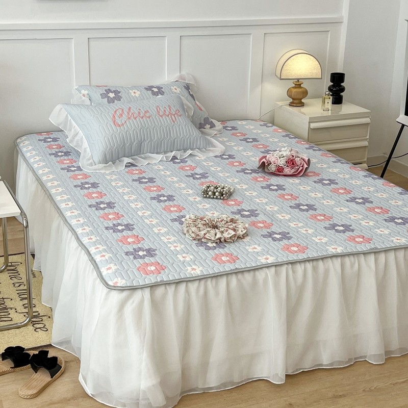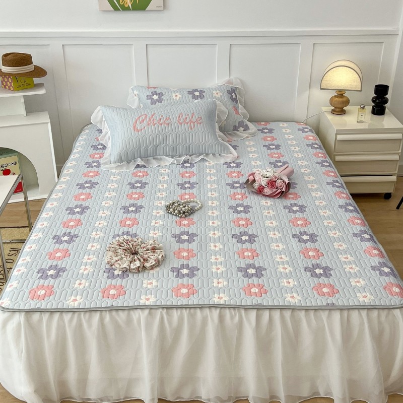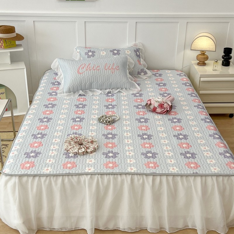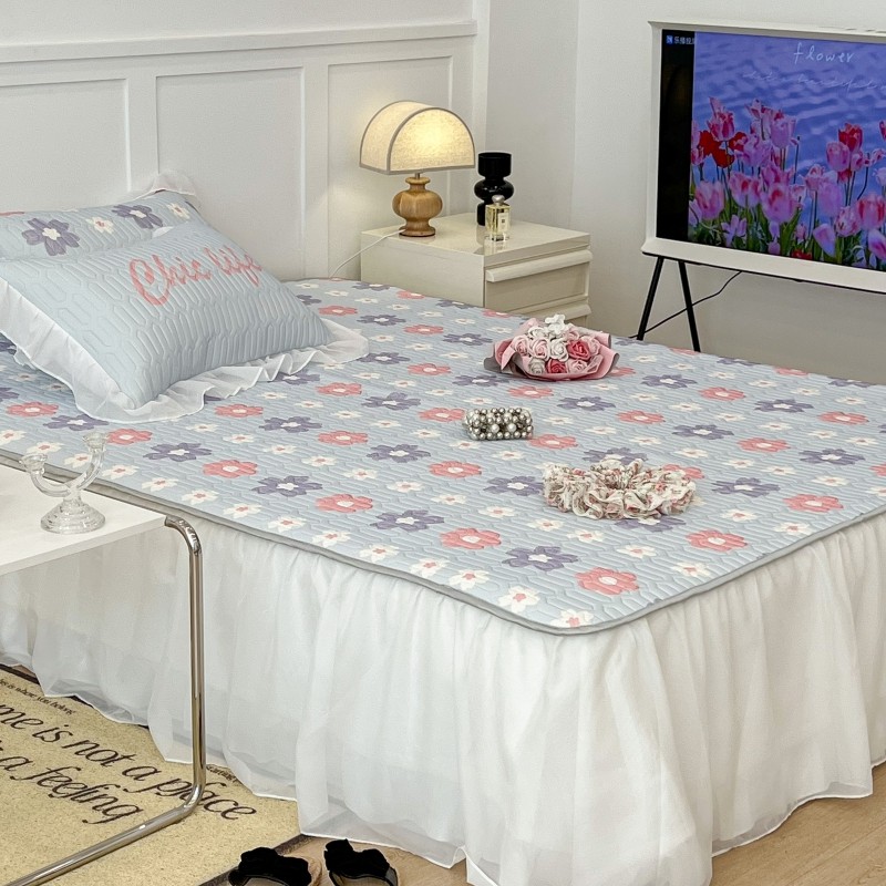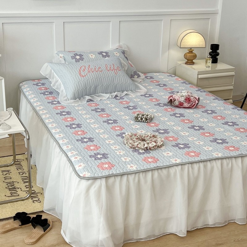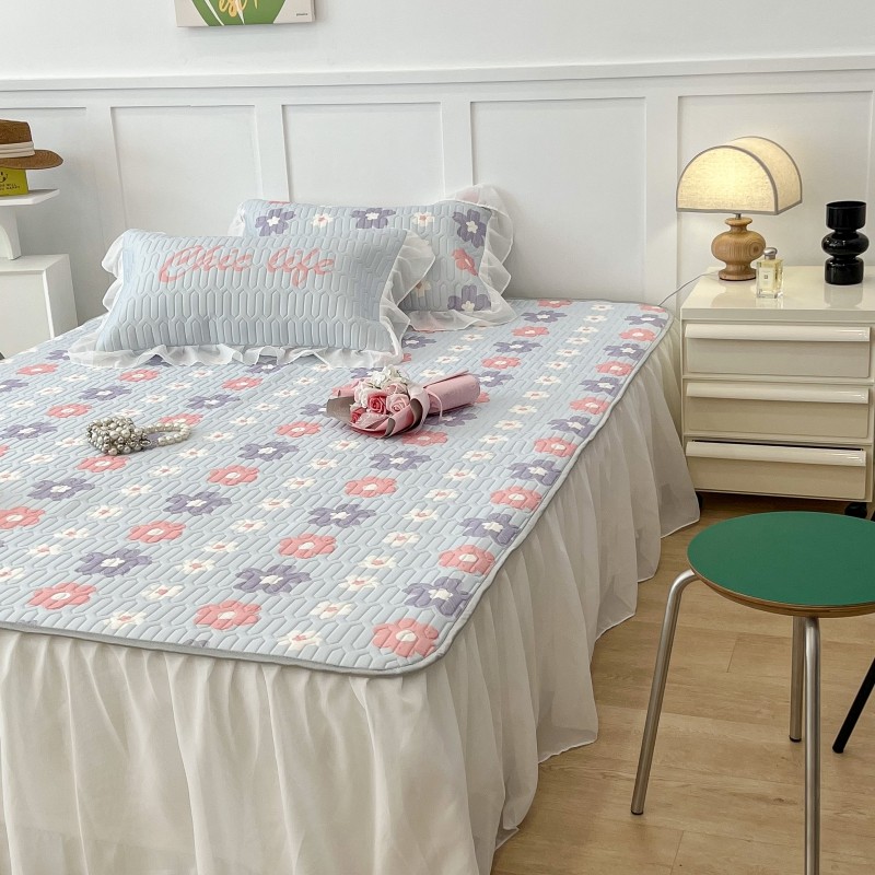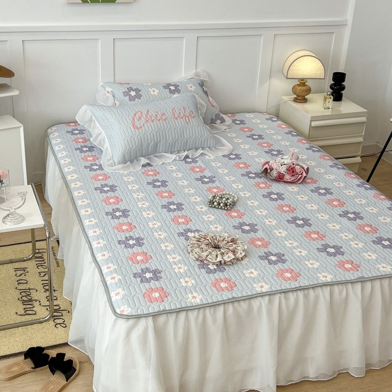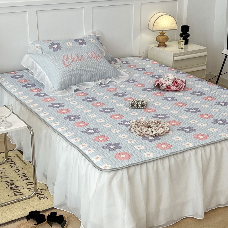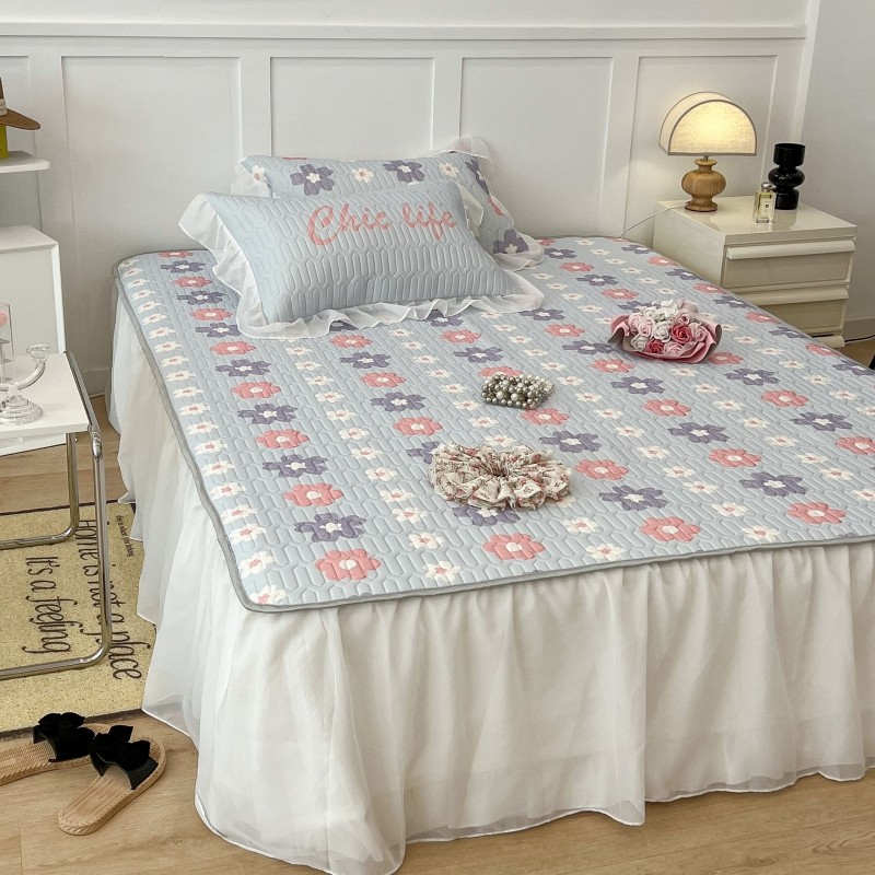 昔可 2022新款ins风小清新床裙款乳胶凉席三件套 床裙款-浪漫仲夏