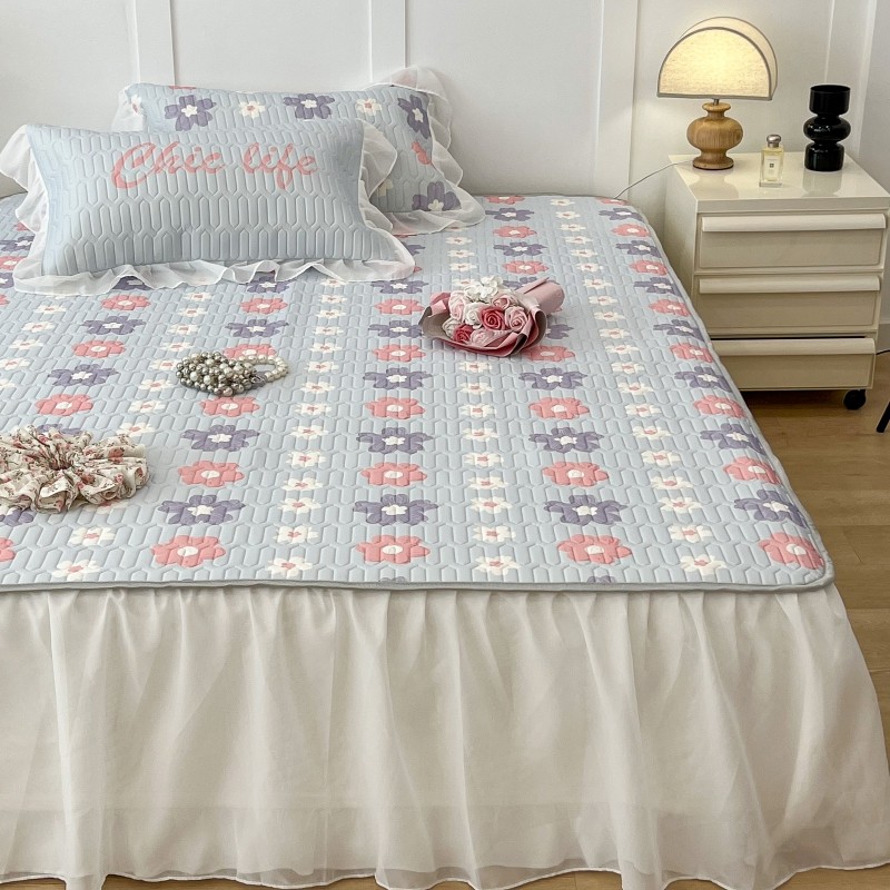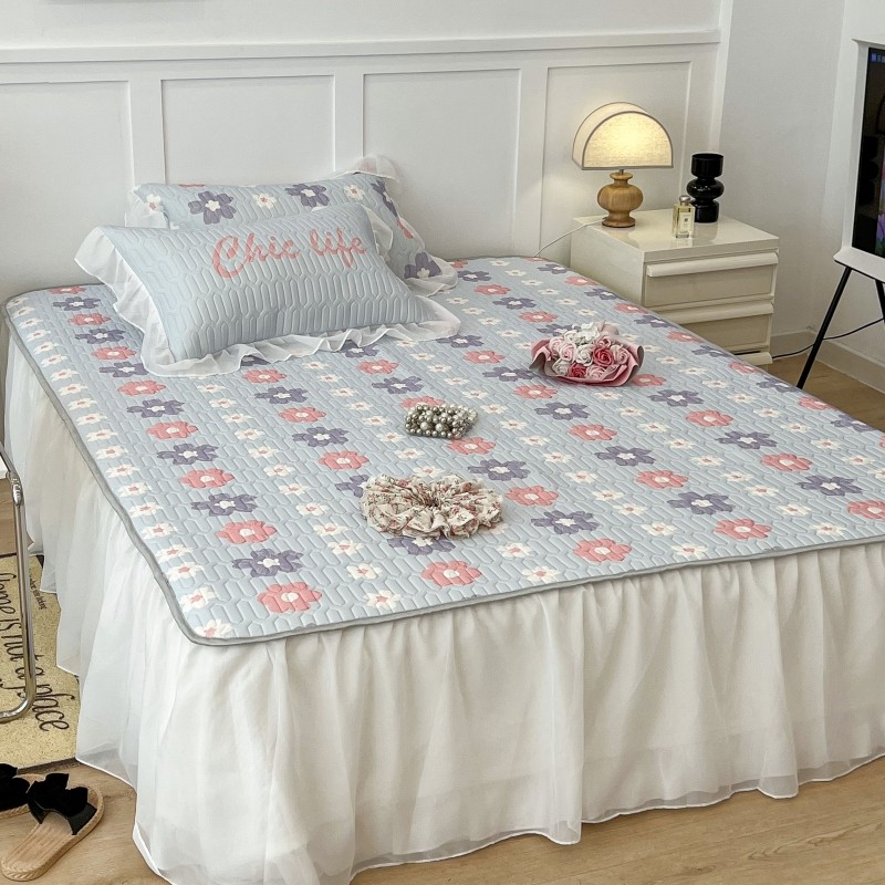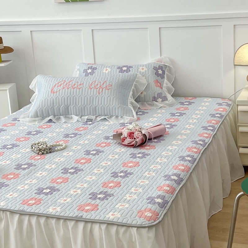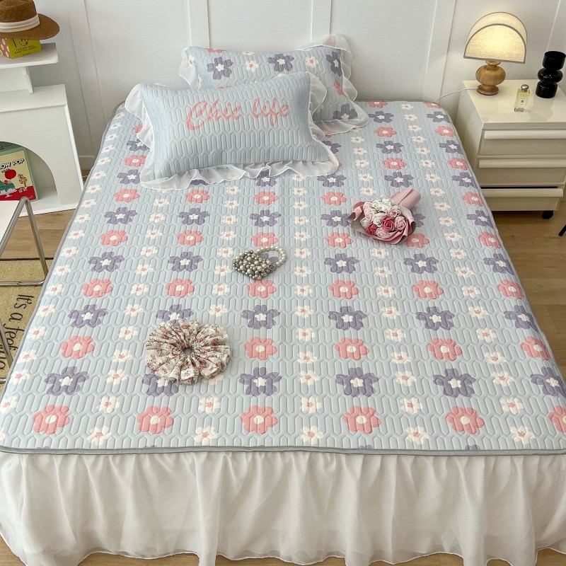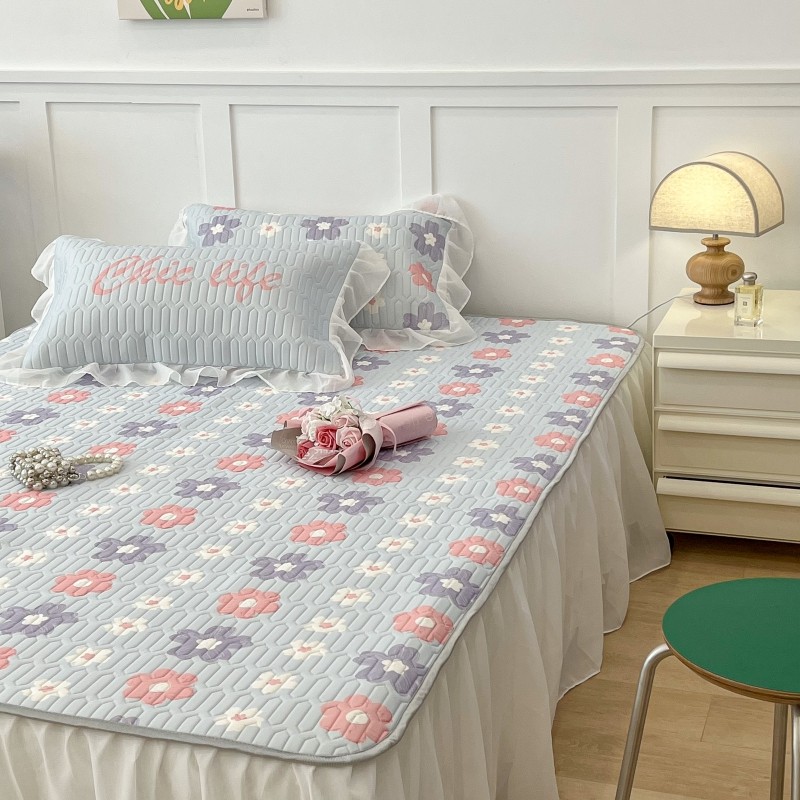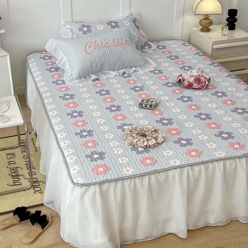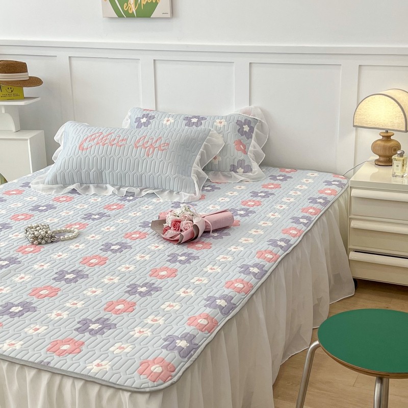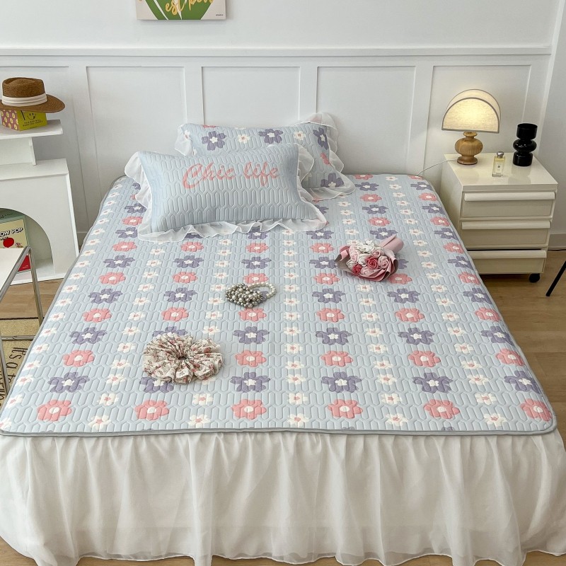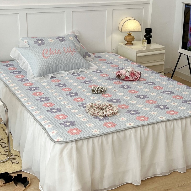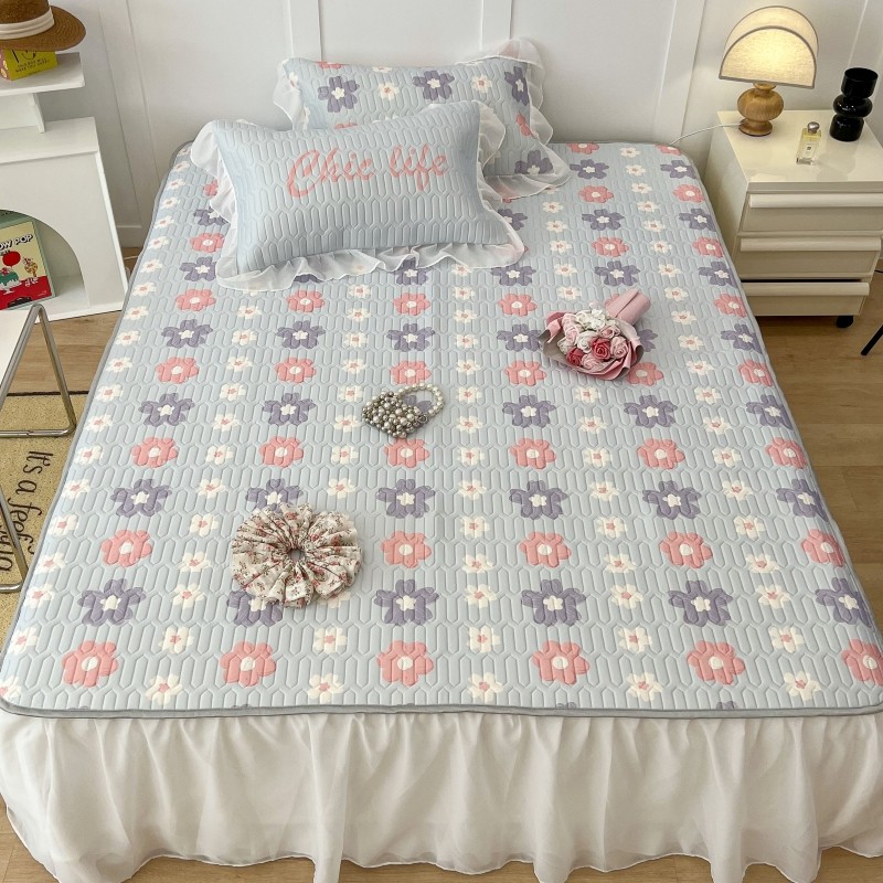 昔可 2022新款ins风小清新床裙款乳胶凉席三件套 床裙款-浪漫仲夏