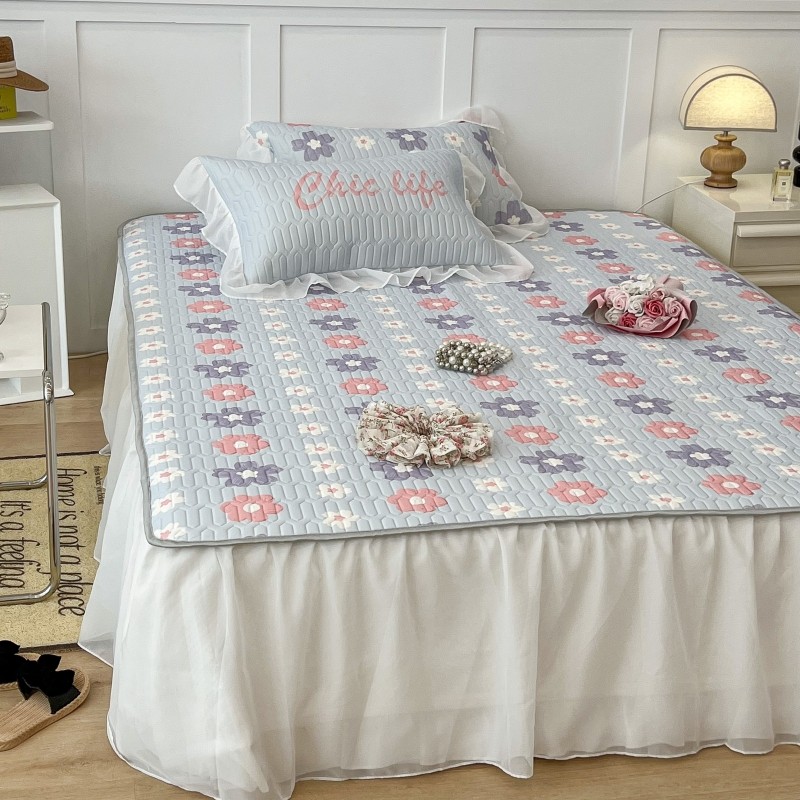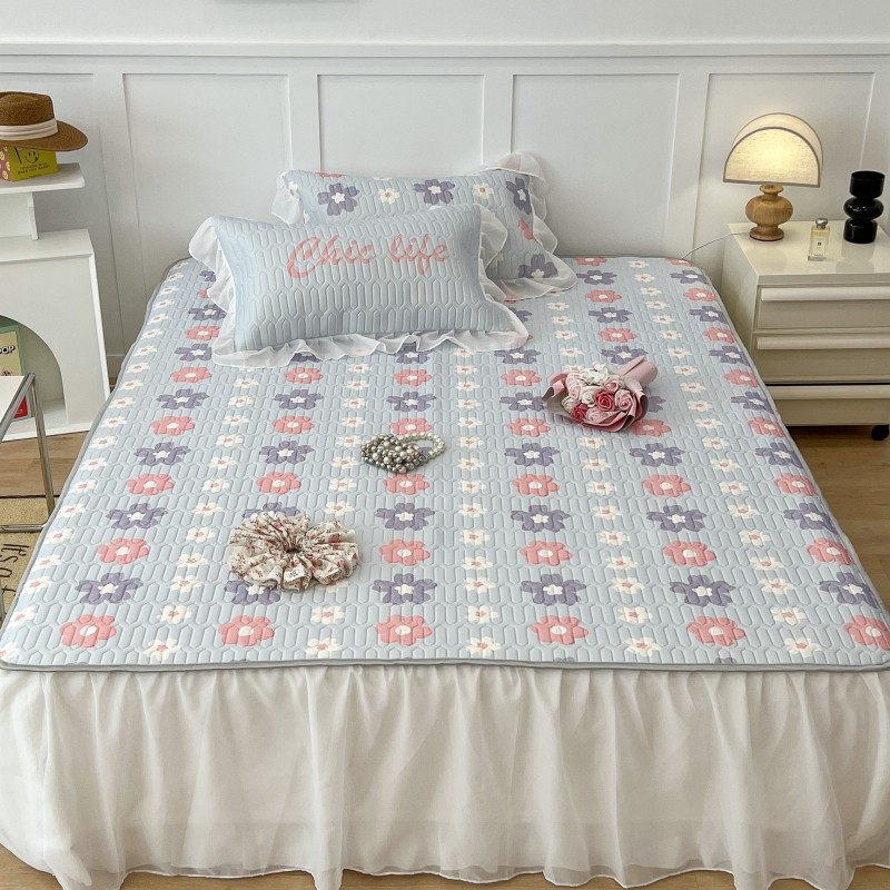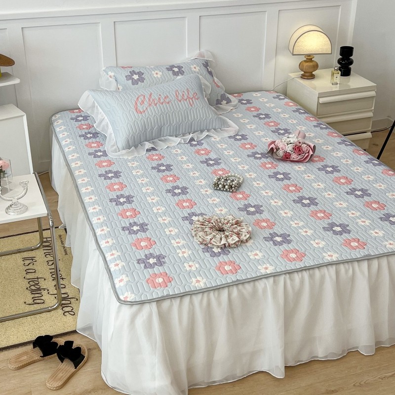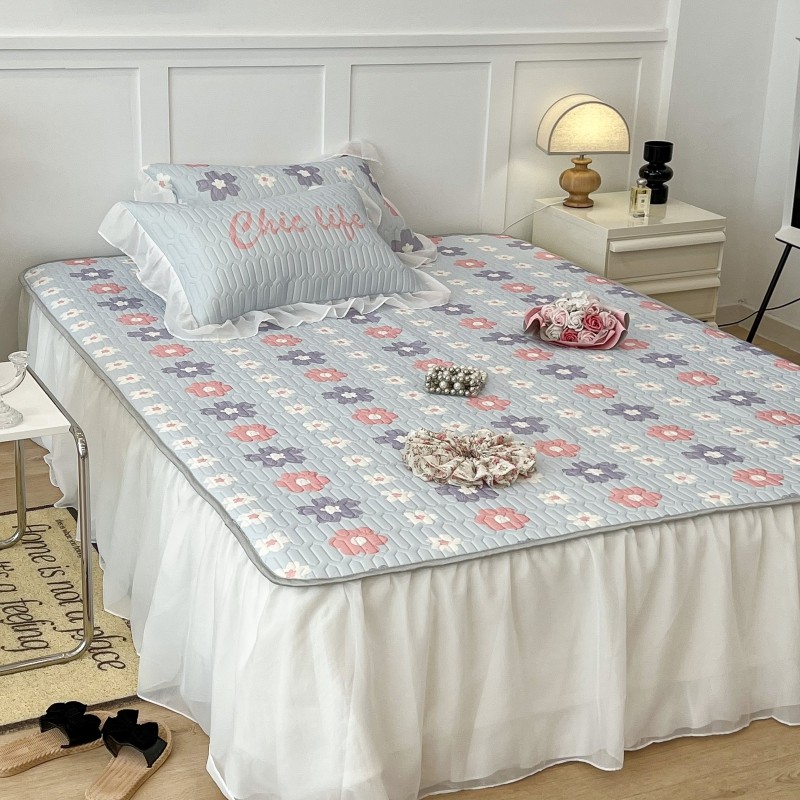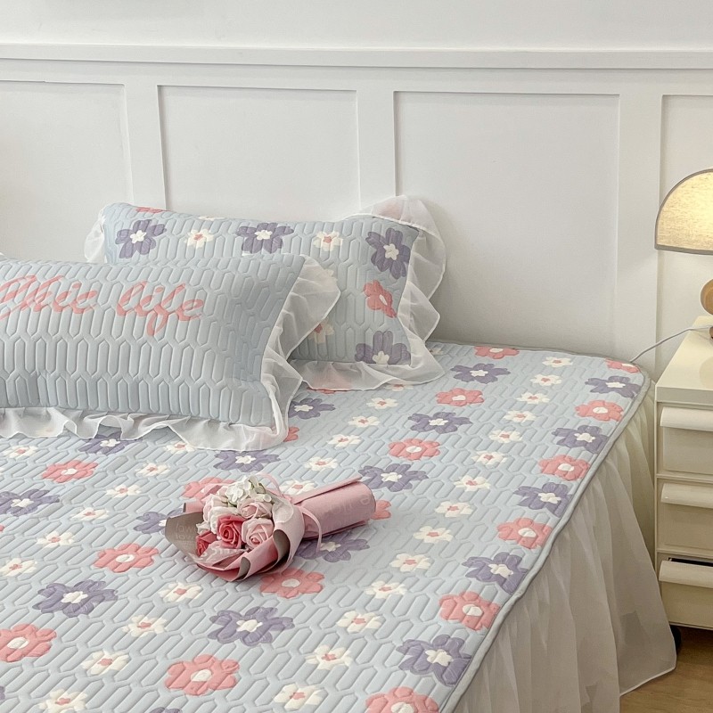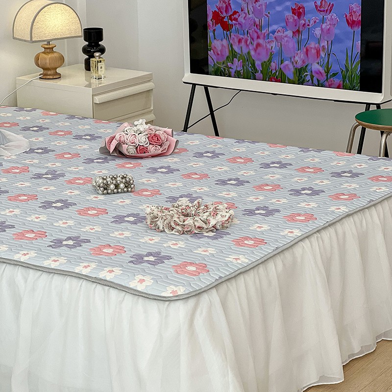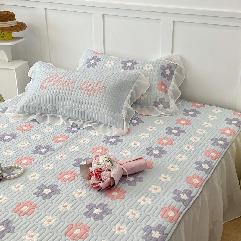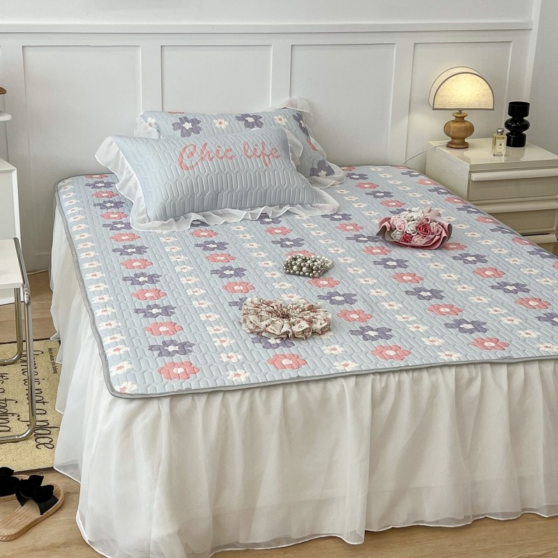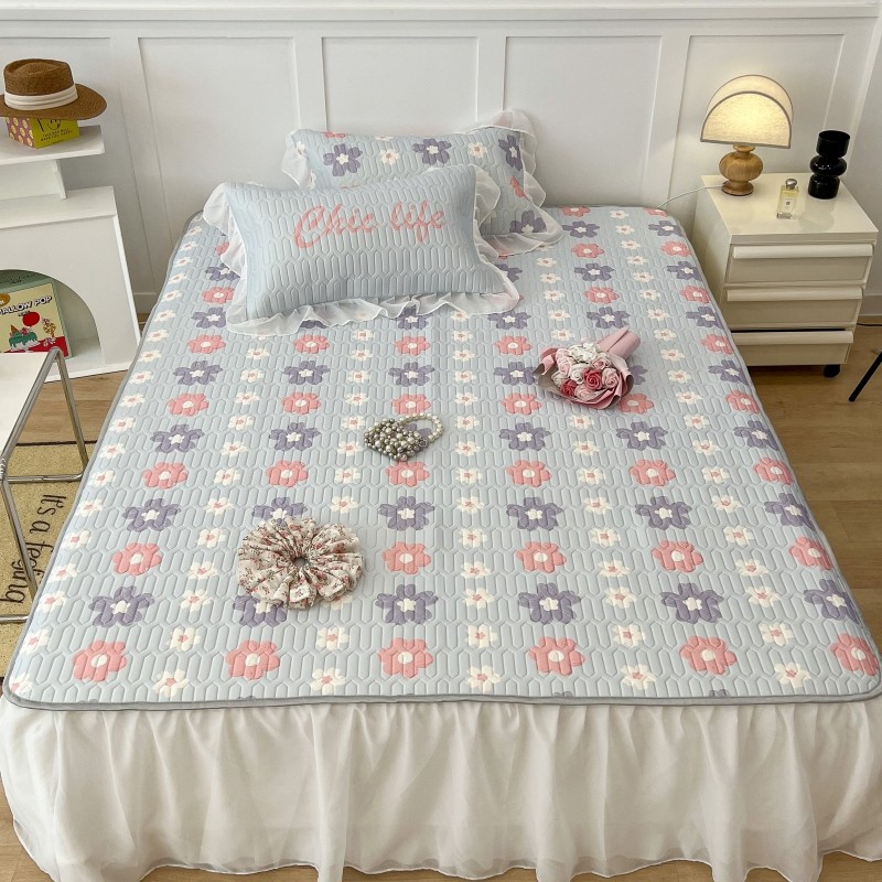 昔可 2022新款ins风小清新床裙款乳胶凉席三件套 床裙款-浪漫仲夏