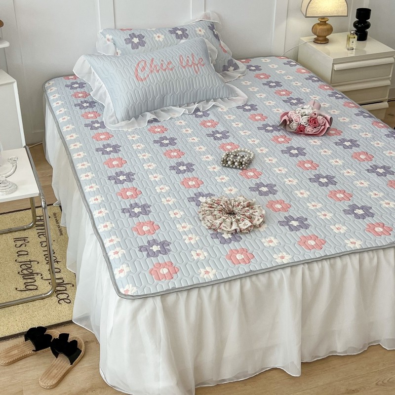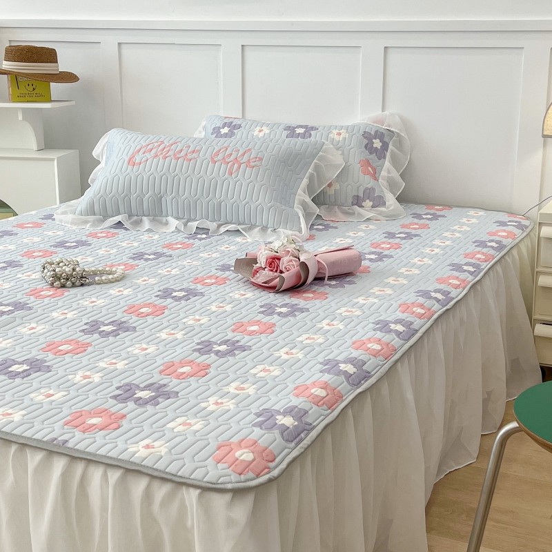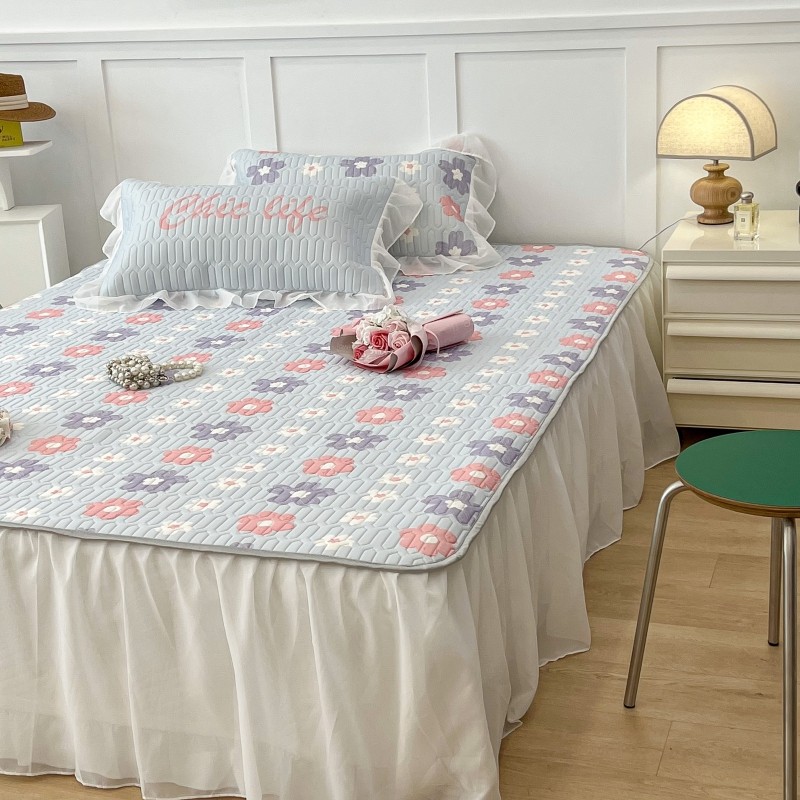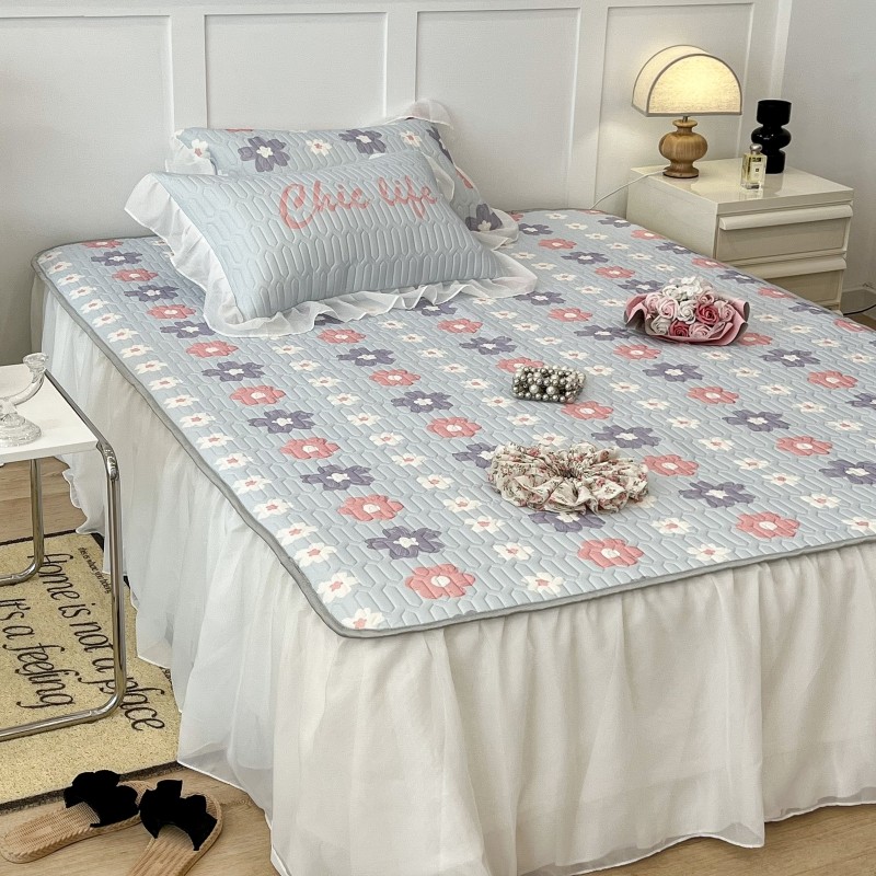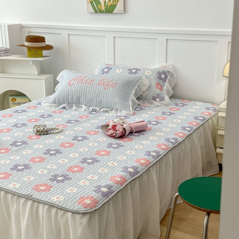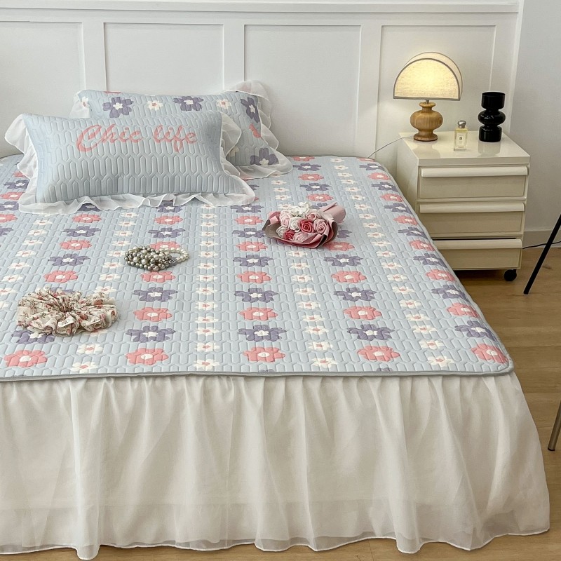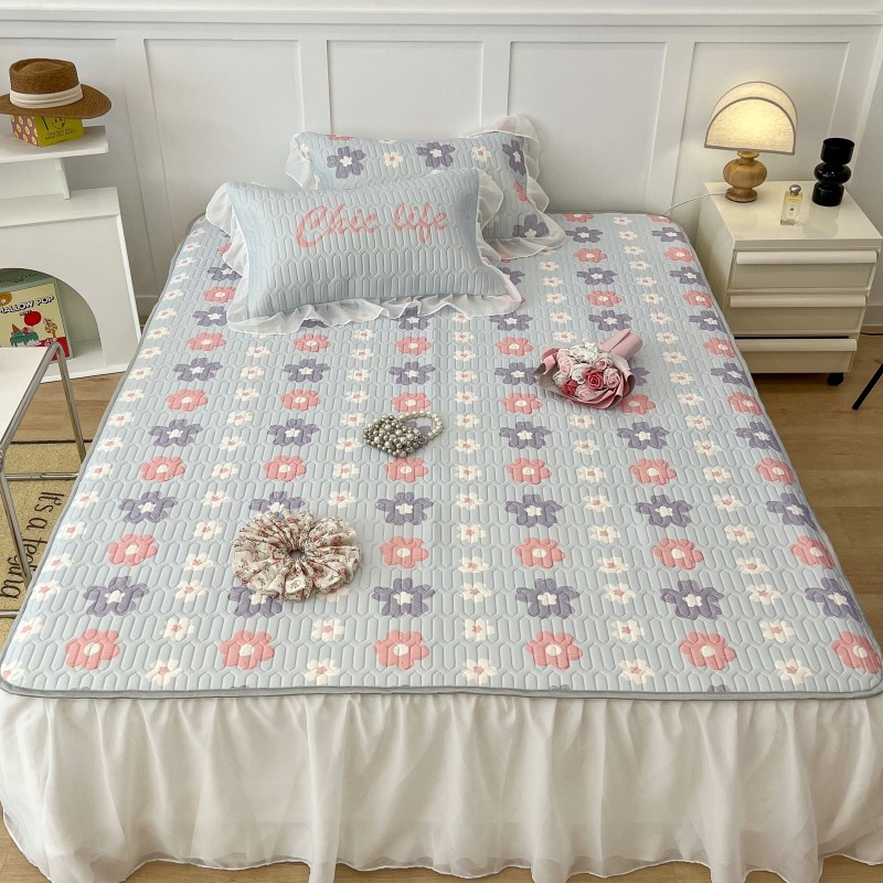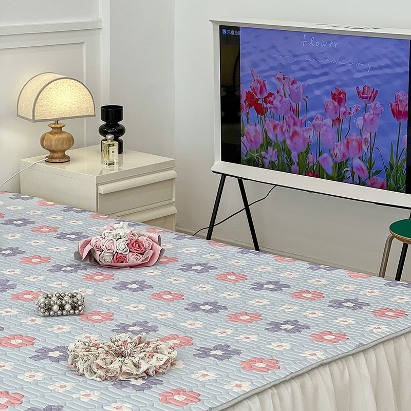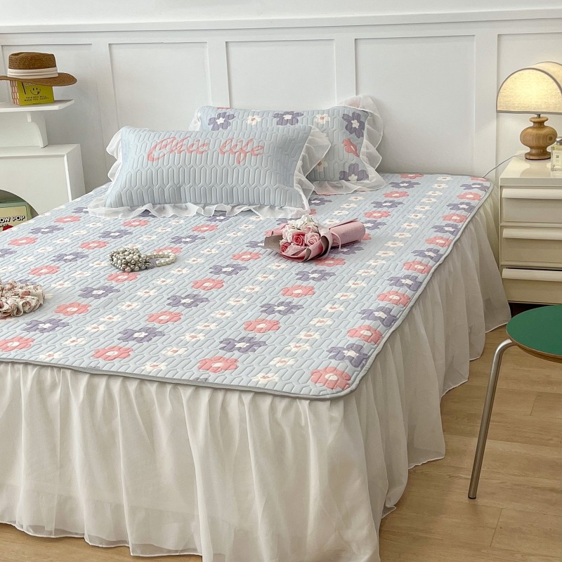 昔可 2022新款ins风小清新床裙款乳胶凉席三件套 床裙款-浪漫仲夏