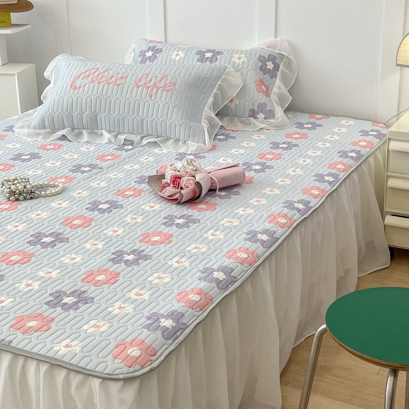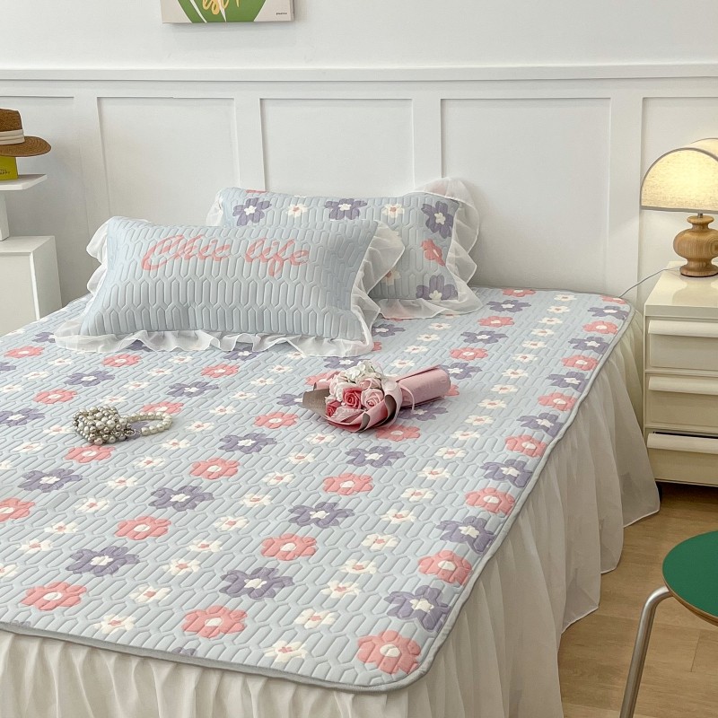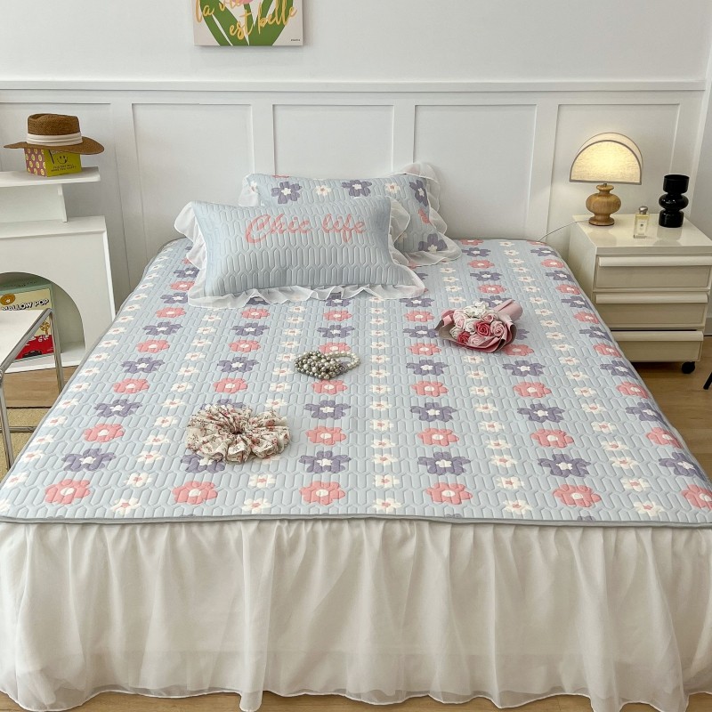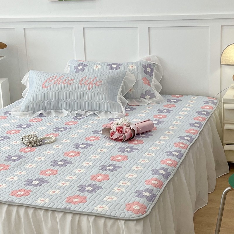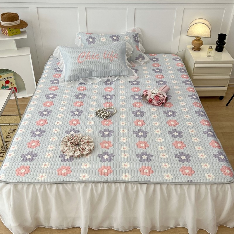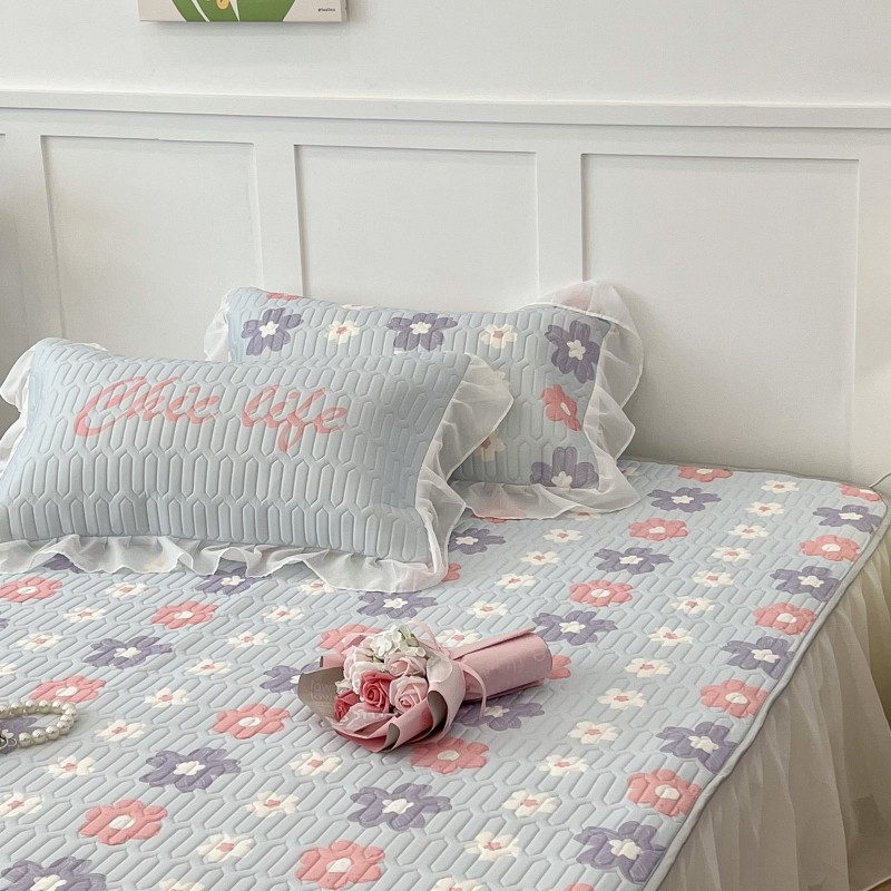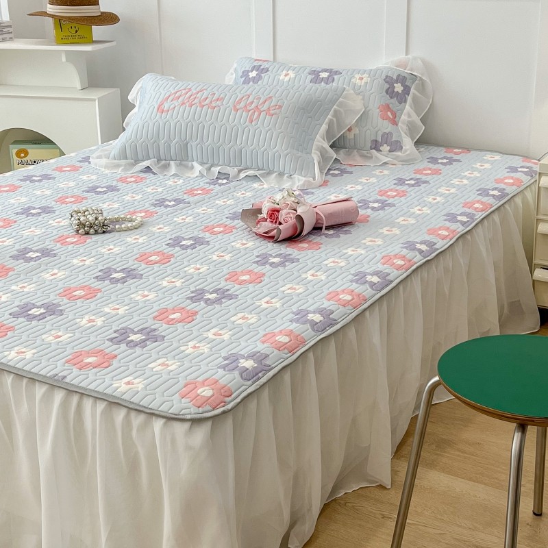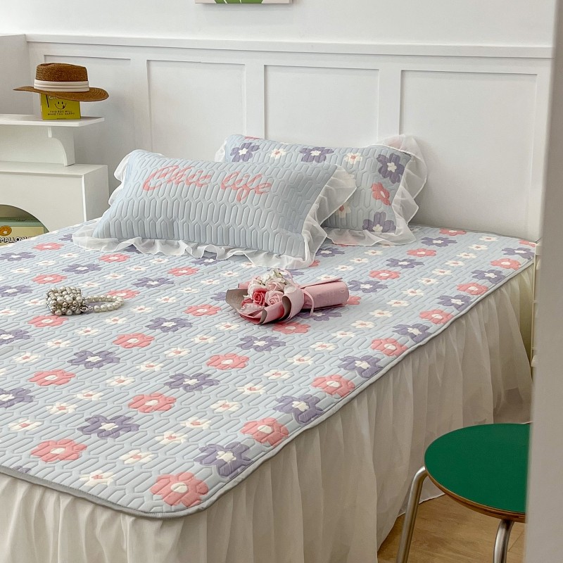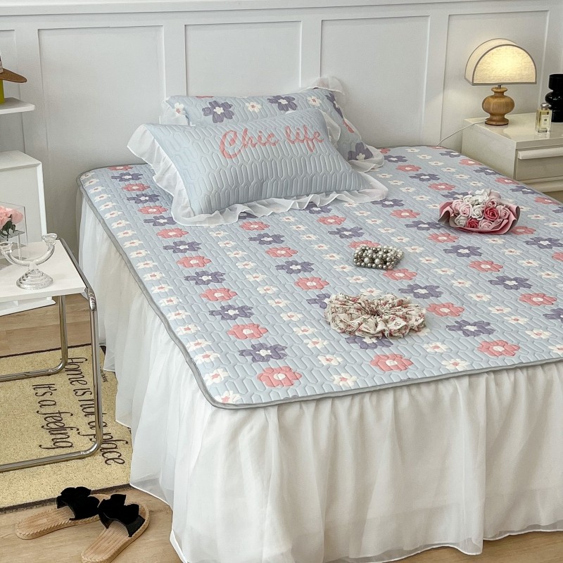 昔可 2022新款ins风小清新床裙款乳胶凉席三件套 床裙款-浪漫仲夏
