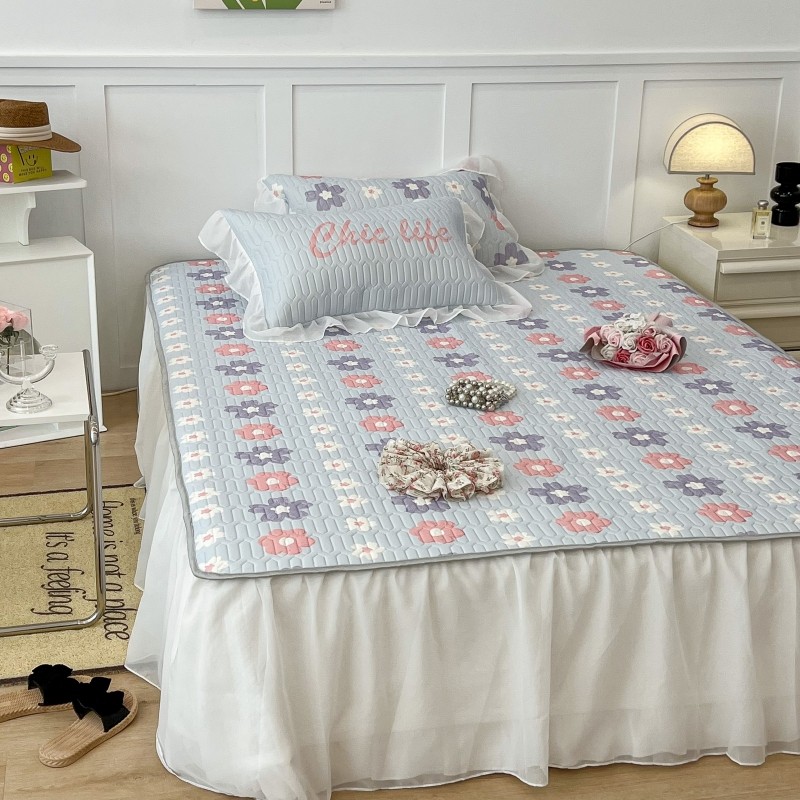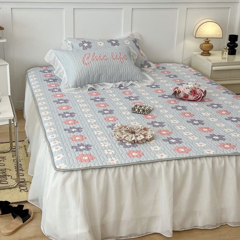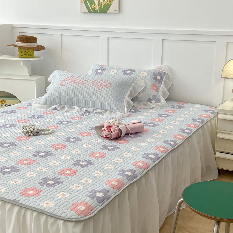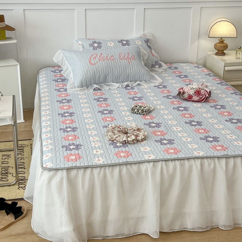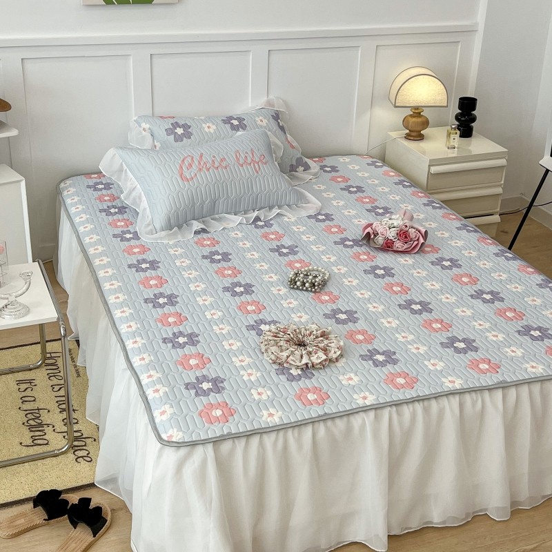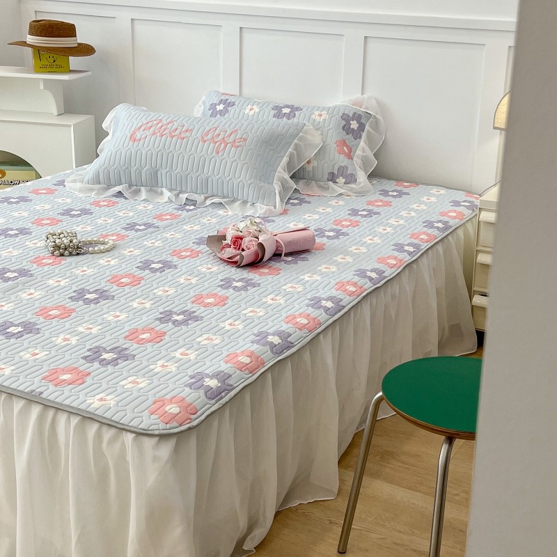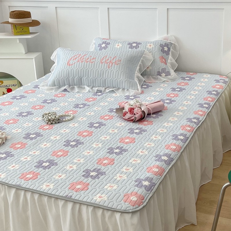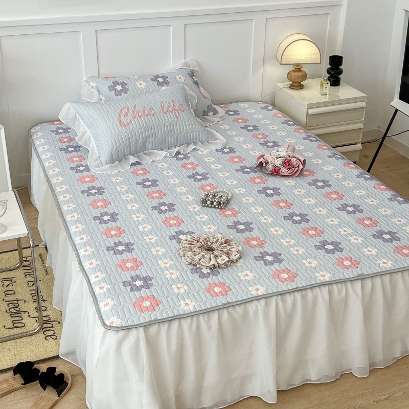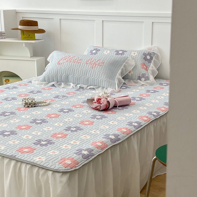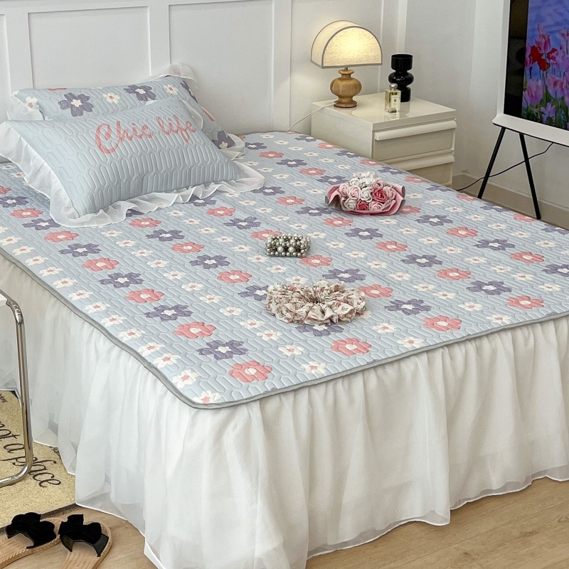 昔可 2022新款ins风小清新床裙款乳胶凉席三件套 床裙款-浪漫仲夏