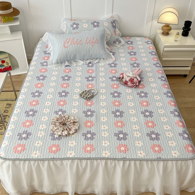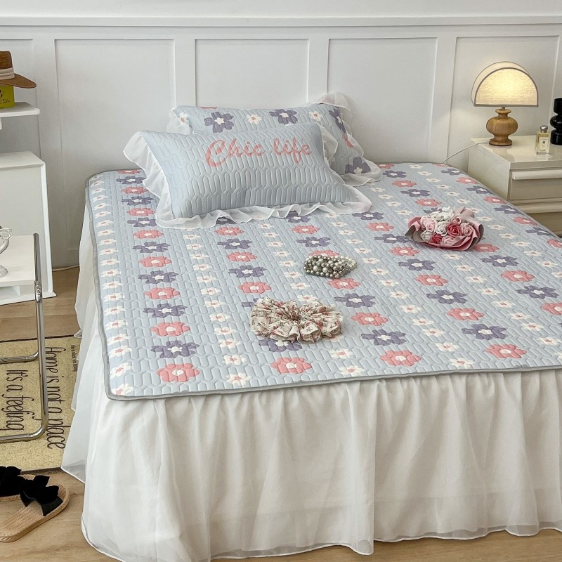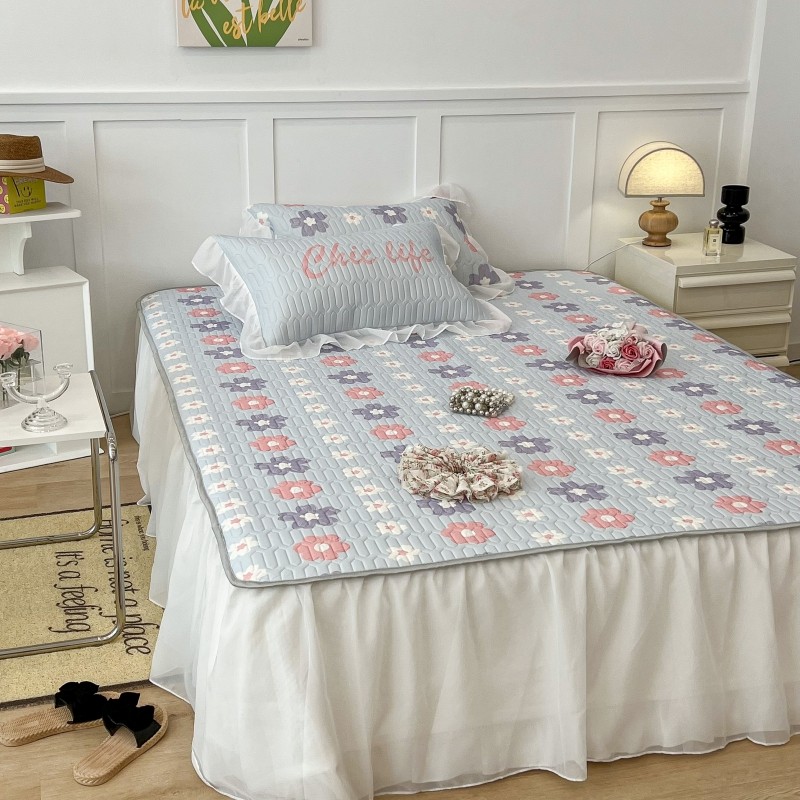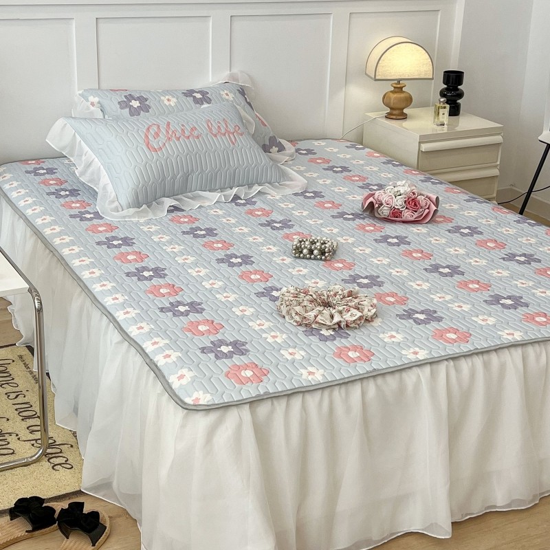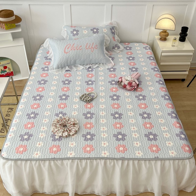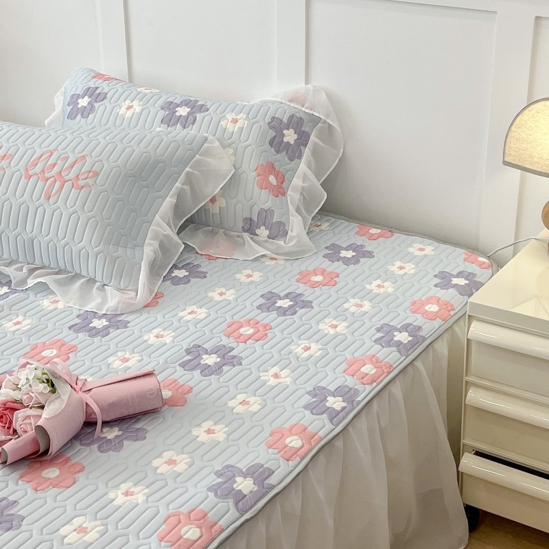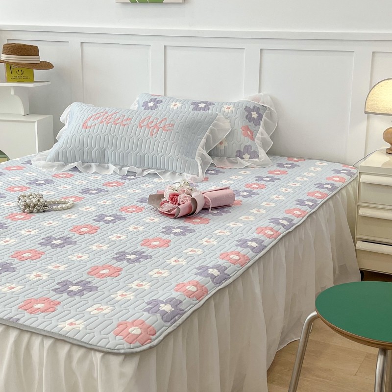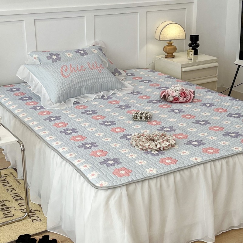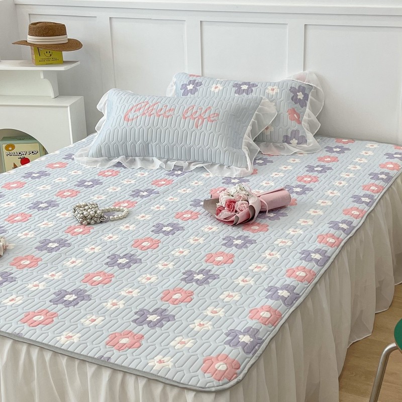 昔可 2022新款ins风小清新床裙款乳胶凉席三件套 床裙款-浪漫仲夏