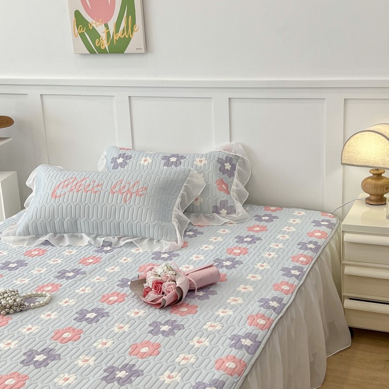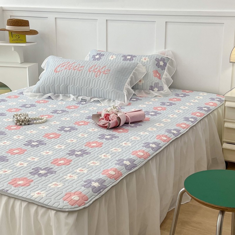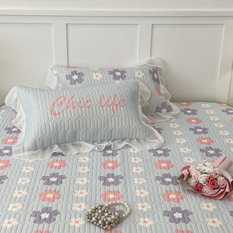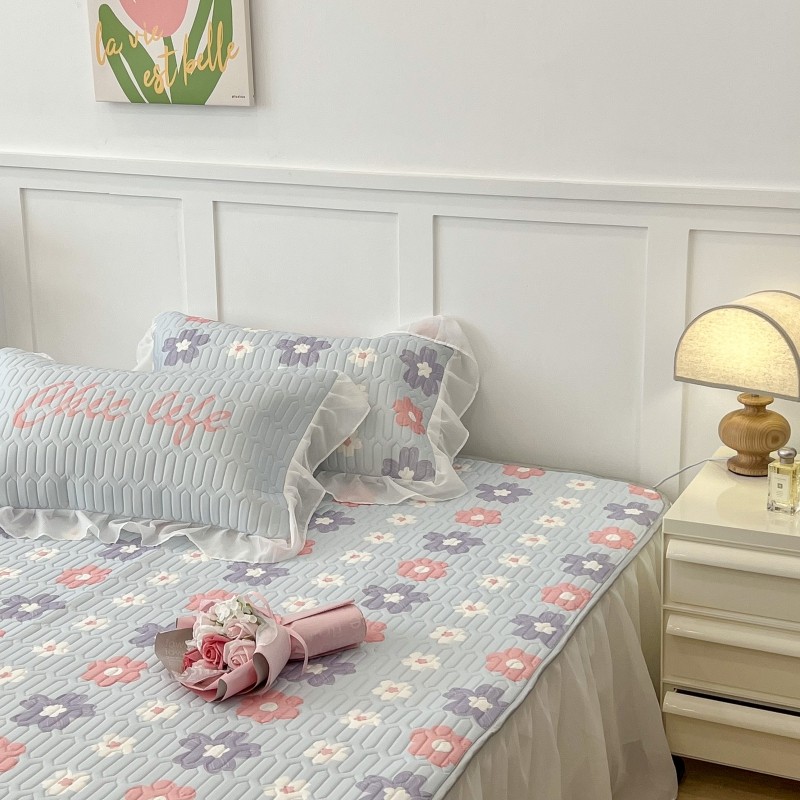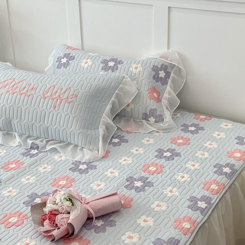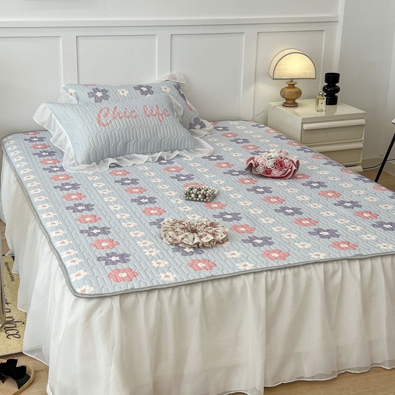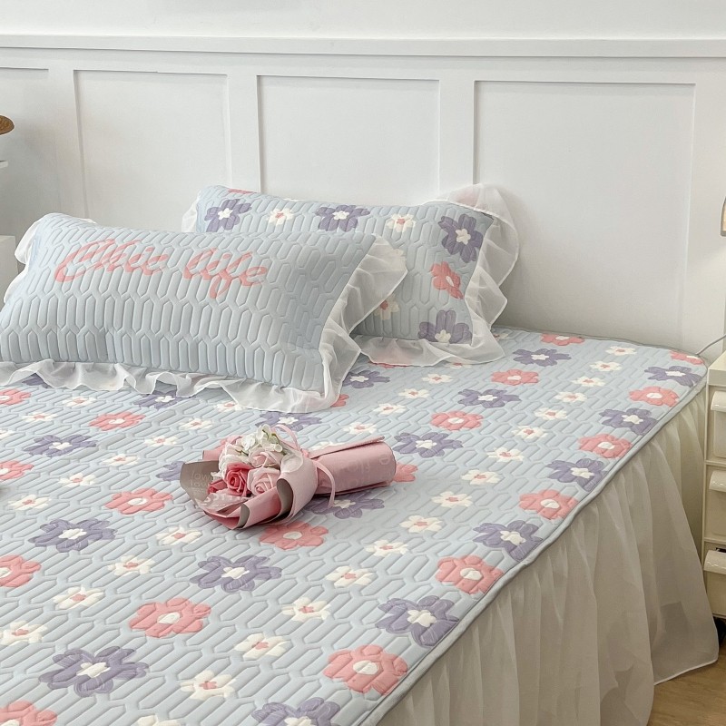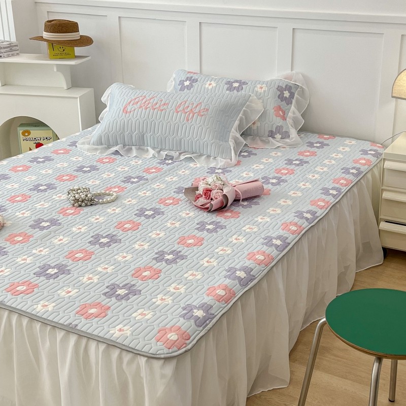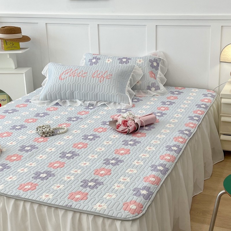 昔可 2022新款ins风小清新床裙款乳胶凉席三件套 床裙款-浪漫仲夏
