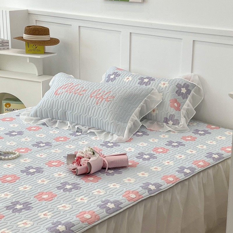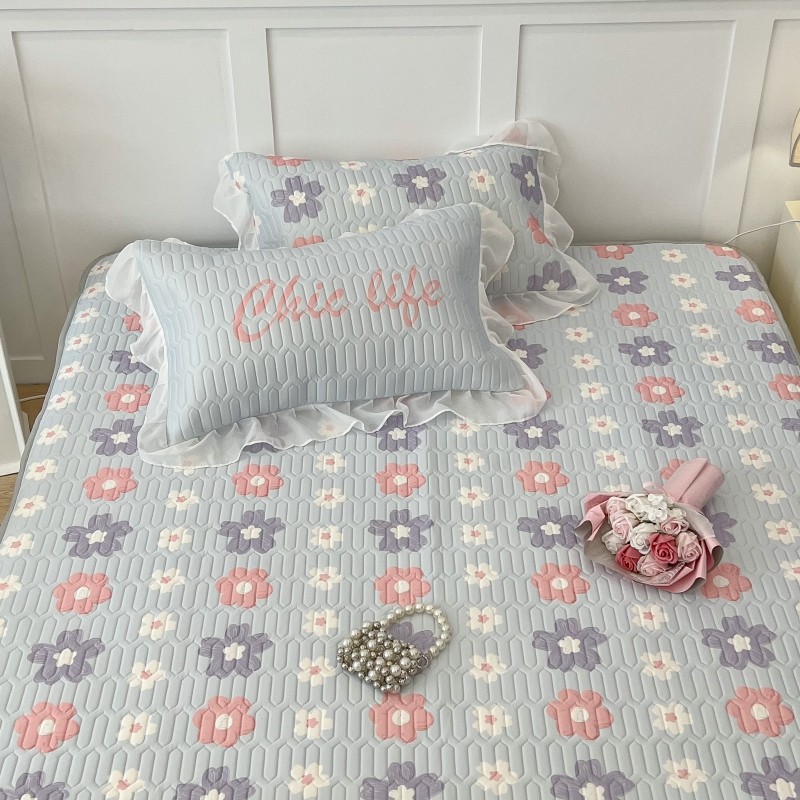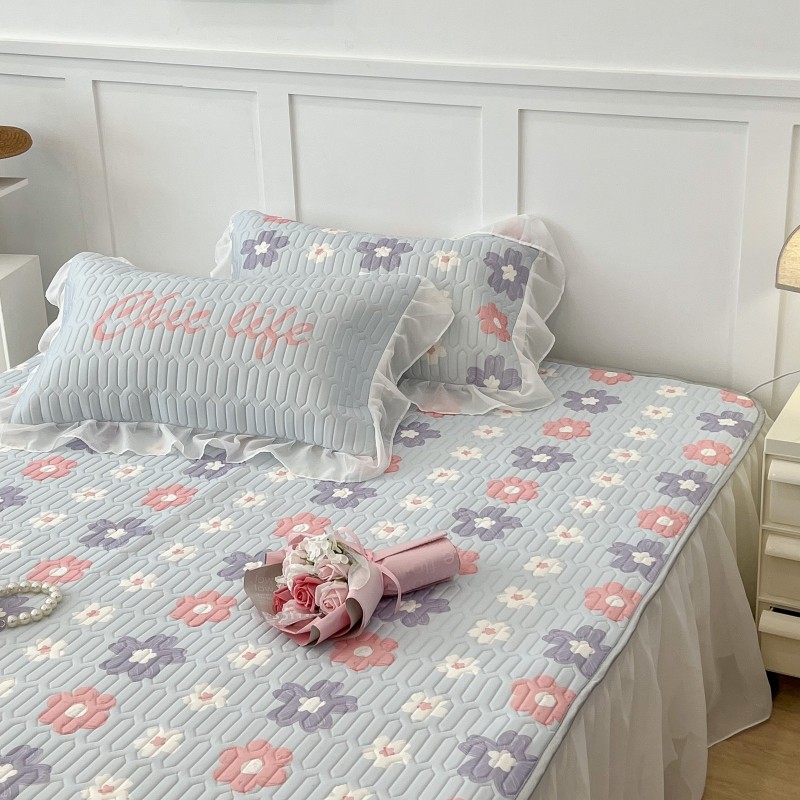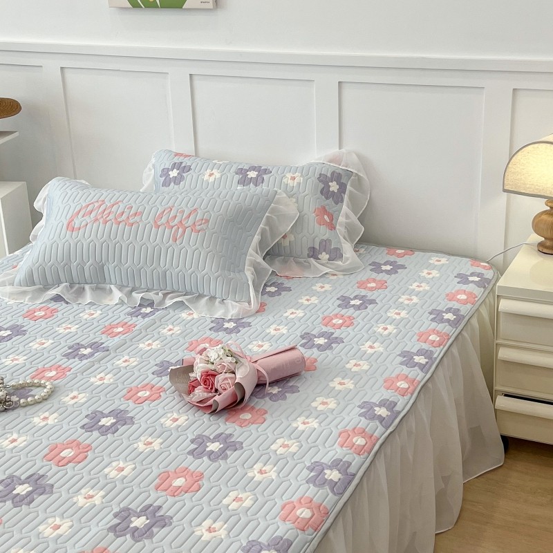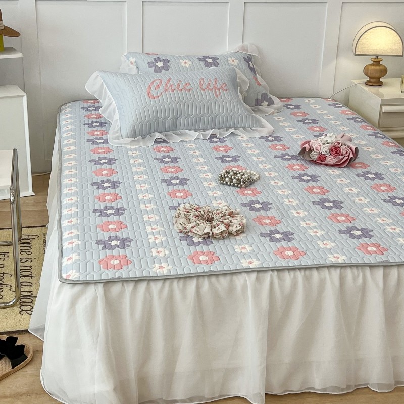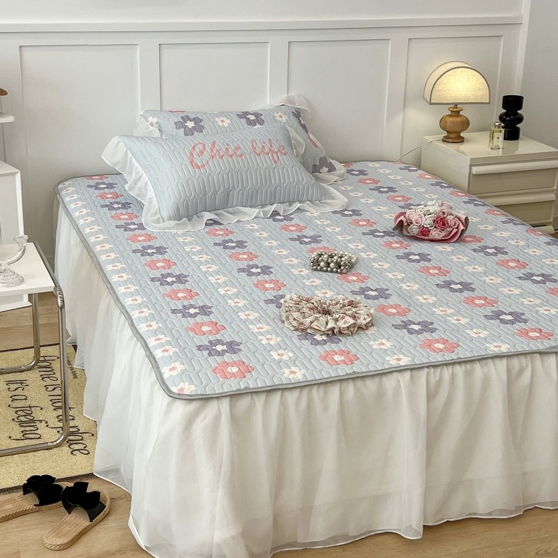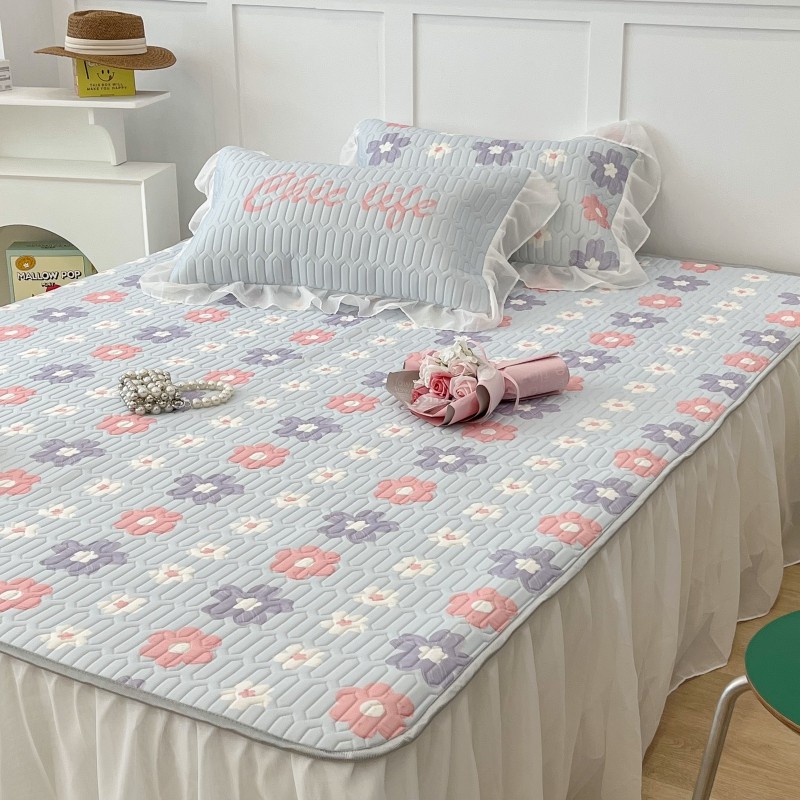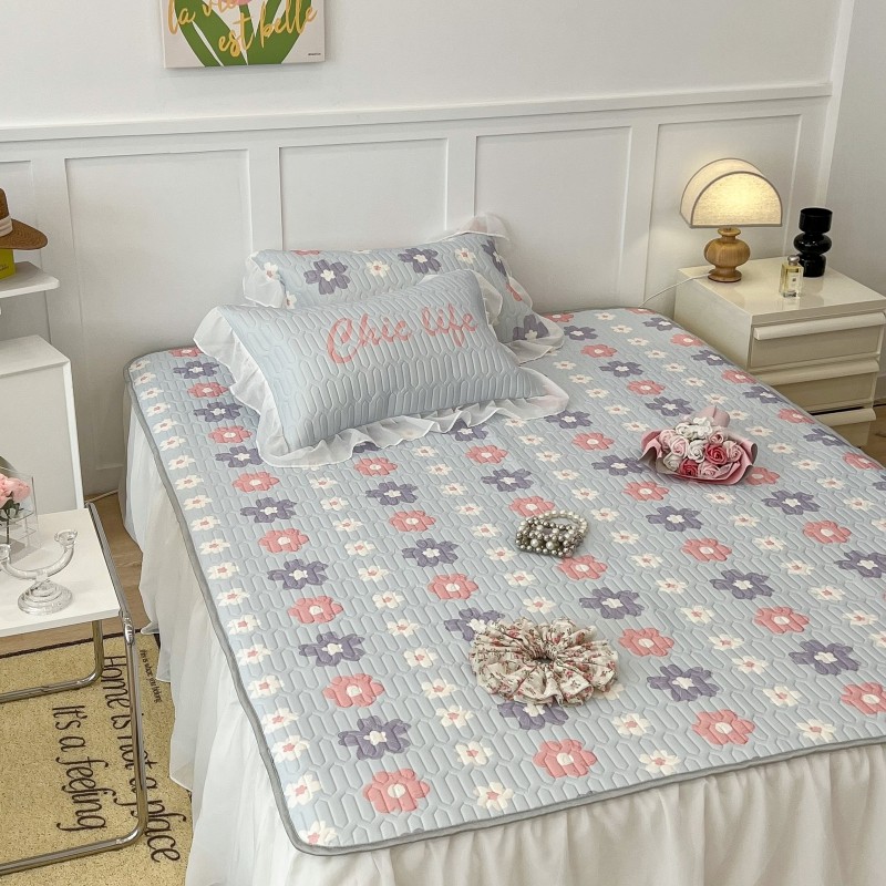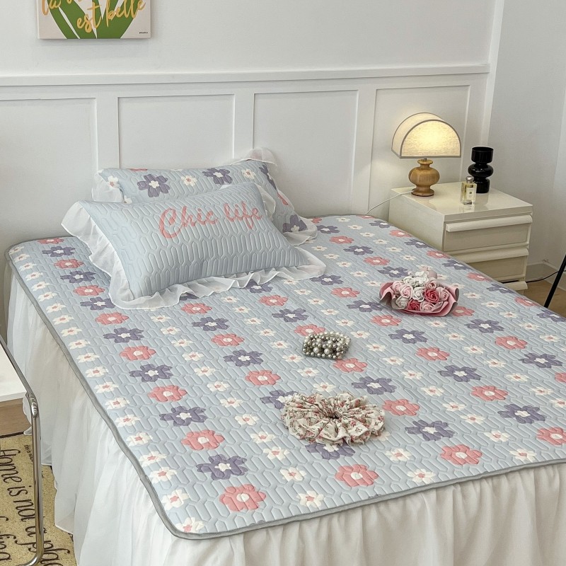 昔可 2022新款ins风小清新床裙款乳胶凉席三件套 床裙款-浪漫仲夏