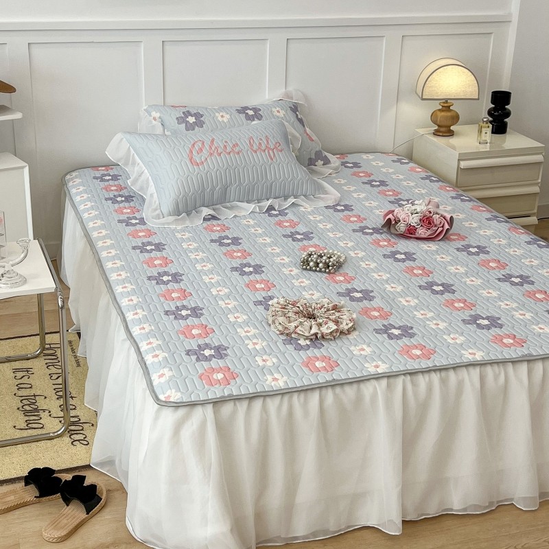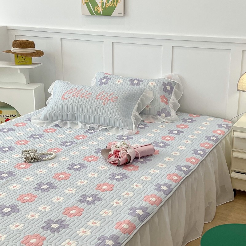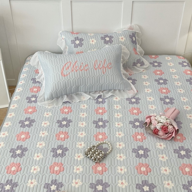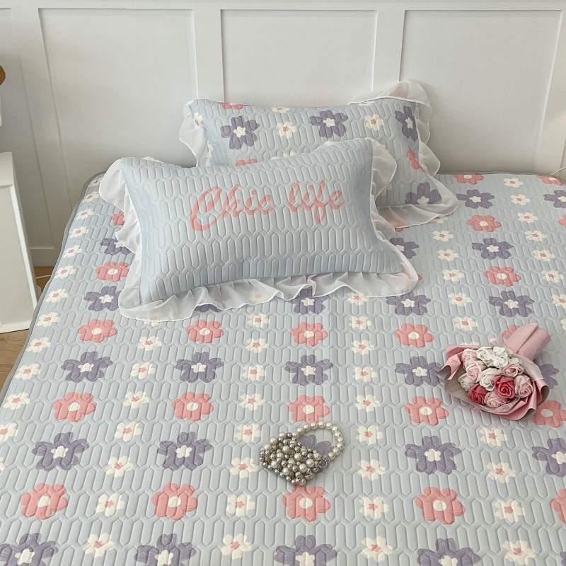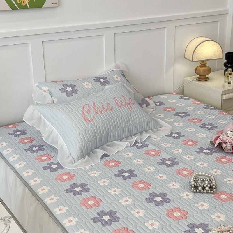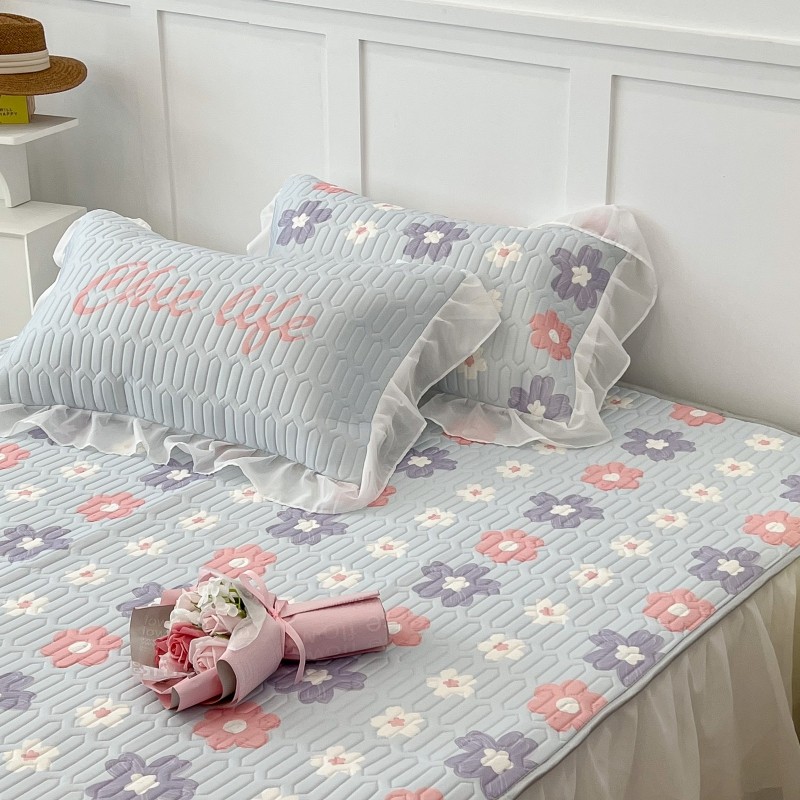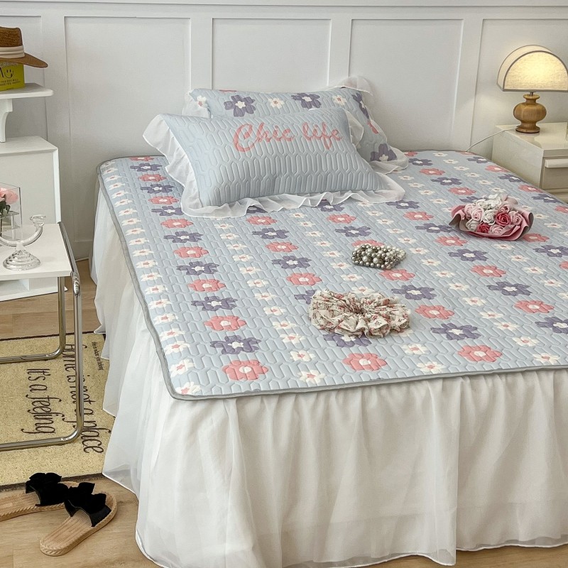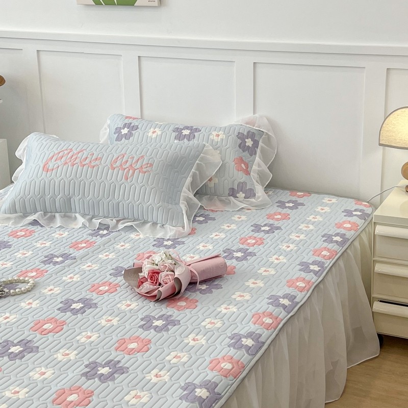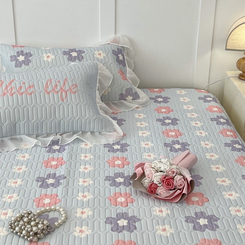 昔可 2022新款ins风小清新床裙款乳胶凉席三件套 床裙款-浪漫仲夏