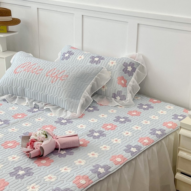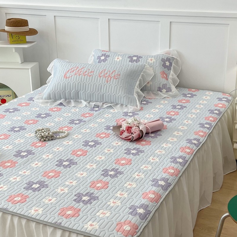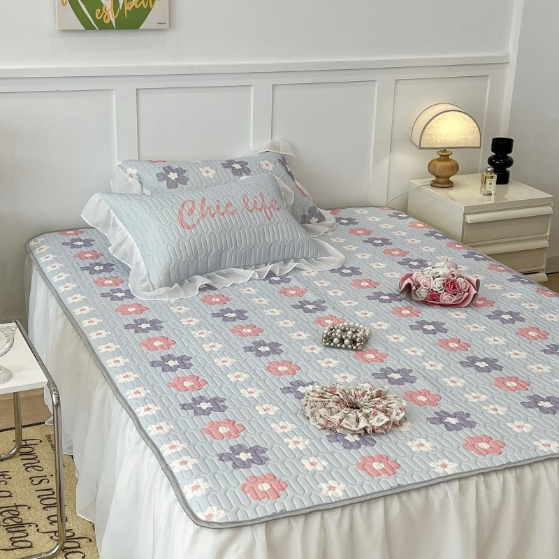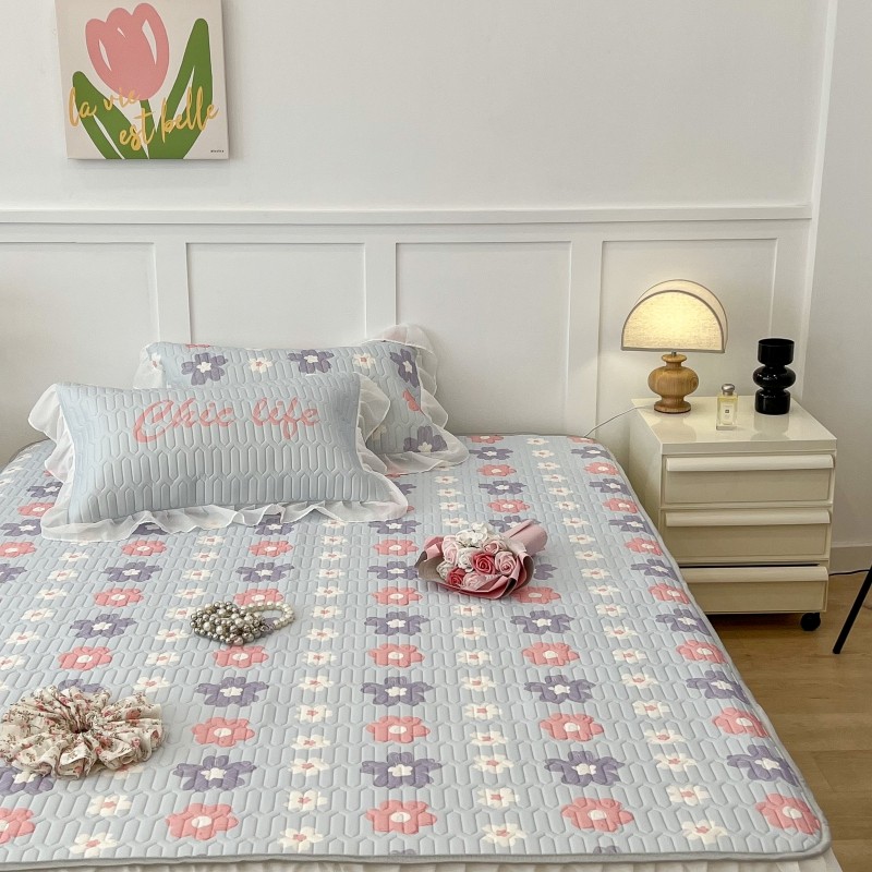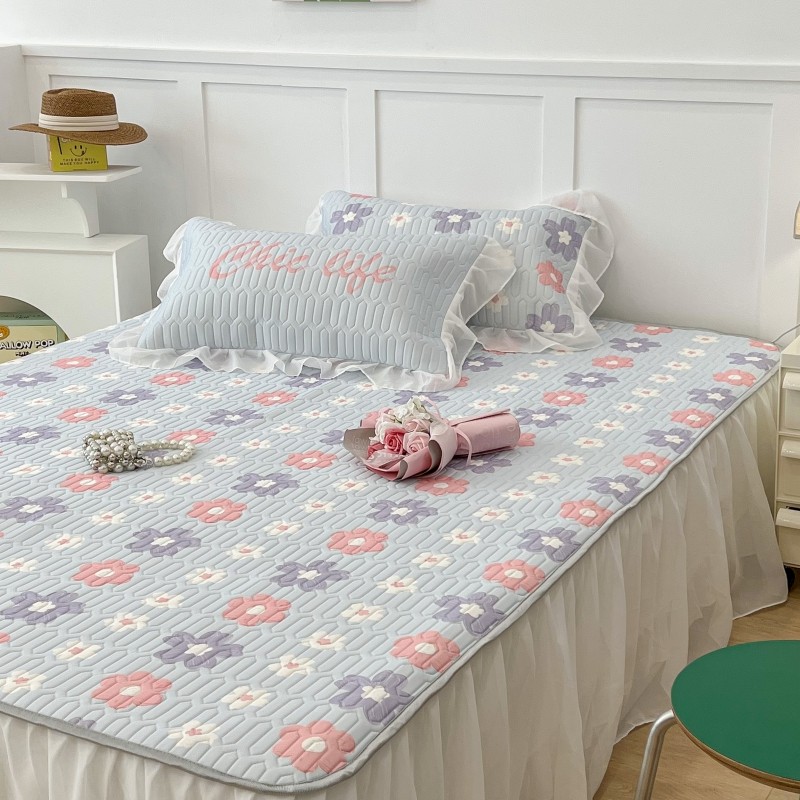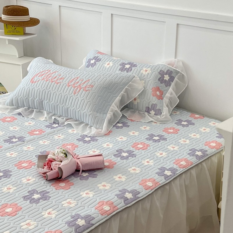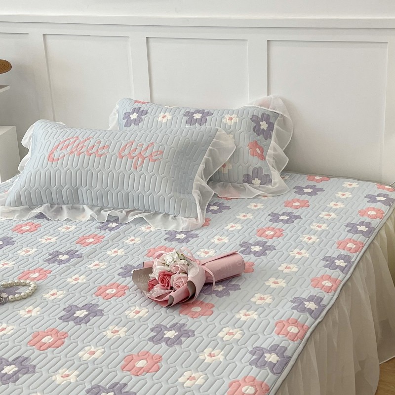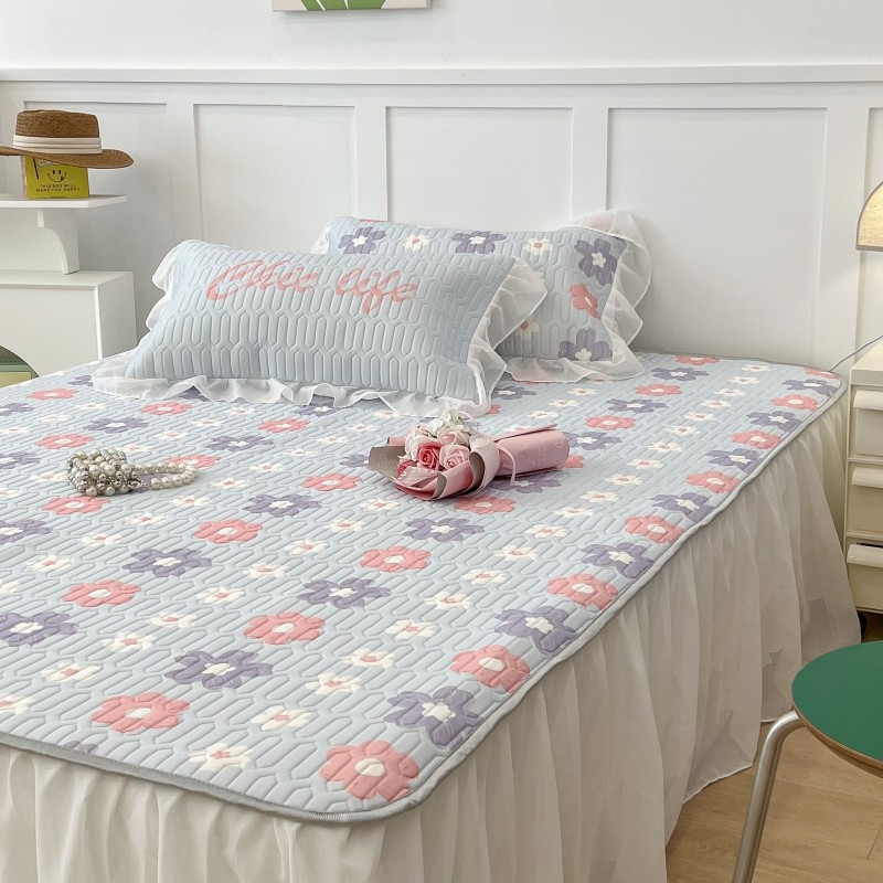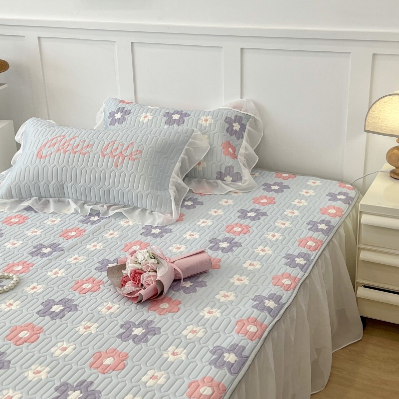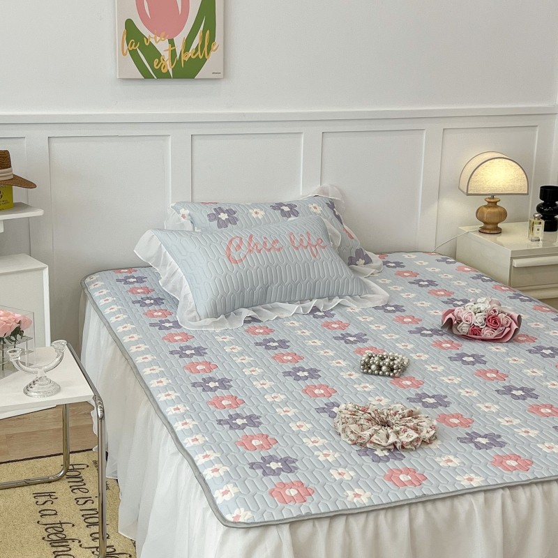 昔可 2022新款ins风小清新床裙款乳胶凉席三件套 床裙款-浪漫仲夏