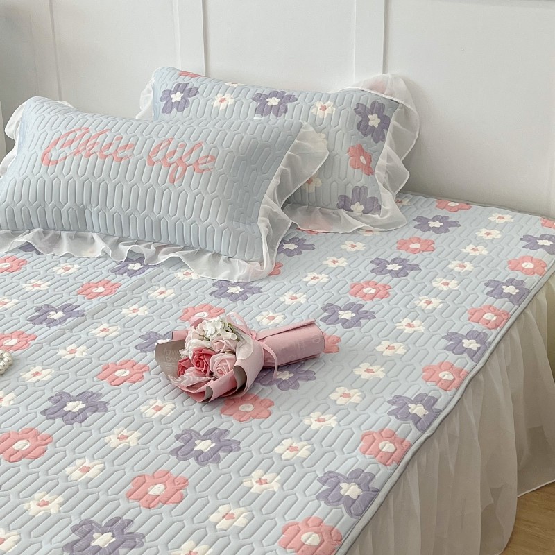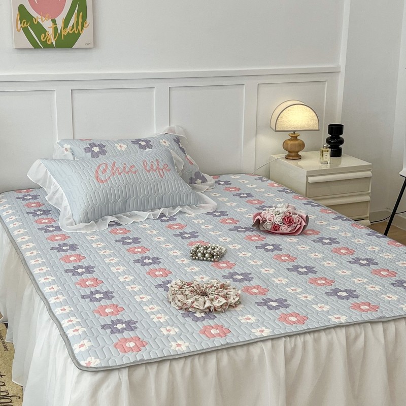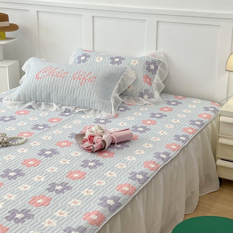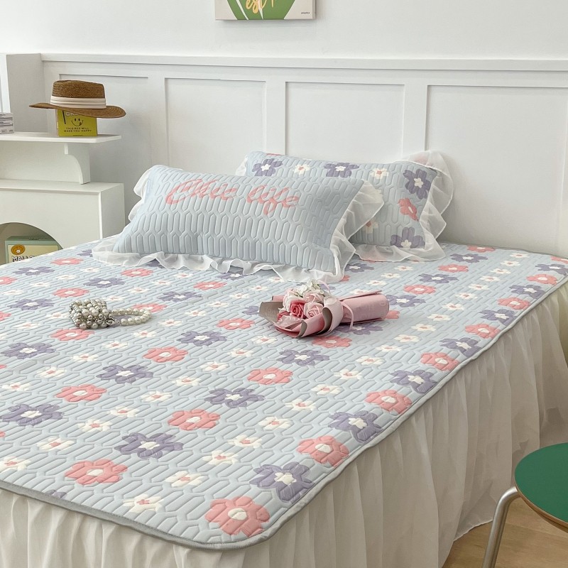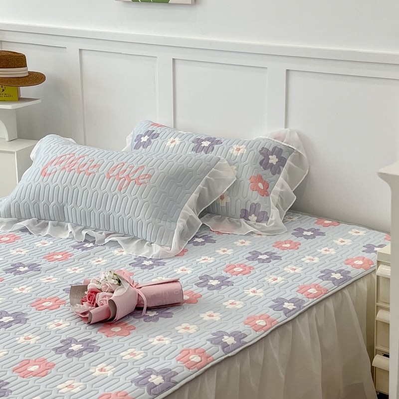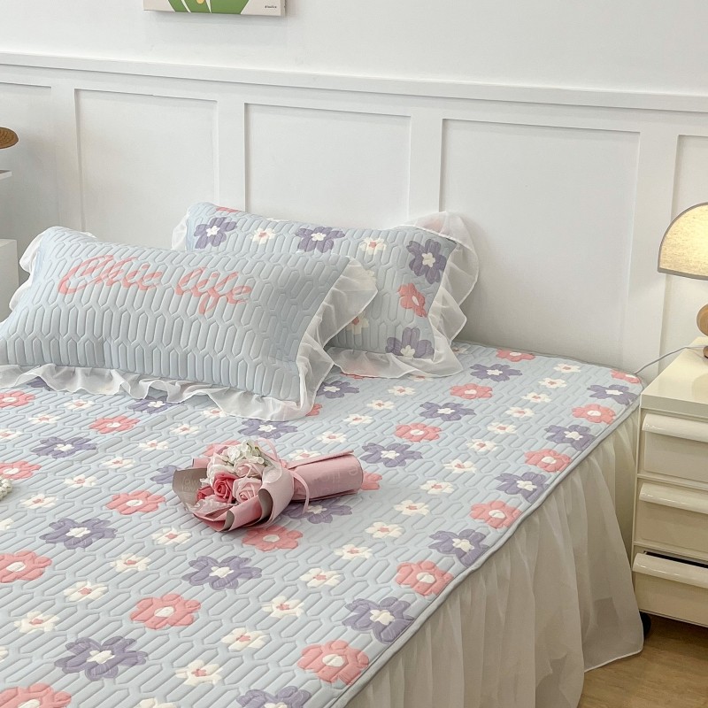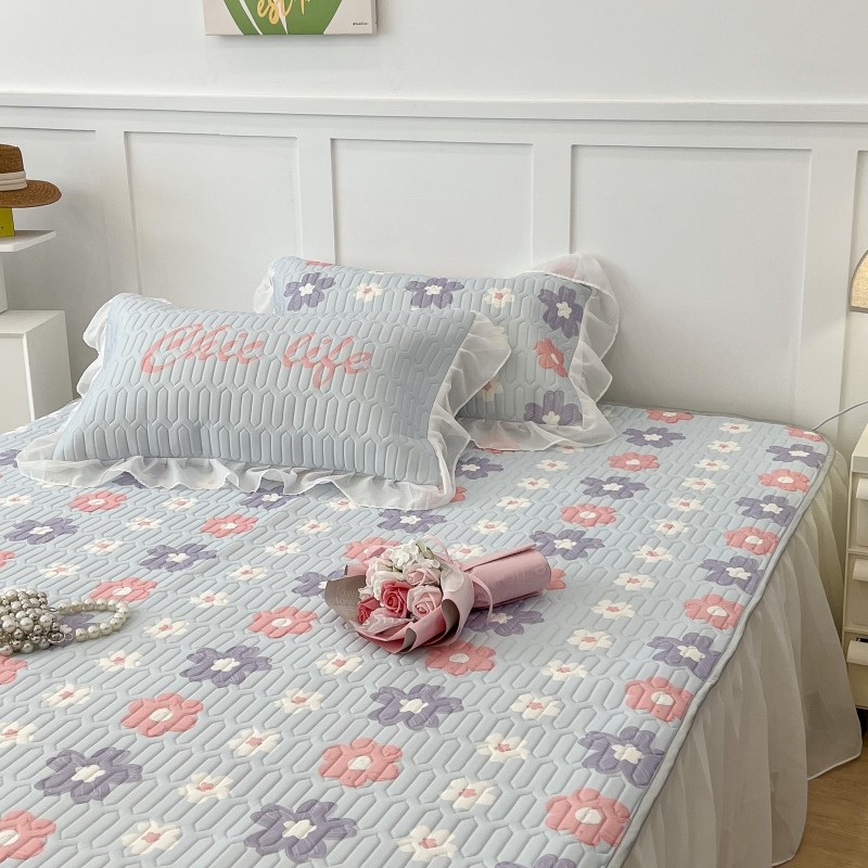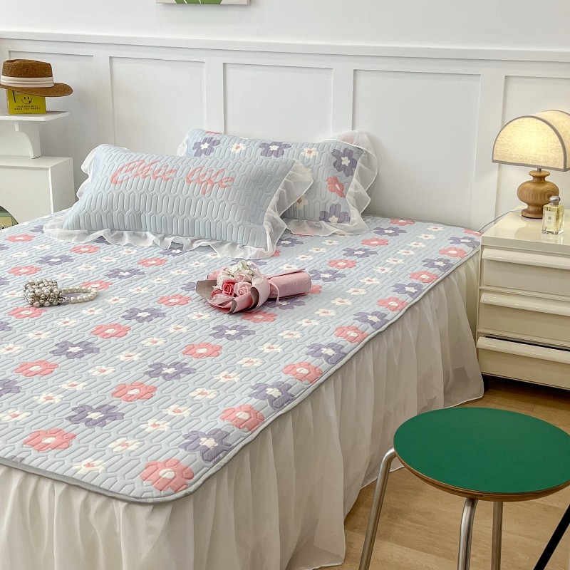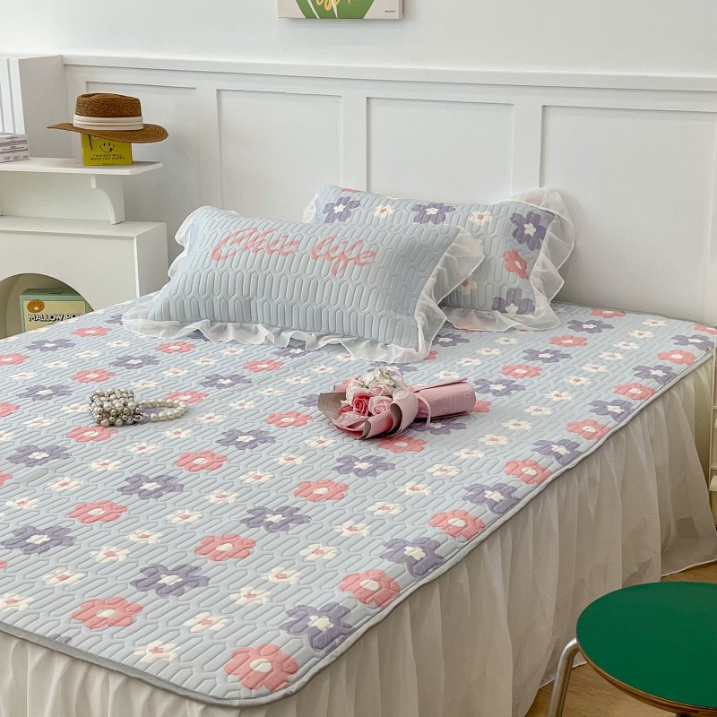 昔可 2022新款ins风小清新床裙款乳胶凉席三件套 床裙款-浪漫仲夏