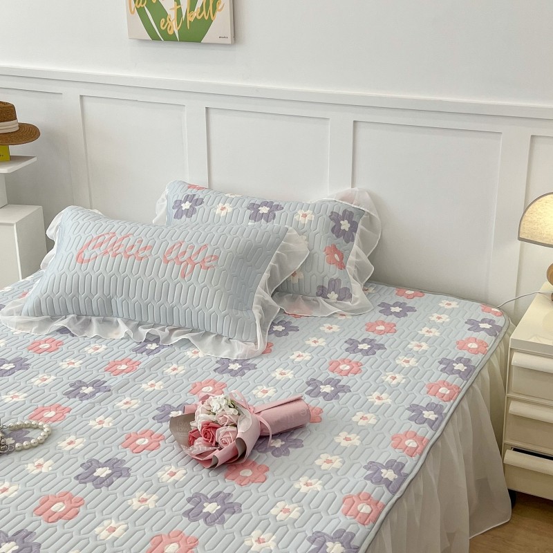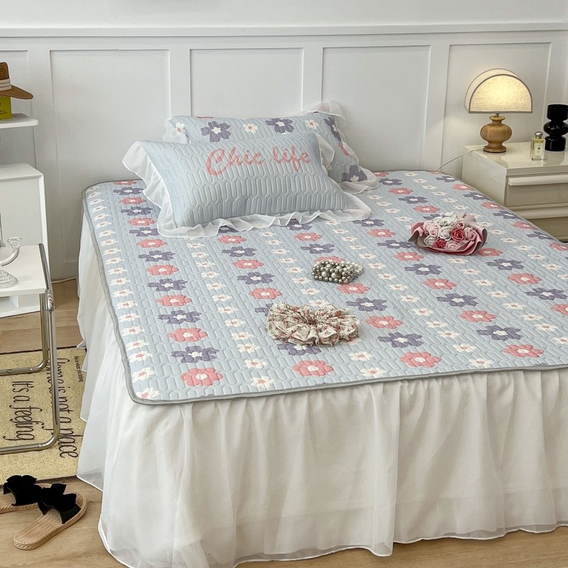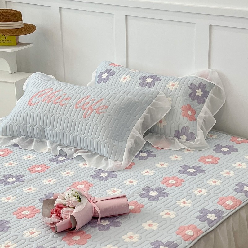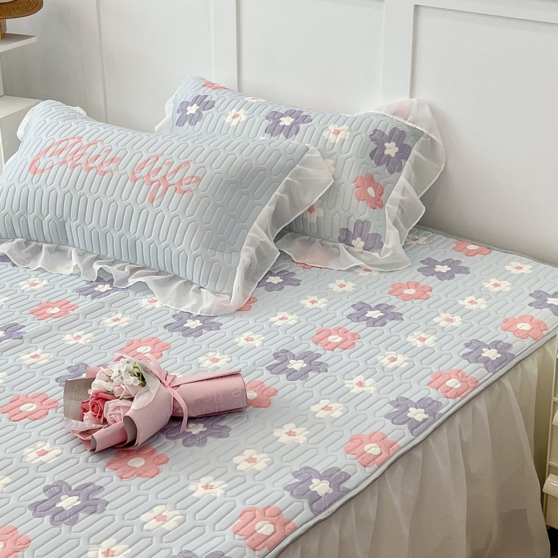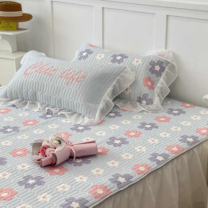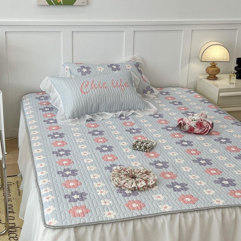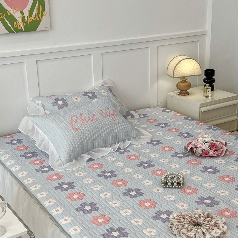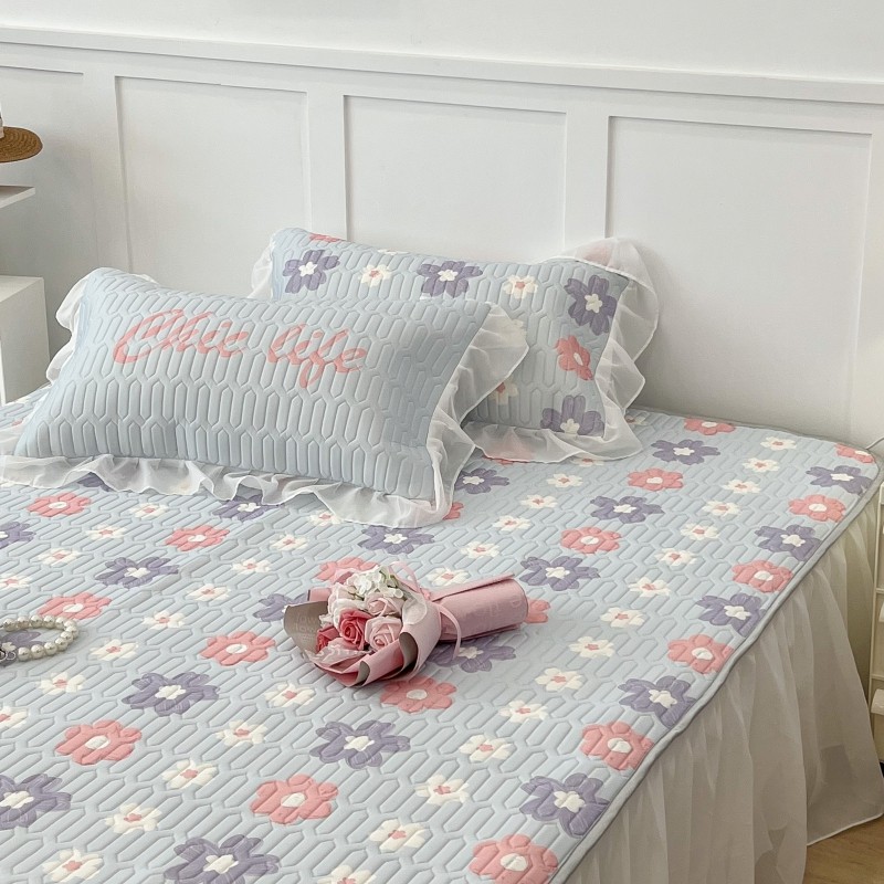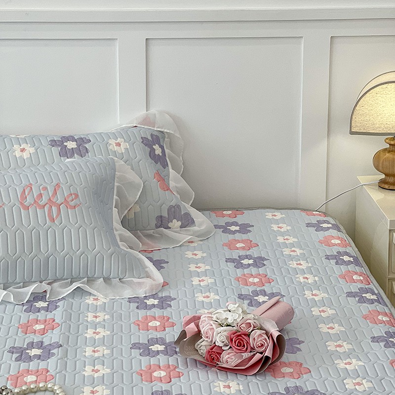 昔可 2022新款ins风小清新床裙款乳胶凉席三件套 床裙款-浪漫仲夏