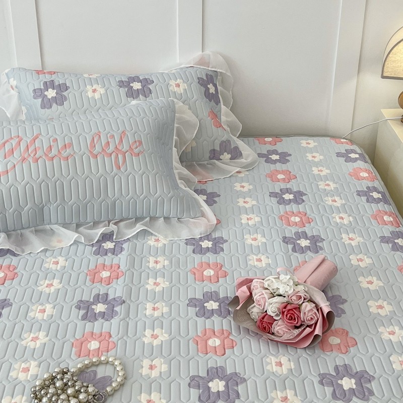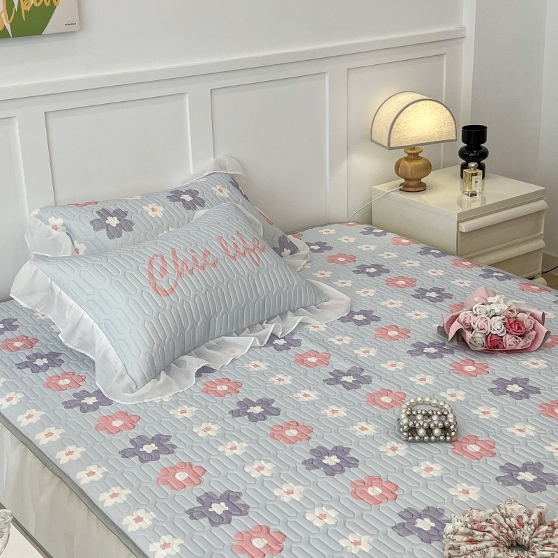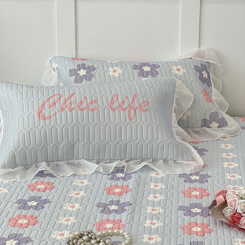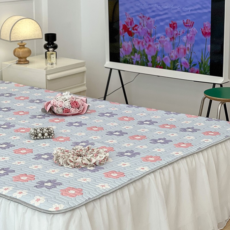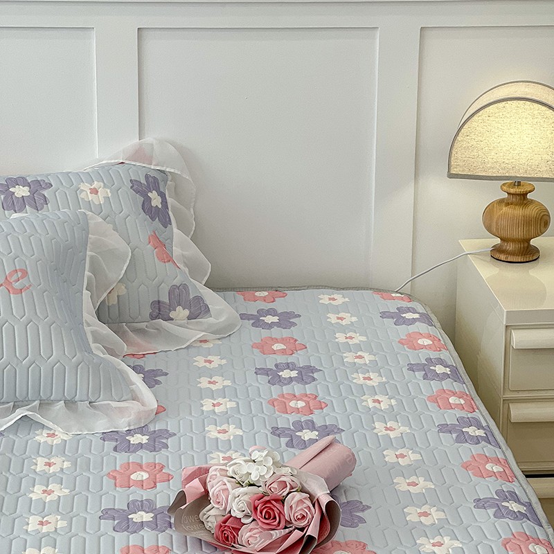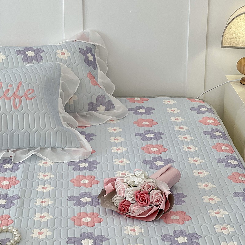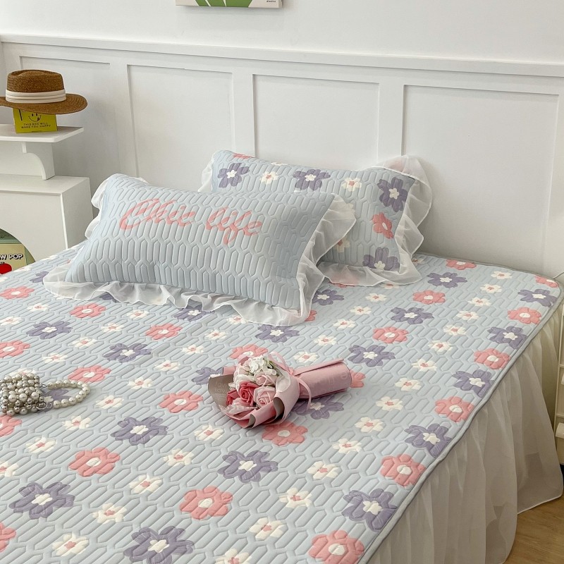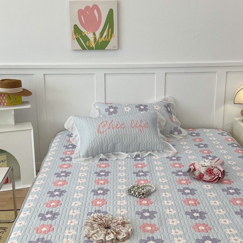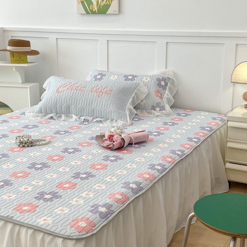 昔可 2022新款ins风小清新床裙款乳胶凉席三件套 床裙款-浪漫仲夏