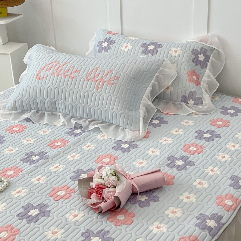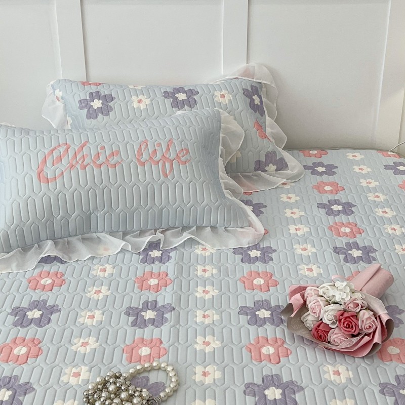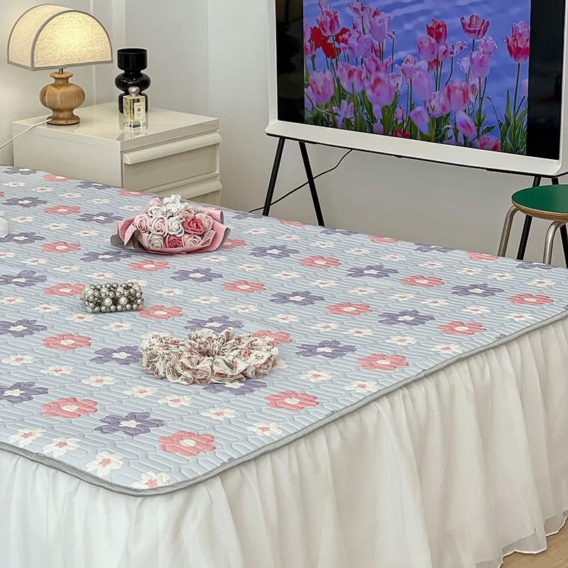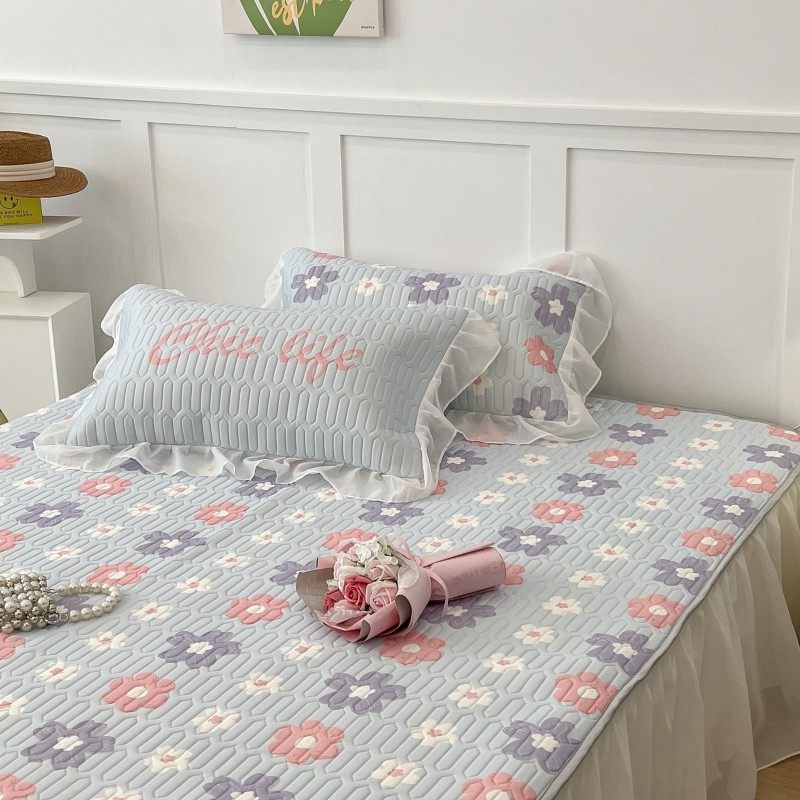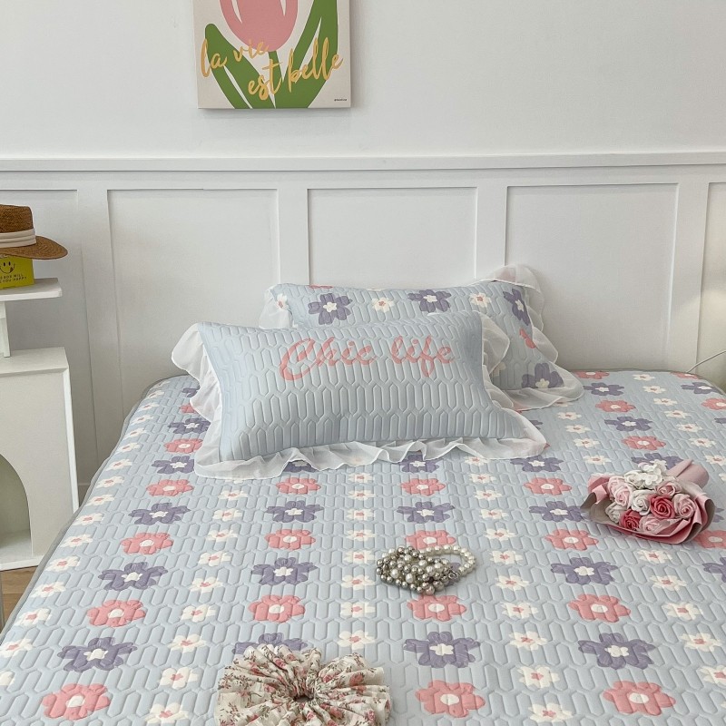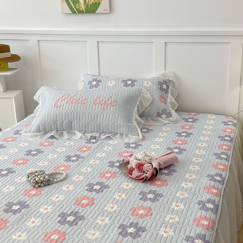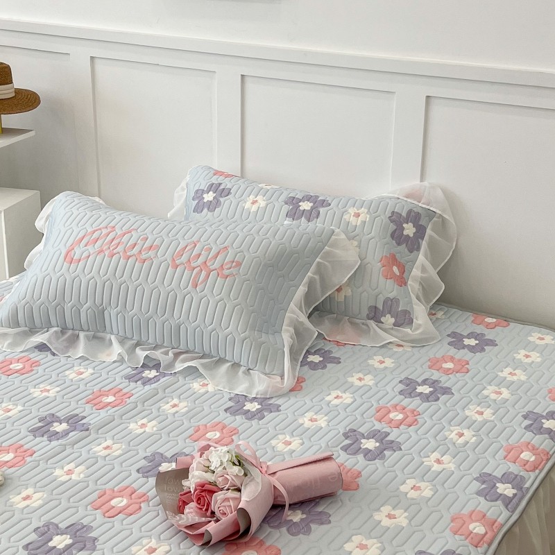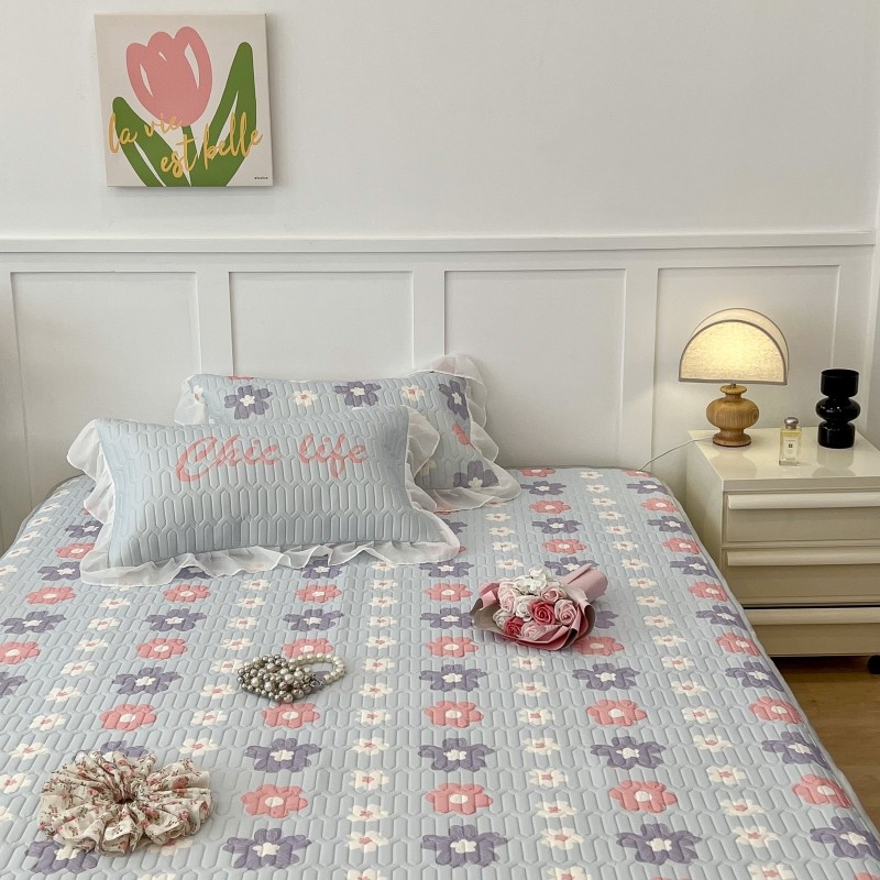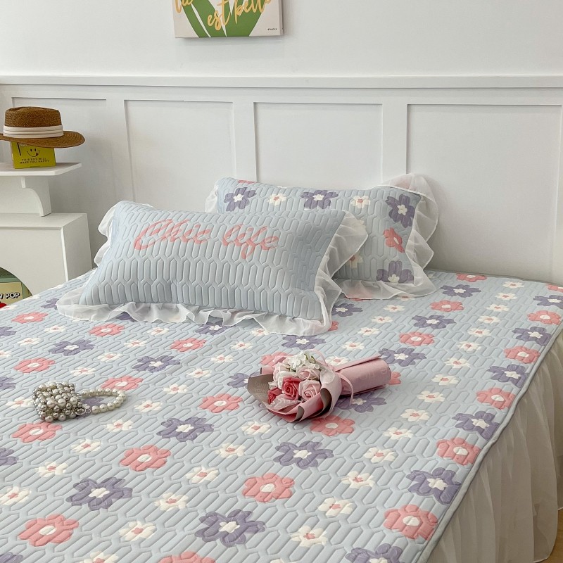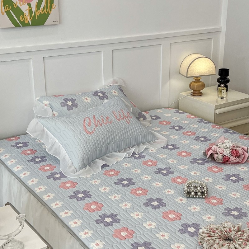昔可 2022新款ins风小清新床裙款乳胶凉席三件套 床裙款-浪漫仲夏