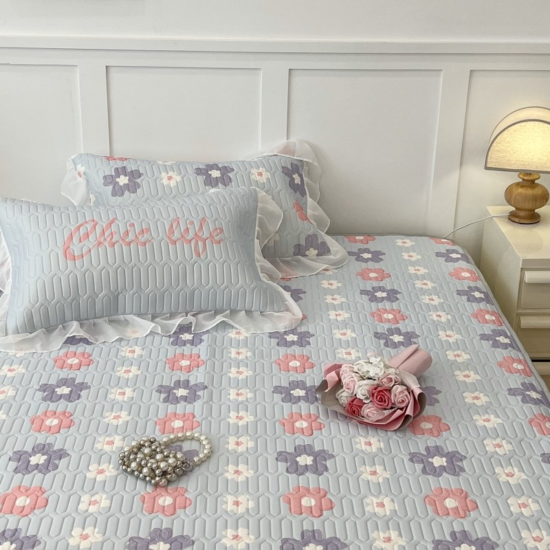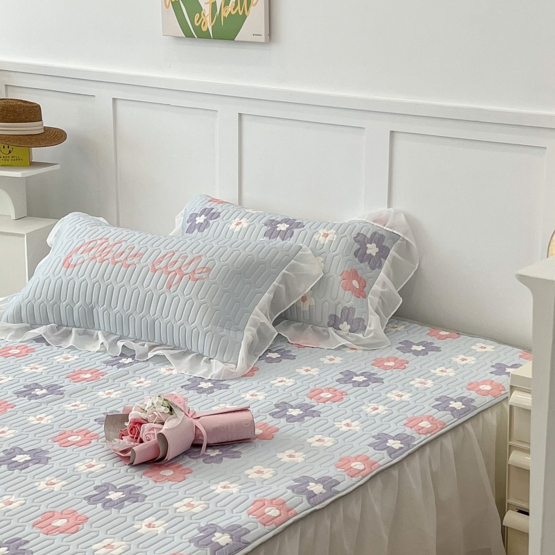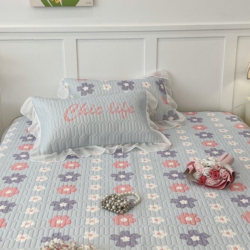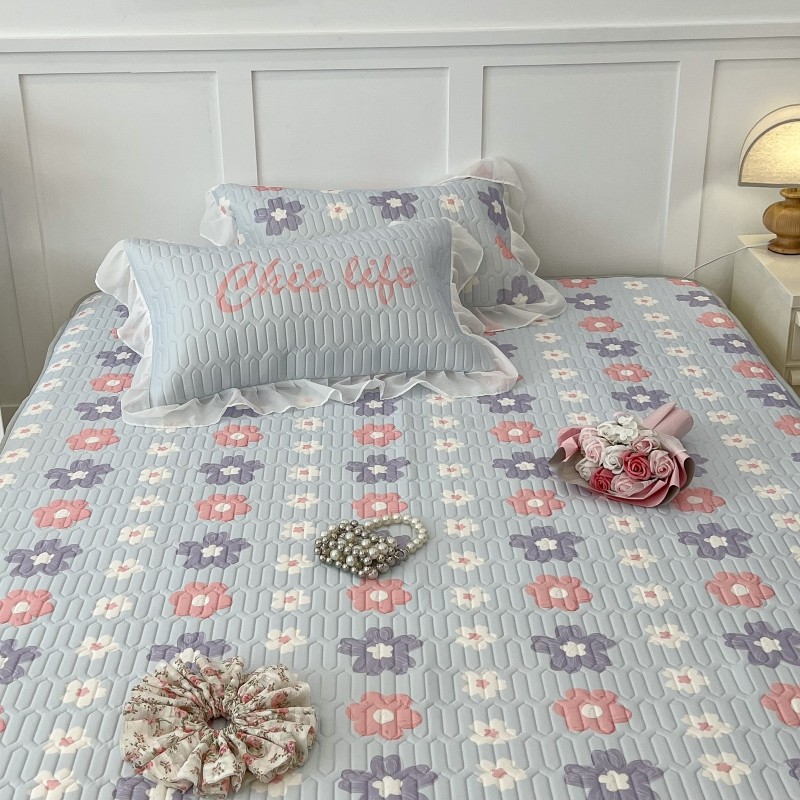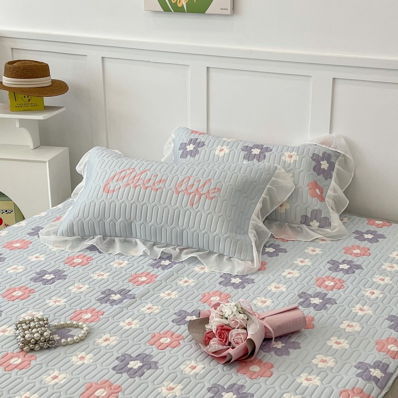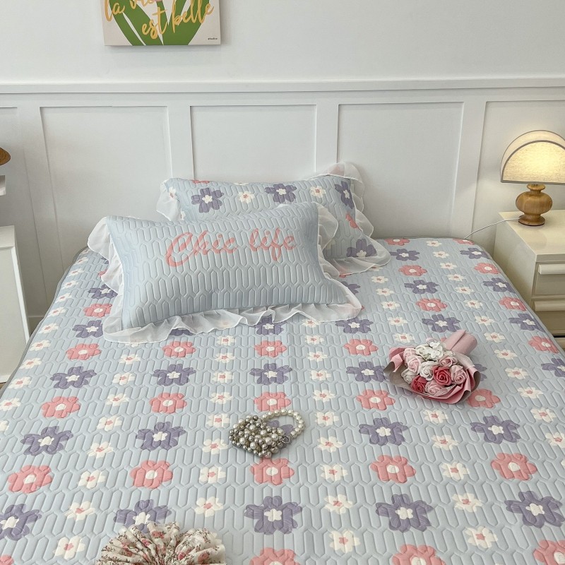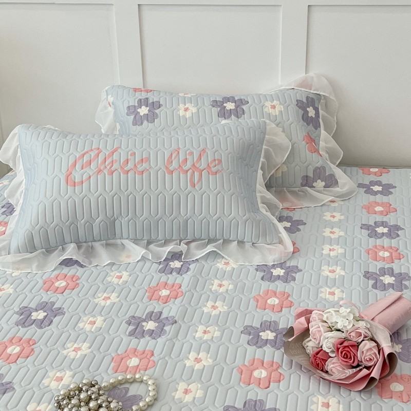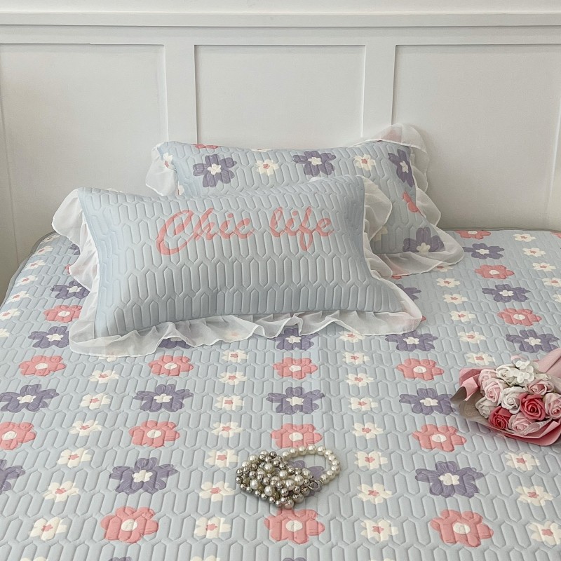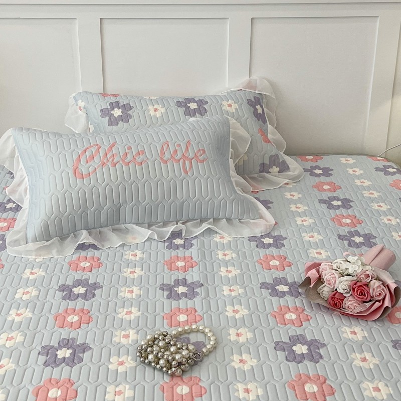 昔可 2022新款ins风小清新床裙款乳胶凉席三件套 床裙款-浪漫仲夏