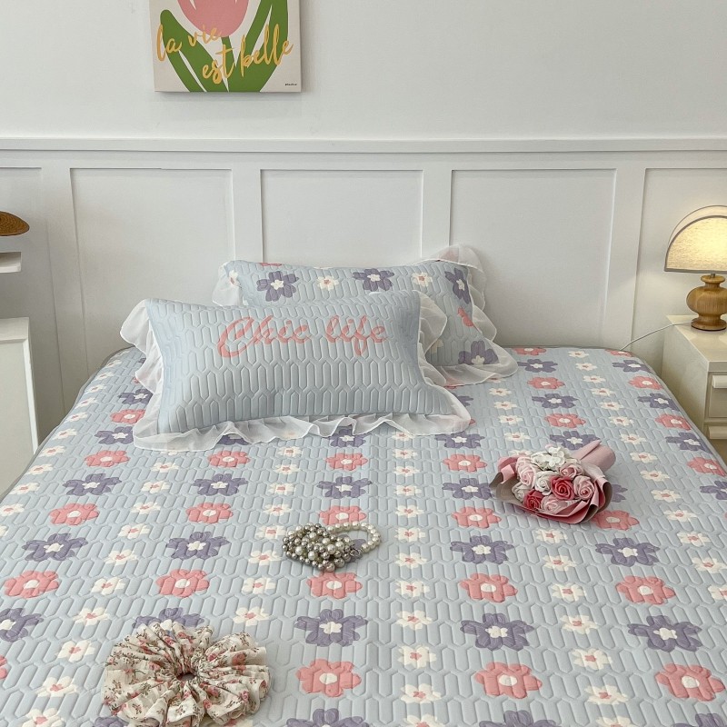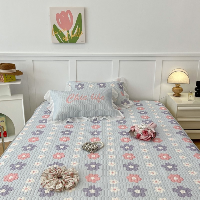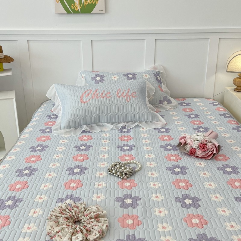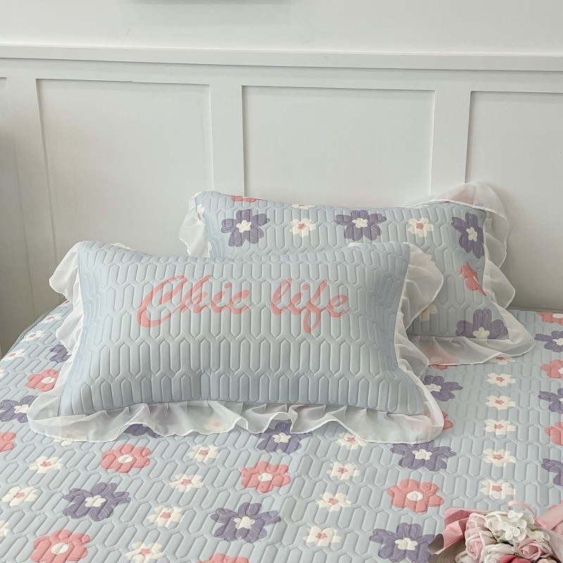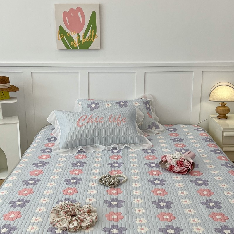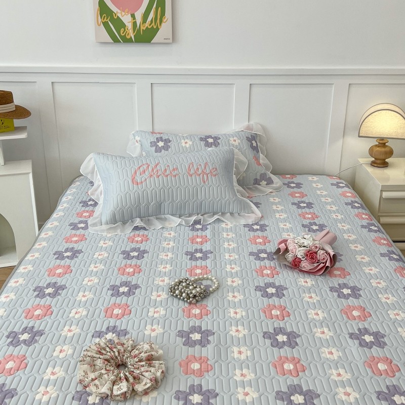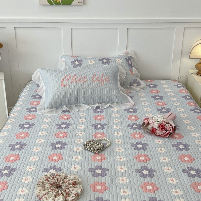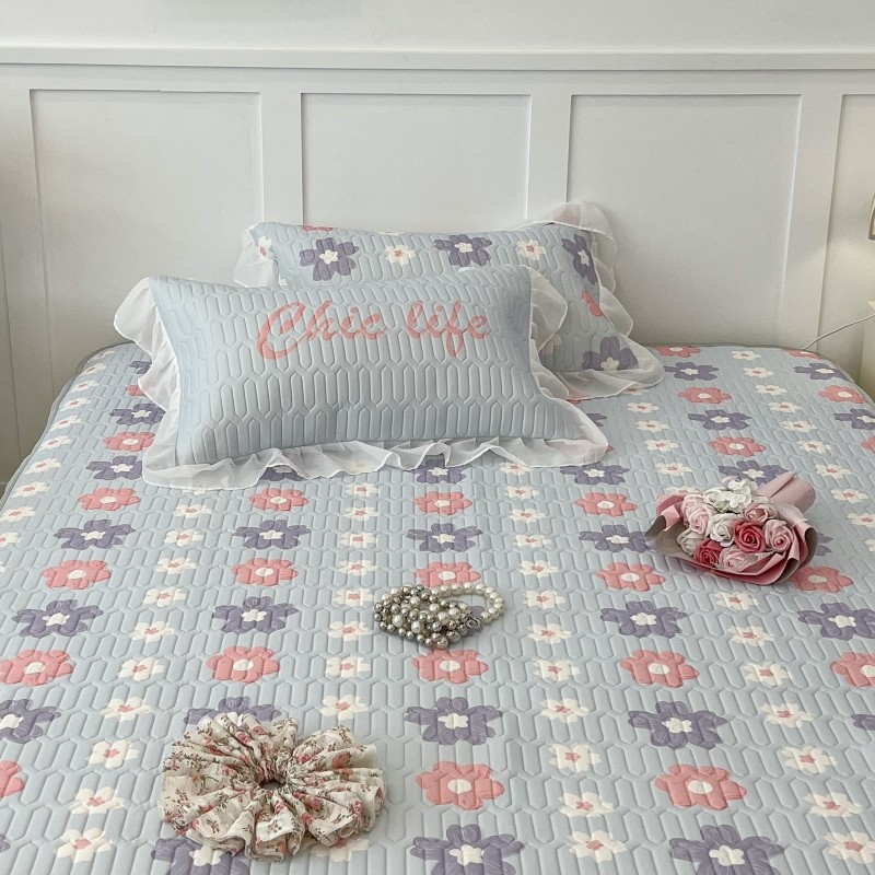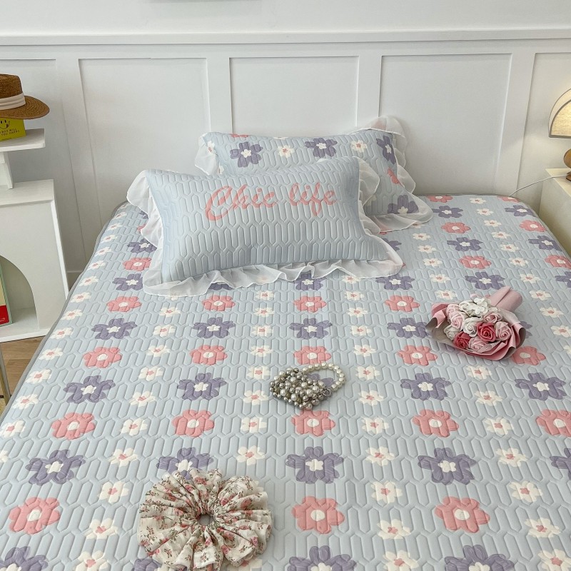 昔可 2022新款ins风小清新床裙款乳胶凉席三件套 床裙款-浪漫仲夏