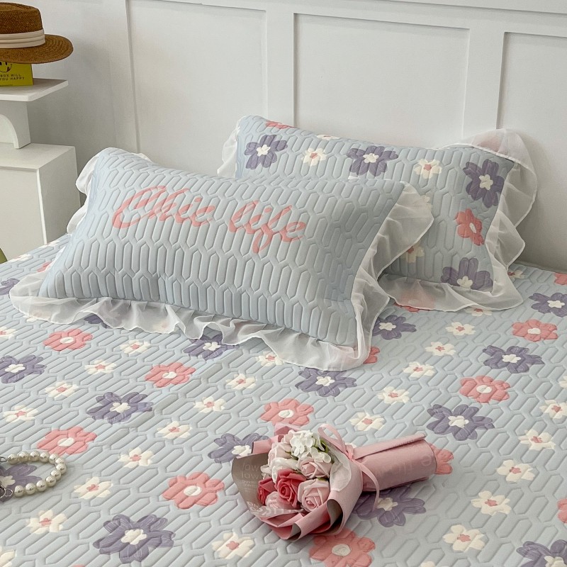 商品名称:昔可 2022新款ins风小清新床裙款乳胶凉席三件套 床裙款-浪漫仲夏