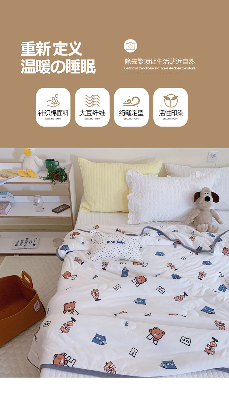 慕尚 2025新款针织棉印花夏凉被空调被 字母熊