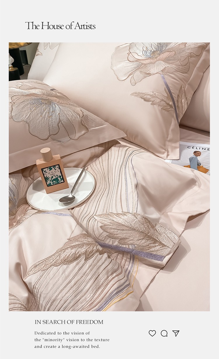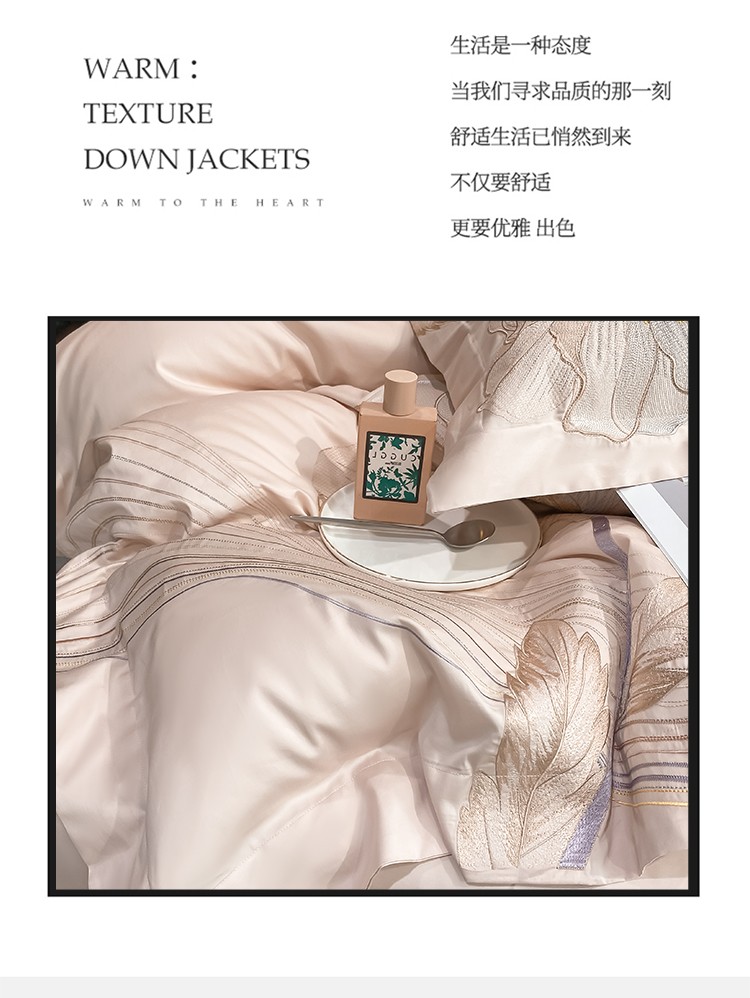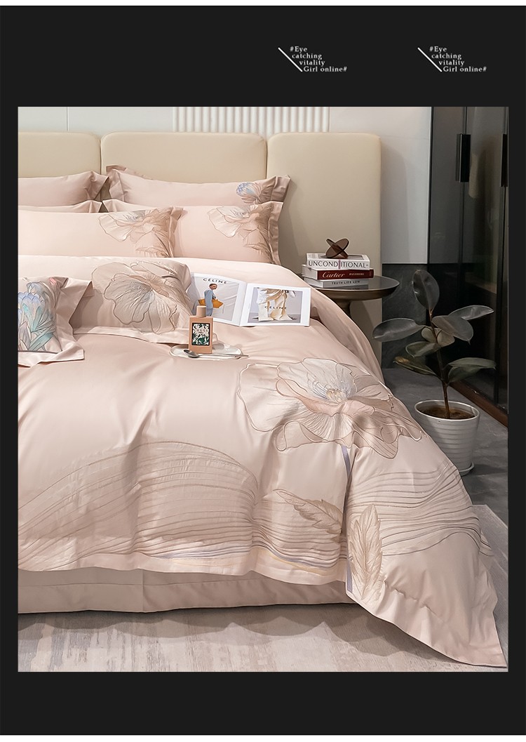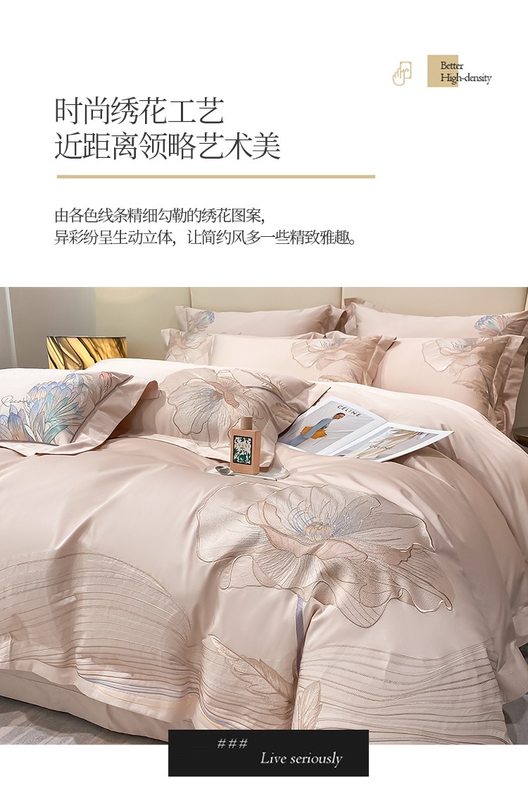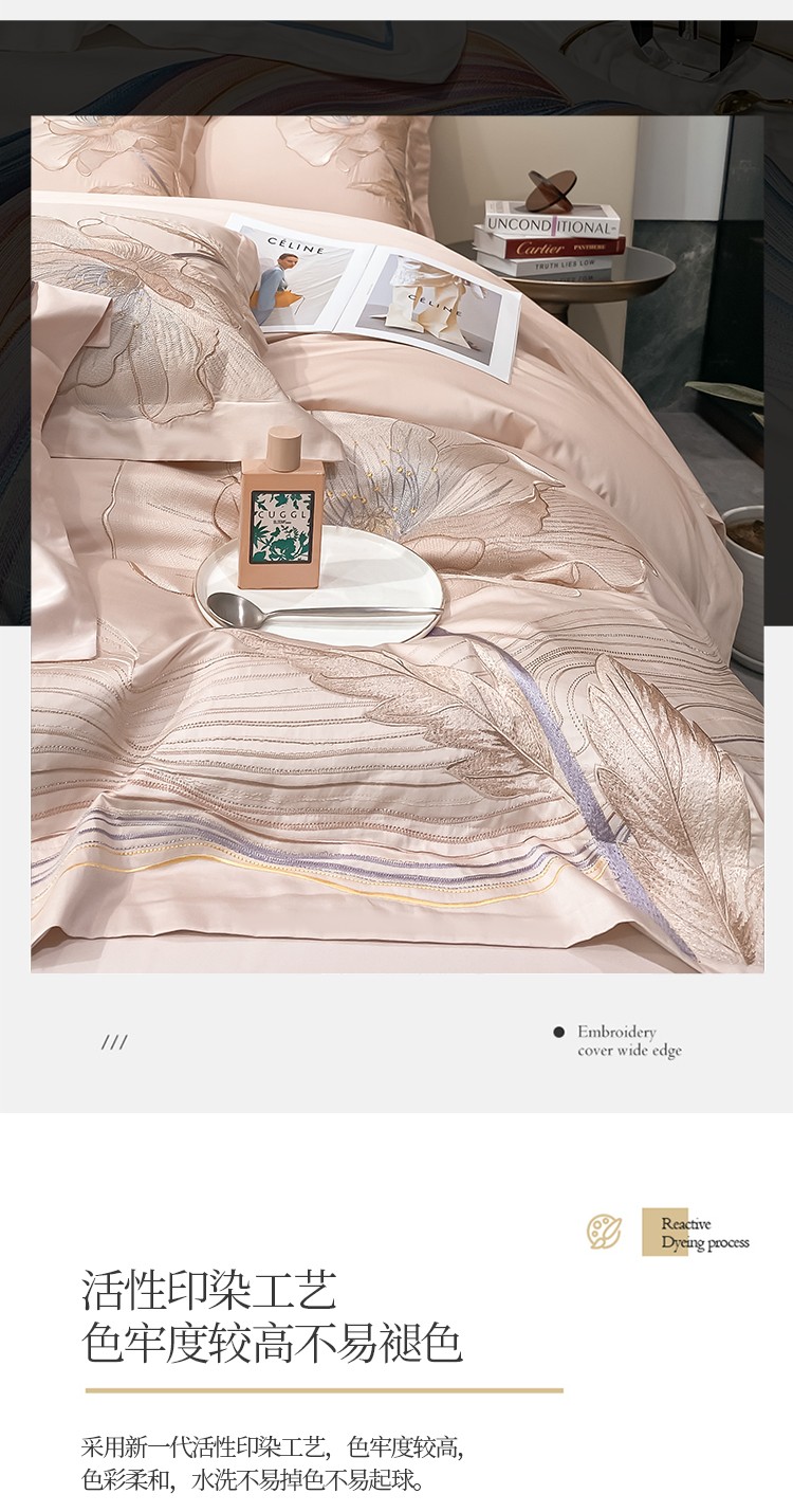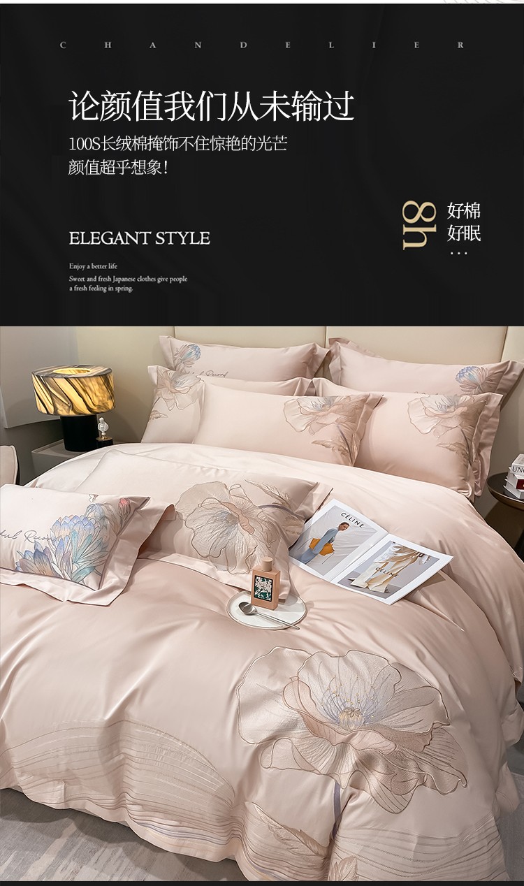 魅都新款100阿克苏长绒棉刺绣四件套-米兰樱花粉