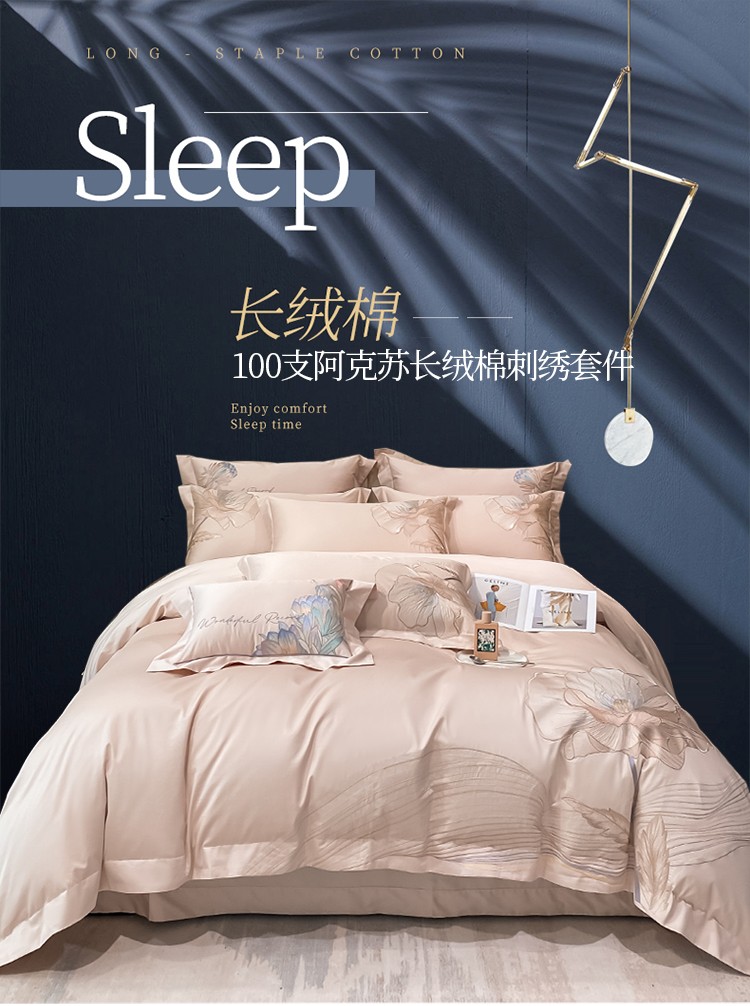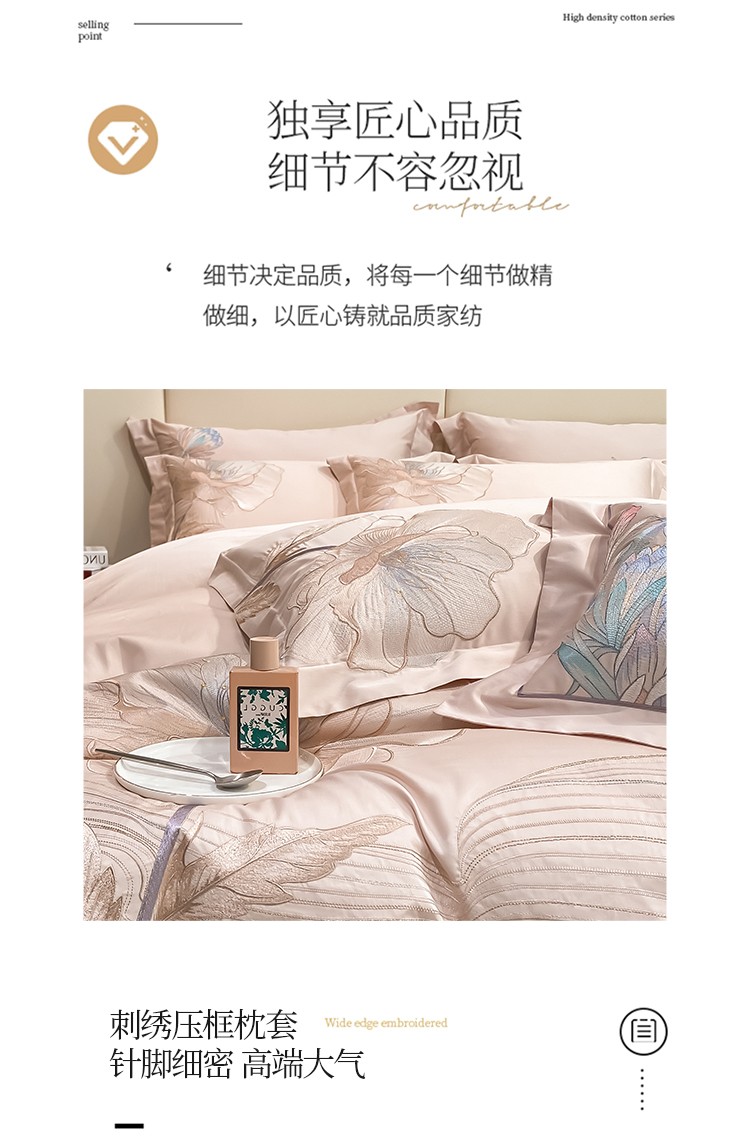 商品名称:魅都新款100阿克苏长绒棉刺绣四件套-米兰樱花粉