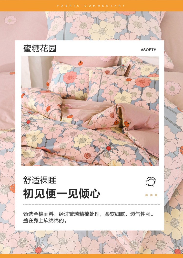 商品名称:星期三 2022年7月新款铂金全棉13372四件套(加老板微信有会员价) 蜜糖花园
