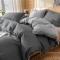 商品名称:秀色 2025新日系简约纯色双拼全棉可水洗四件套 深灰+浅灰