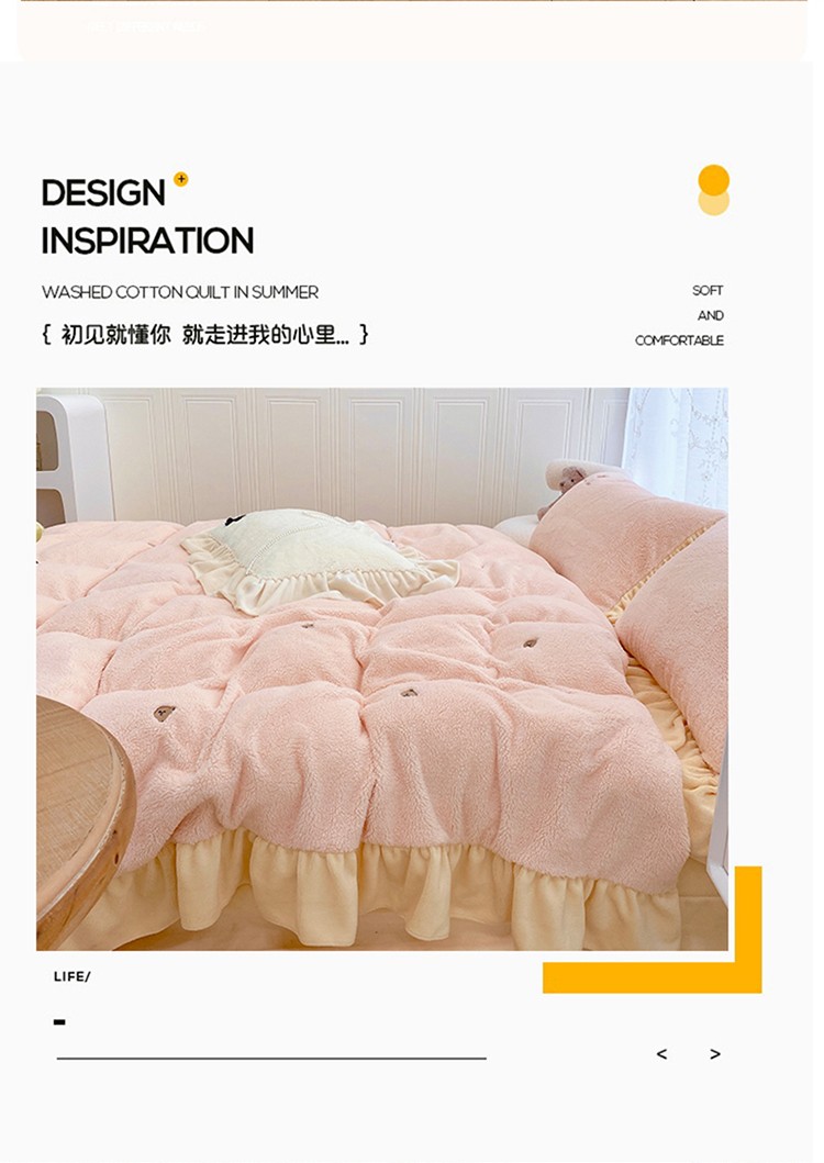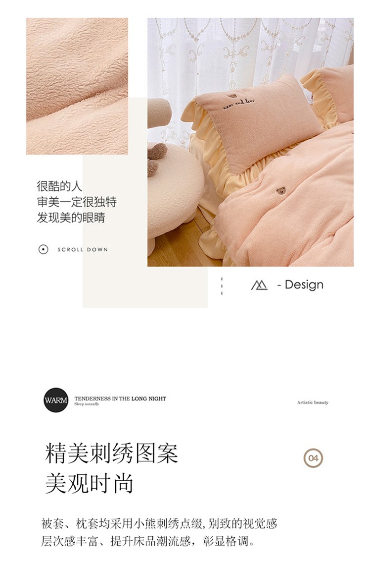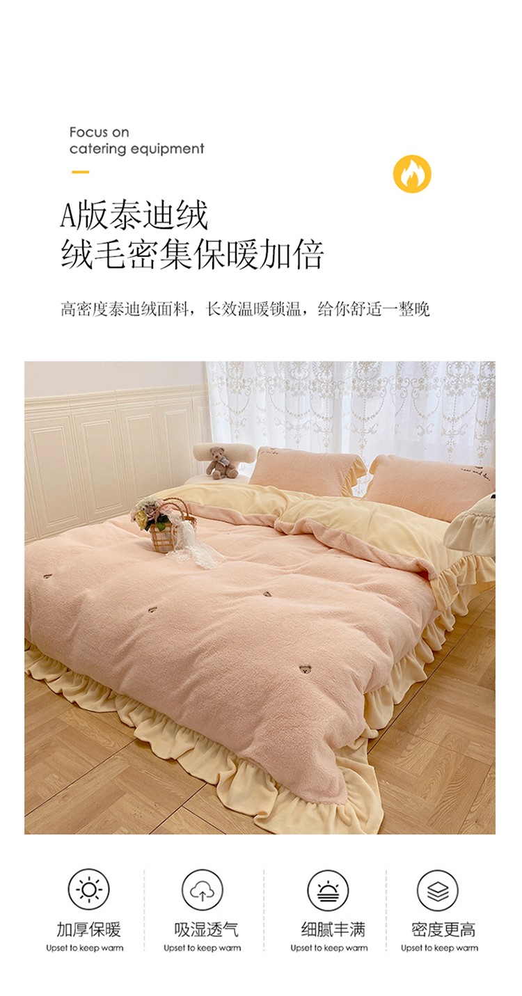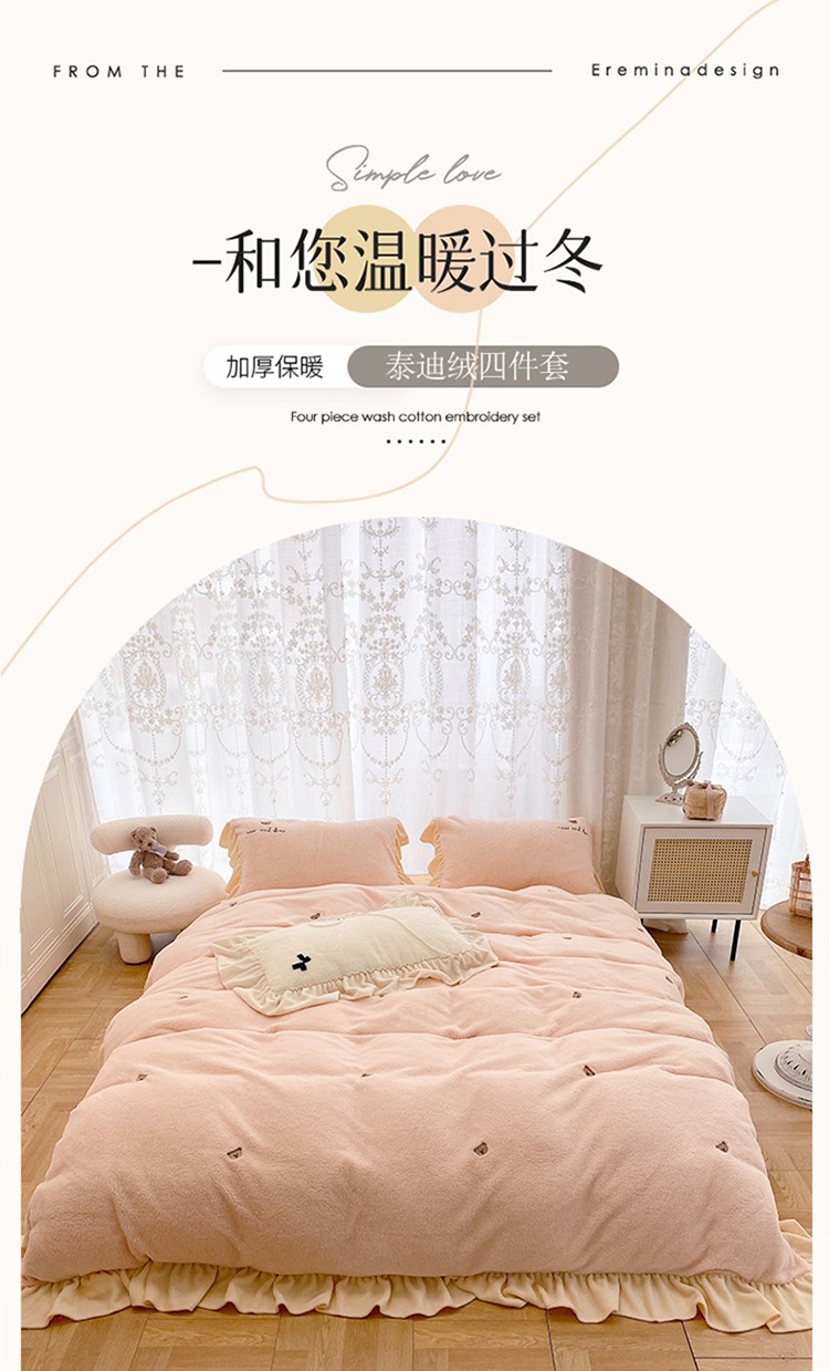 商品名称:玛奇朵 2022秋冬新款泰迪绒刺绣系列四件套 泰迪-粉色