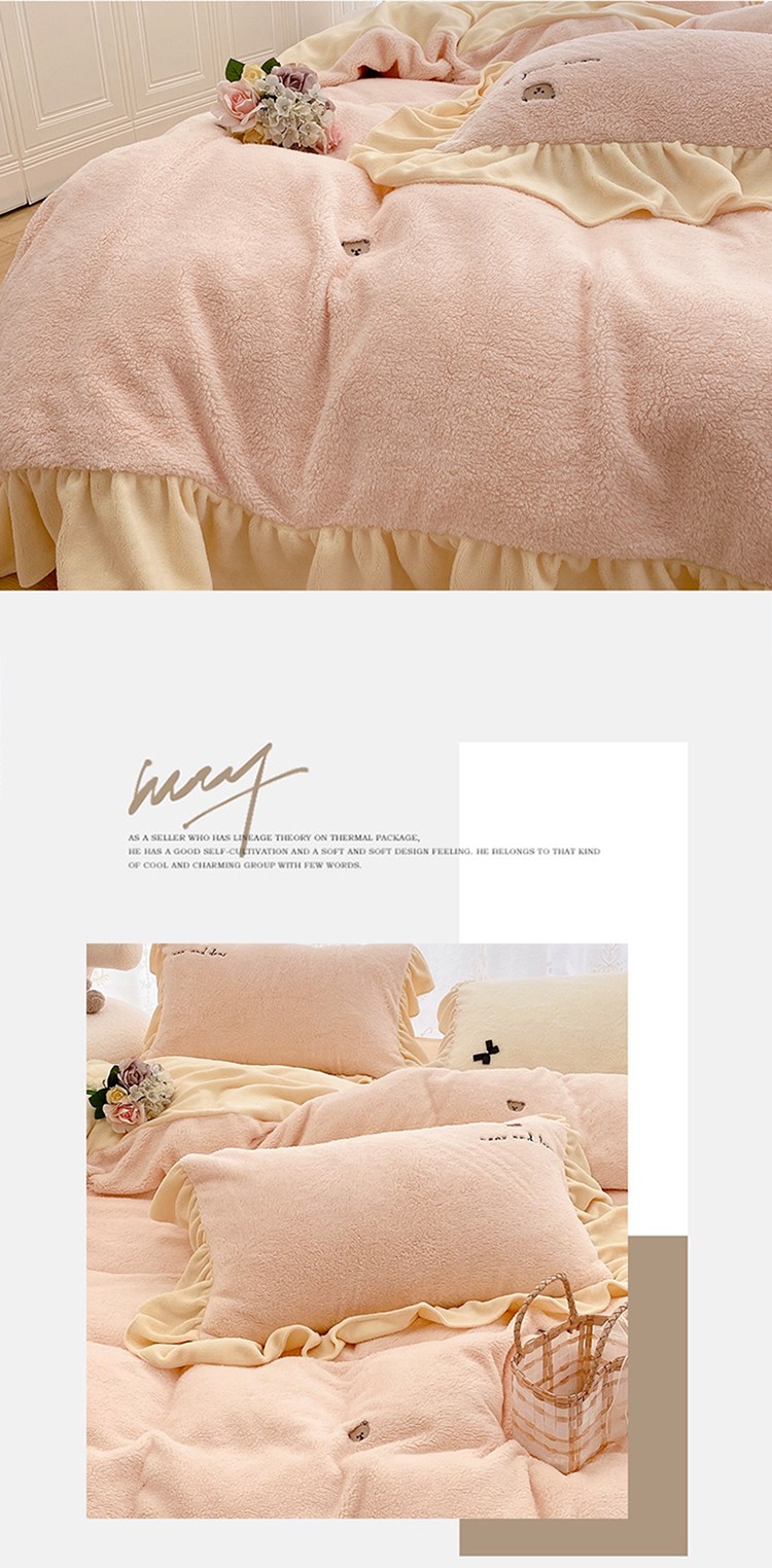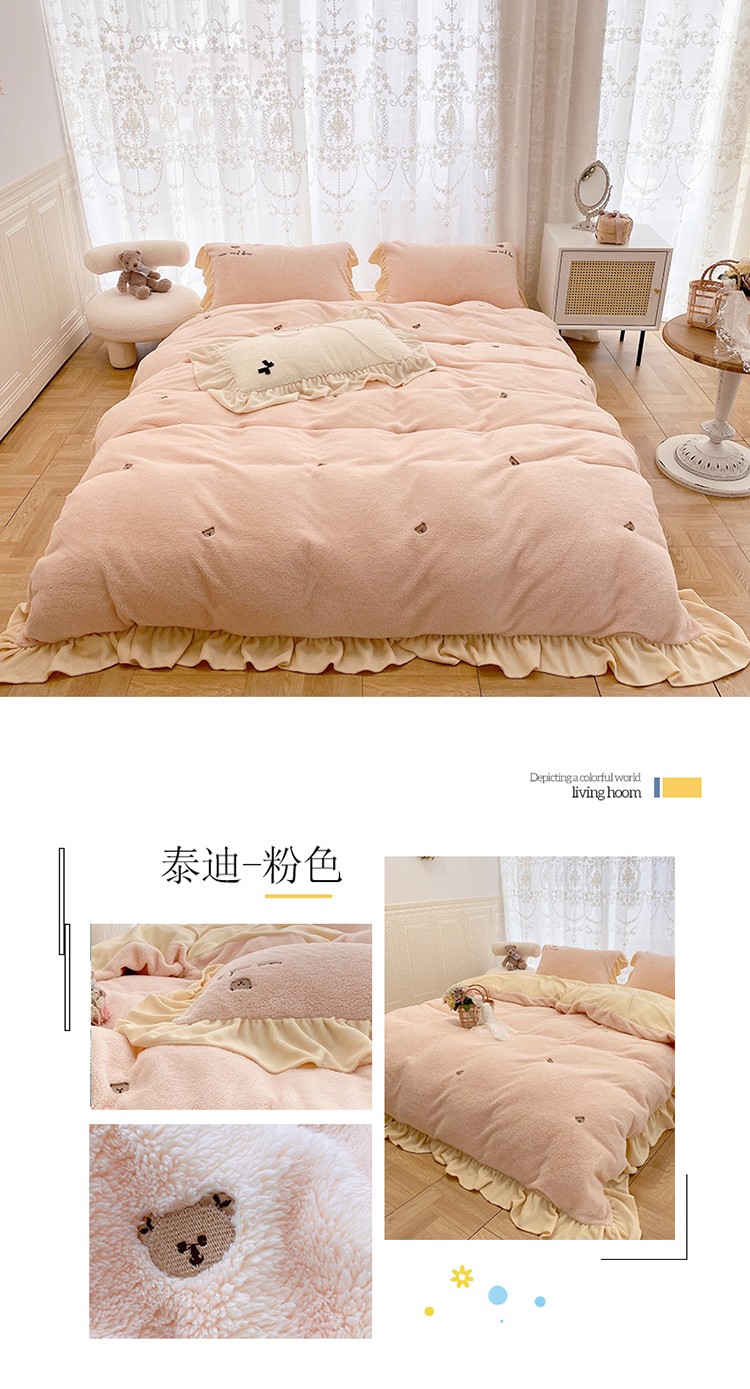 玛奇朵 2022秋冬新款泰迪绒刺绣系列四件套 泰迪-粉色
