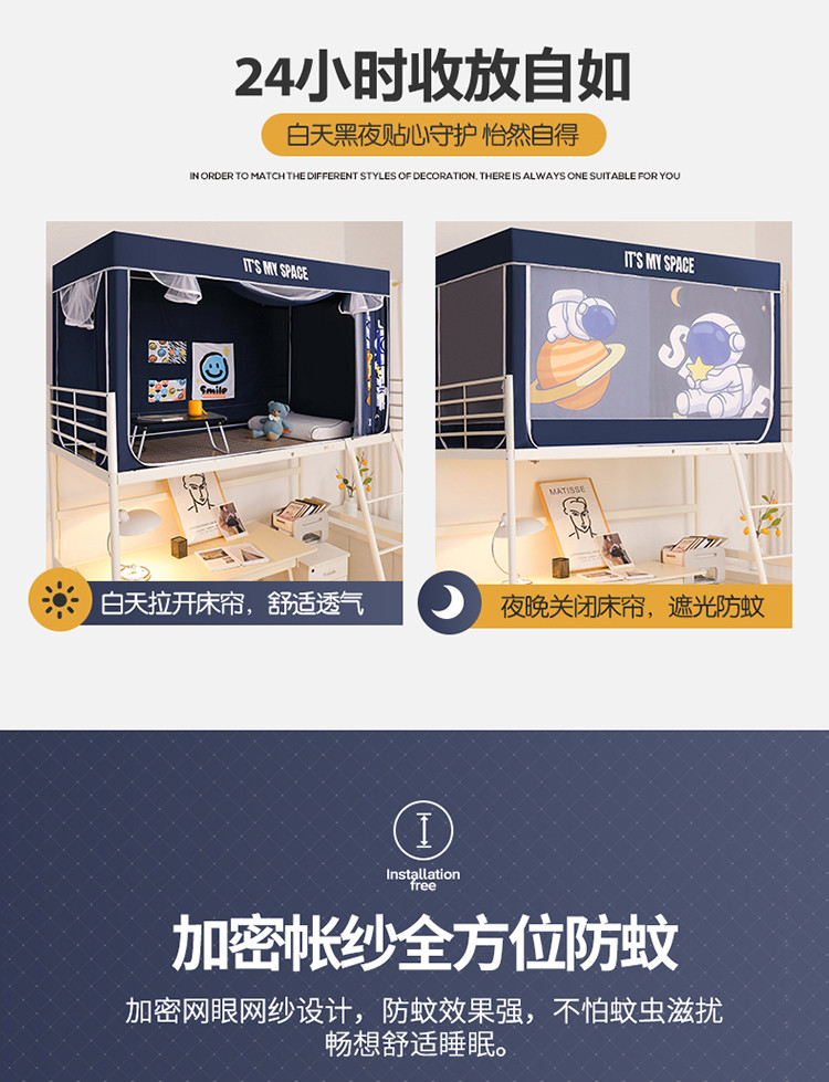 (总)新太阳2022新款新款学生宿舍免安装遮光蚊帐天空系列,梦幻星系,外太空,星球大战,宇航员-蓝,宇航员-黑