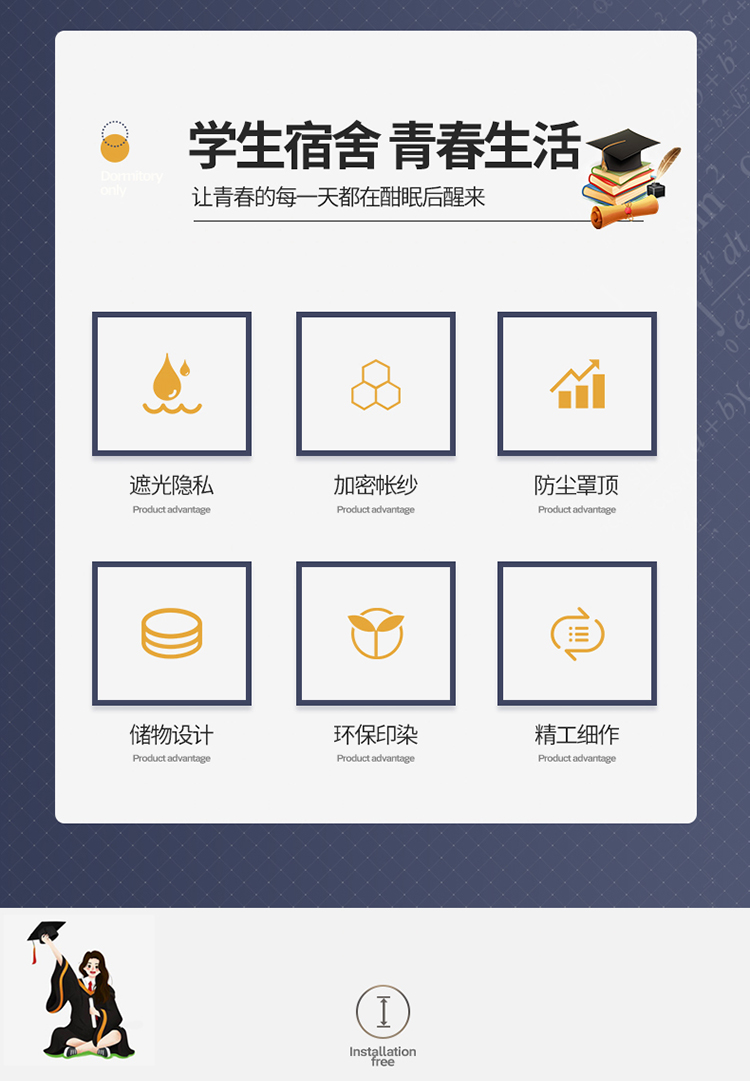 (总)新太阳 2022新款学生宿舍遮光床帘蚊帐