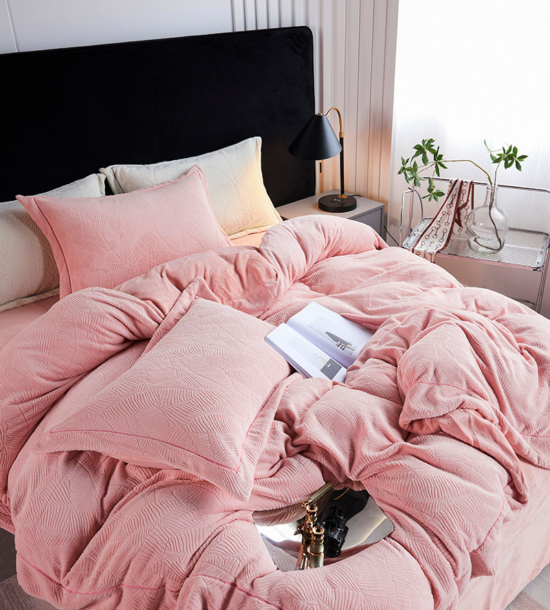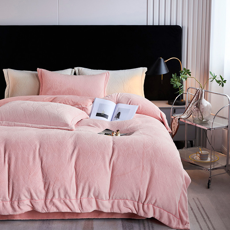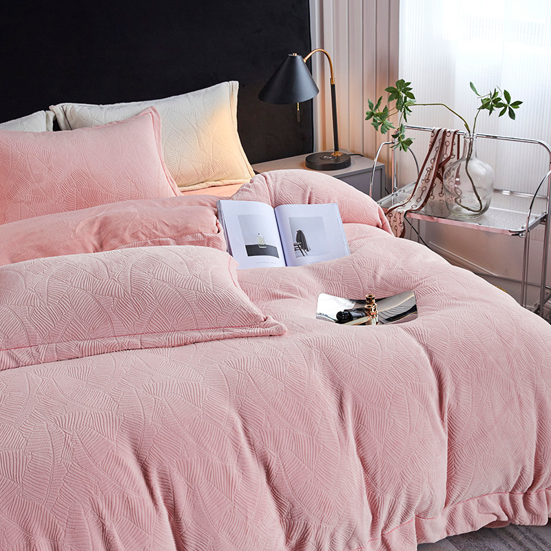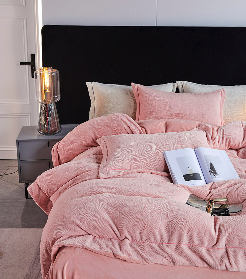 凡客家居 2022新款牛奶绒雕花系列四件套 维娜-雷诺粉