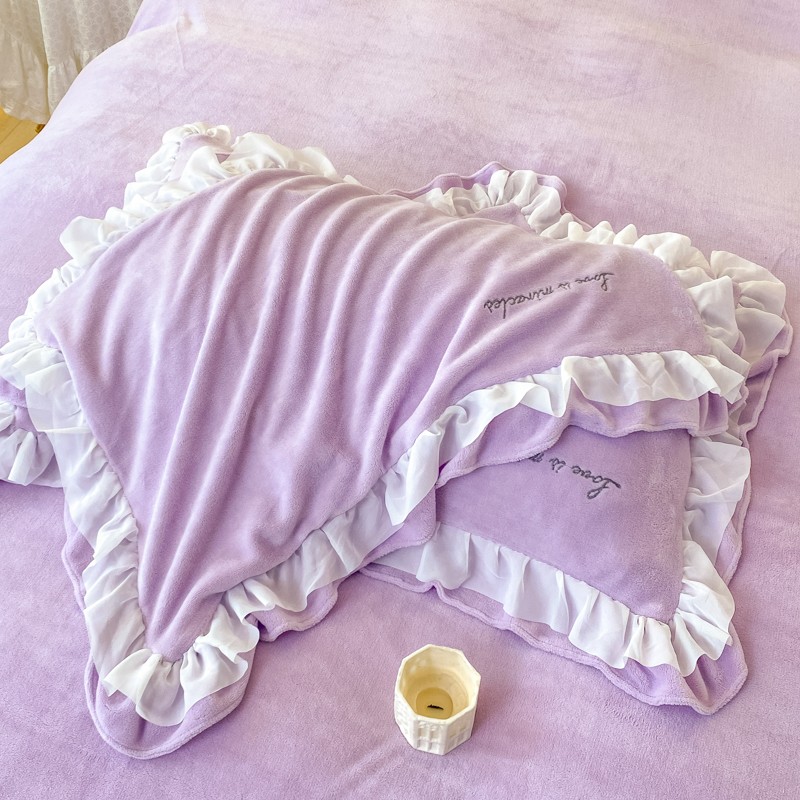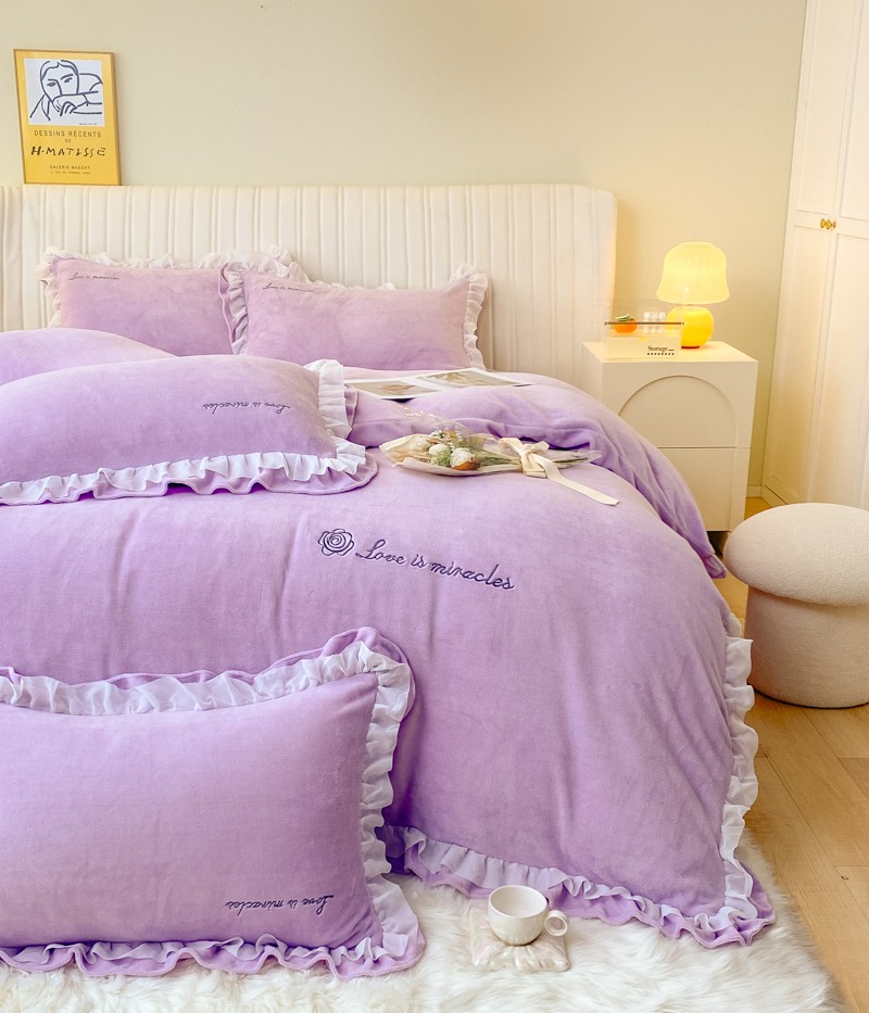 商品名称:金丝鸟 2022新款200克韩式公主风花边款牛奶绒四件套 梦幻紫