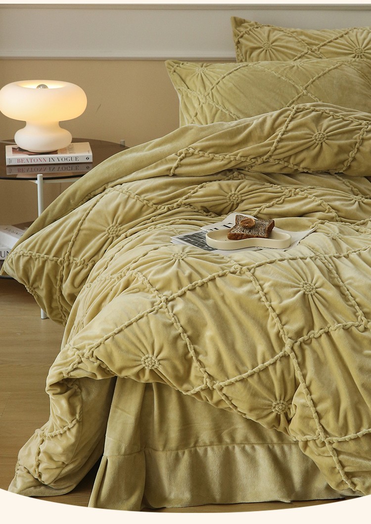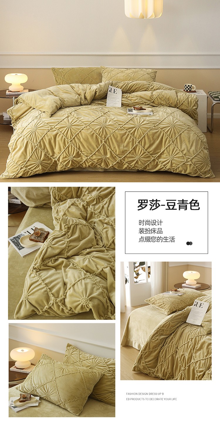 商品名称:玛奇朵 2022新款德芙绒立体揪花四件套--罗莎系列 罗莎-豆青色