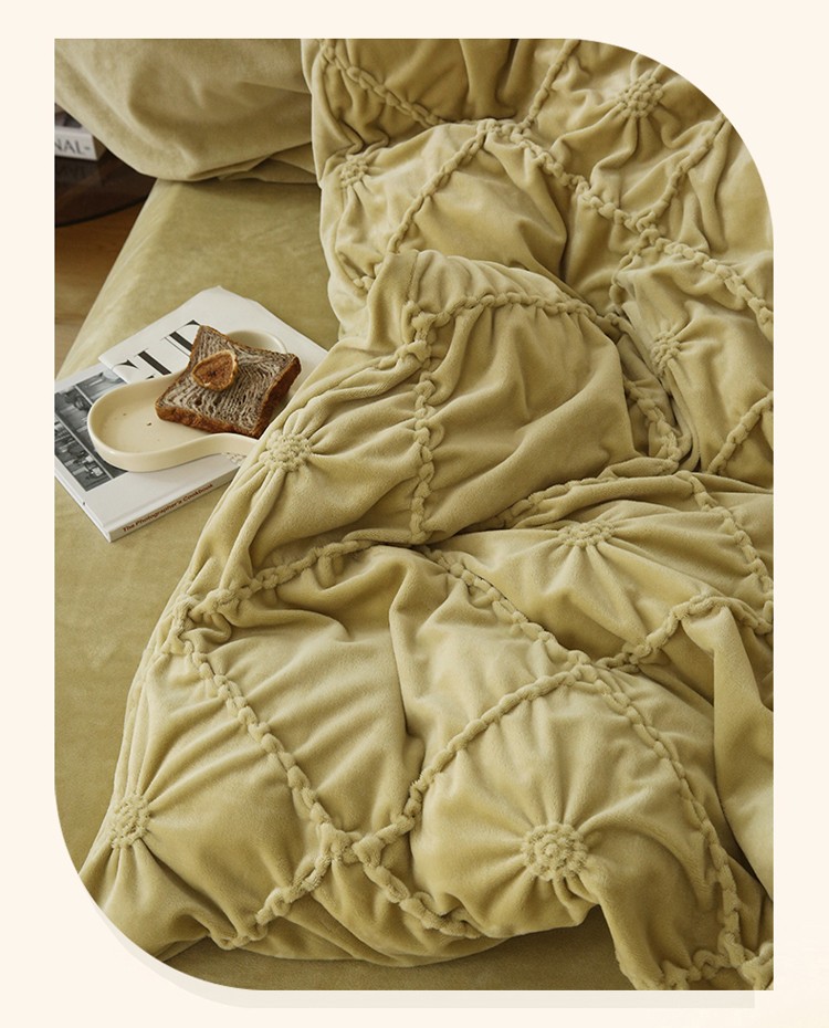 玛奇朵 2022新款德芙绒立体揪花四件套--罗莎系列 罗莎-豆青色