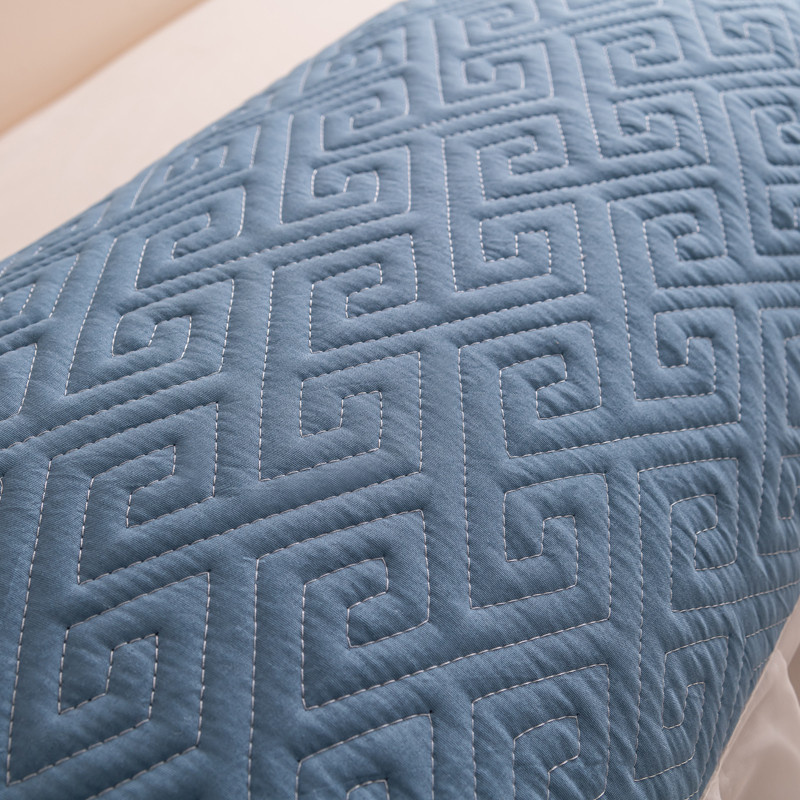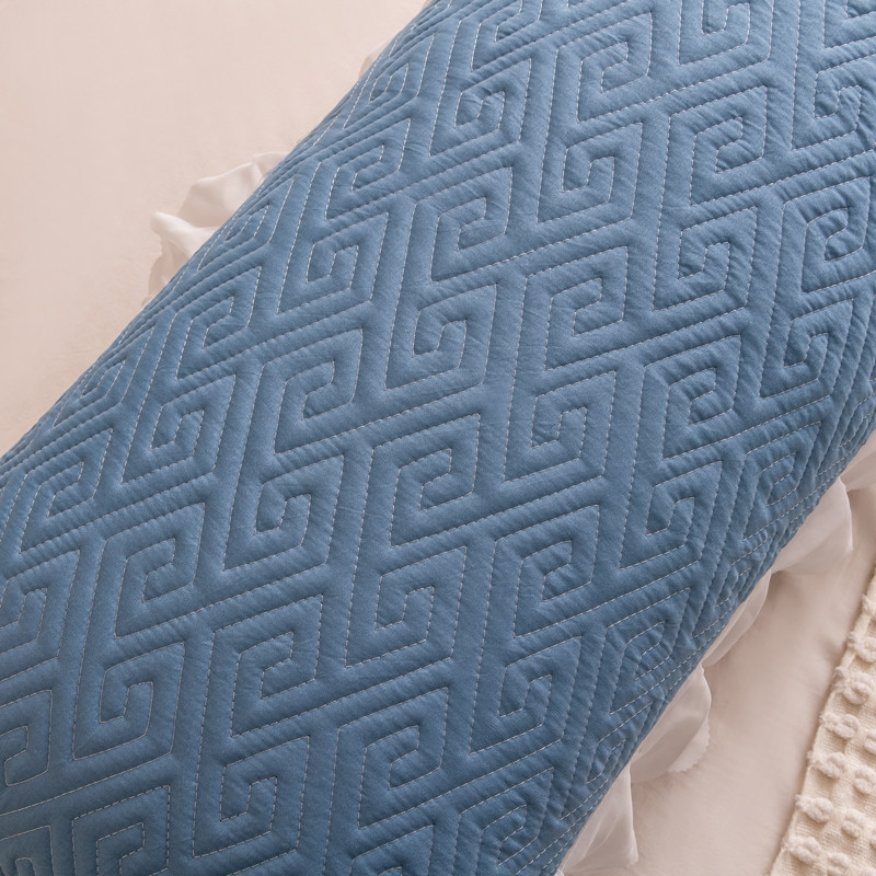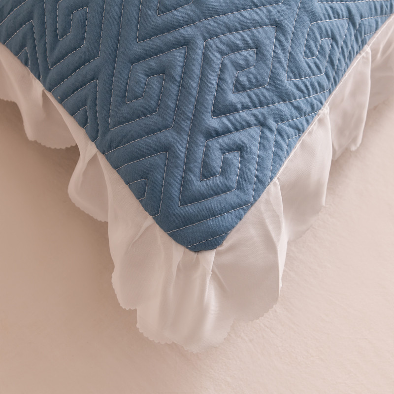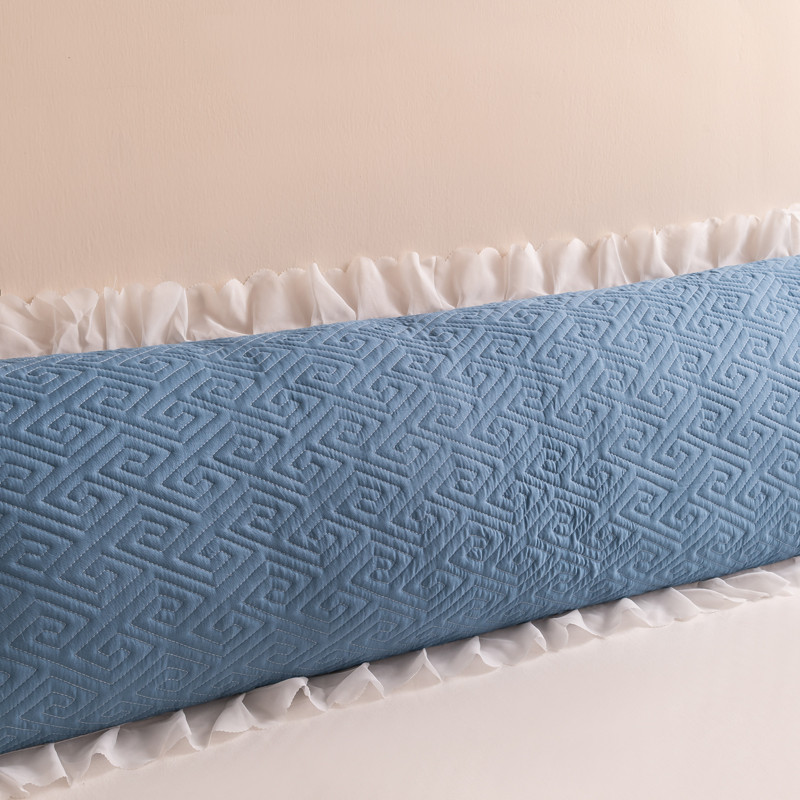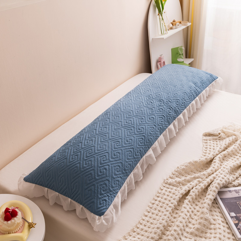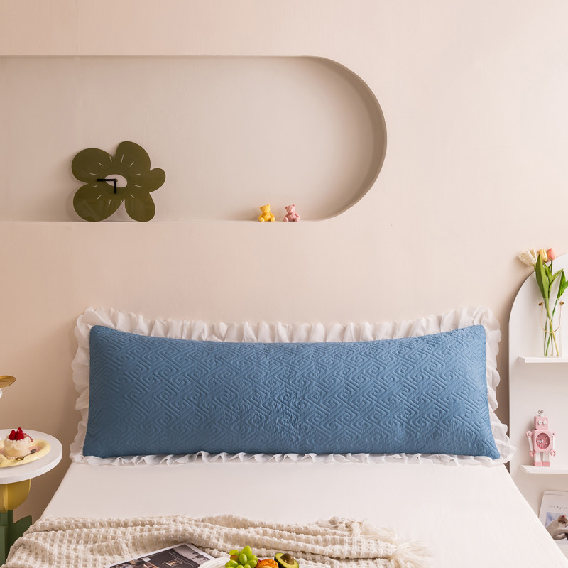 新款磨毛夹棉花边双人长枕套 浅蓝