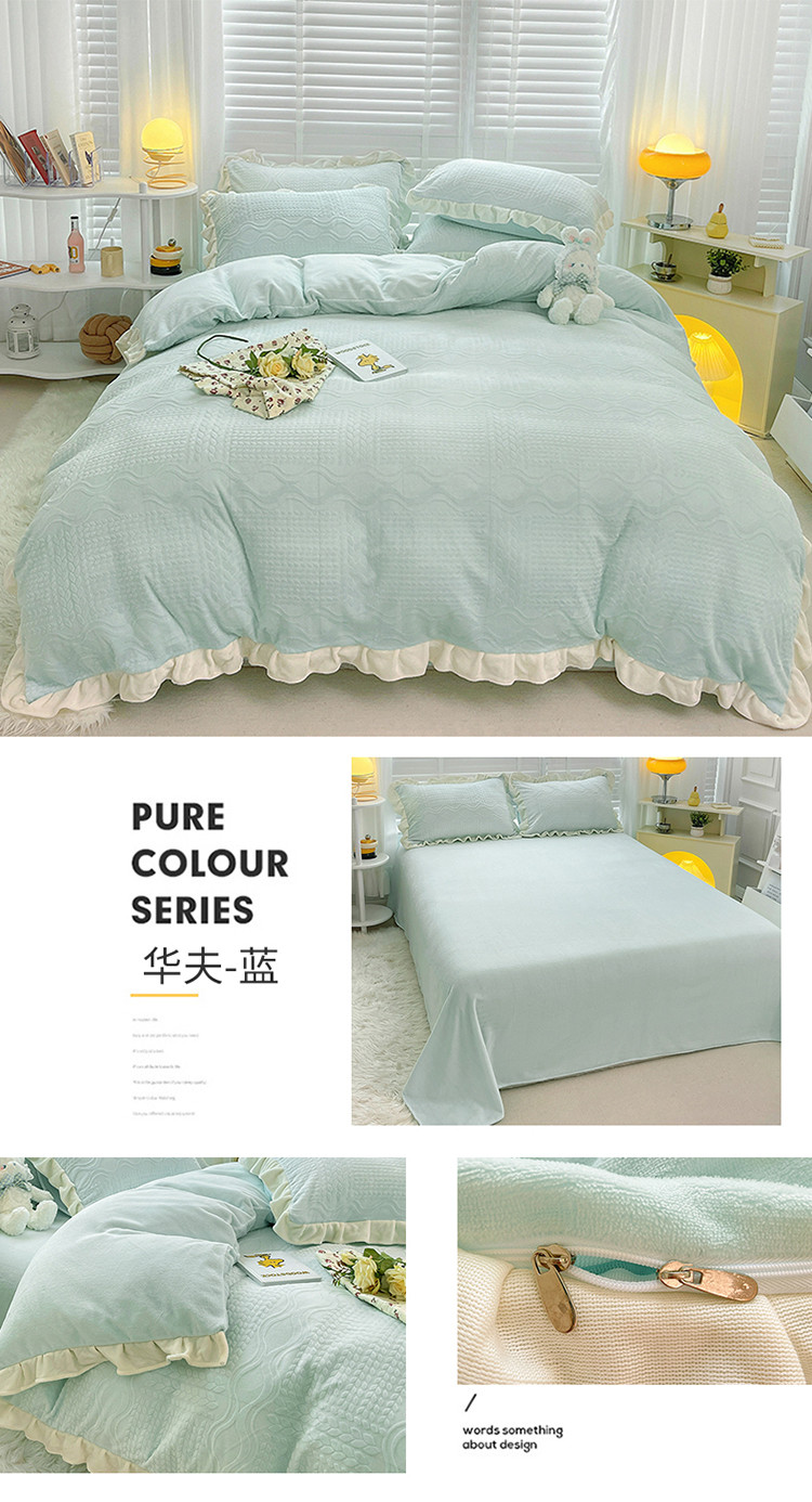 雅萱家纺2022新款雕花牛奶绒花边四件套--华夫系列华夫-蓝
