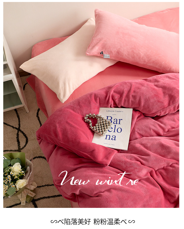 (总)花沐 2023新款博主风粉色系混搭牛奶绒四件套,冬日梅子,贩卖温柔,公主城堡,莓莓情书,一屋蜜桃香