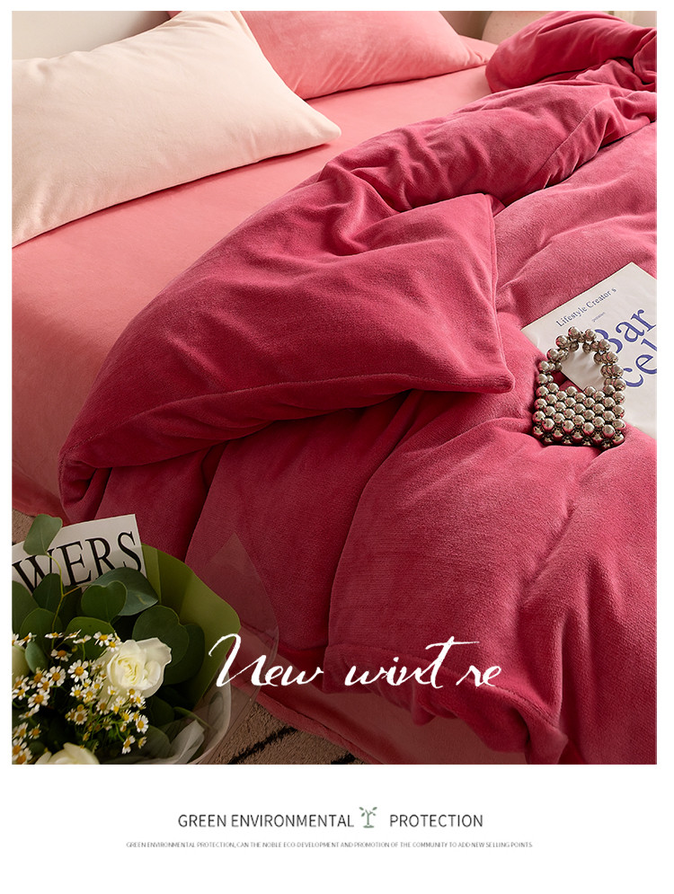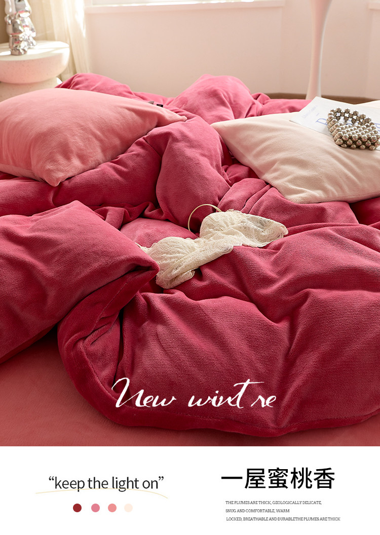 商品名称:花沐 2023新款博主风粉色系混搭牛奶绒四件套 一屋蜜桃香