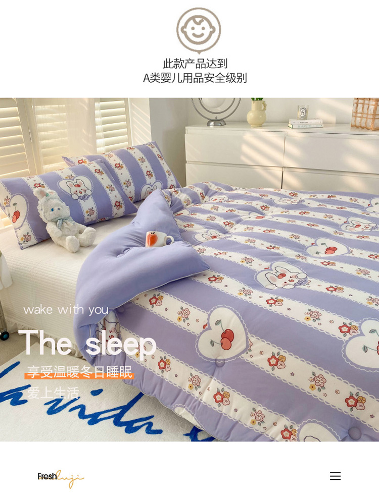 当前位置: 91家纺网 > 商品网购 > 被子 > 冬被 > 寐居 2022新款A类针织棉超柔保暖印花冬被 花田兔兔